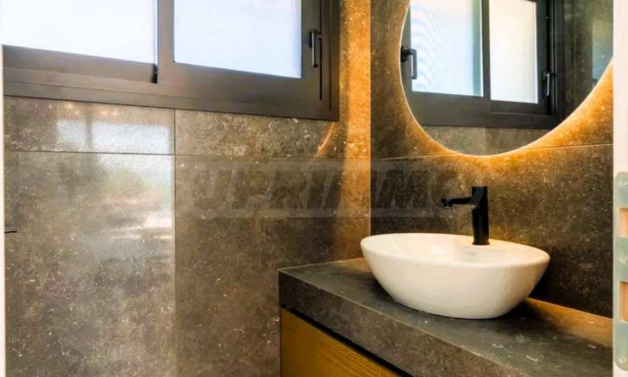 Разпределение: Проектирана с мисъл за комфорт - просторна дневна с кухненски бокс и трапезария, и 4 самостоятелни спални с 4 бани (всяка със собствена баня), което я прави идеална за голямо семейство или отдаване под наем.