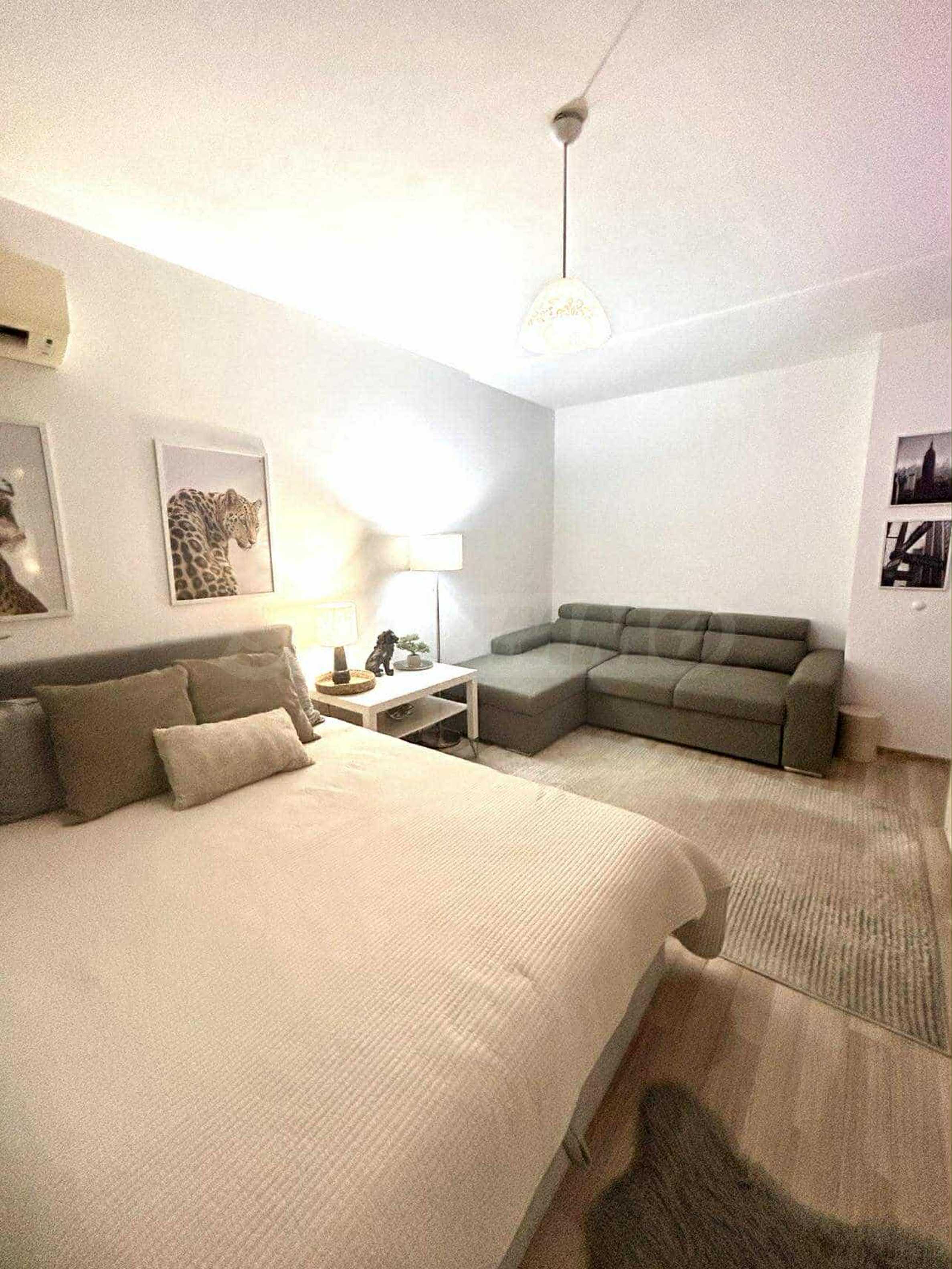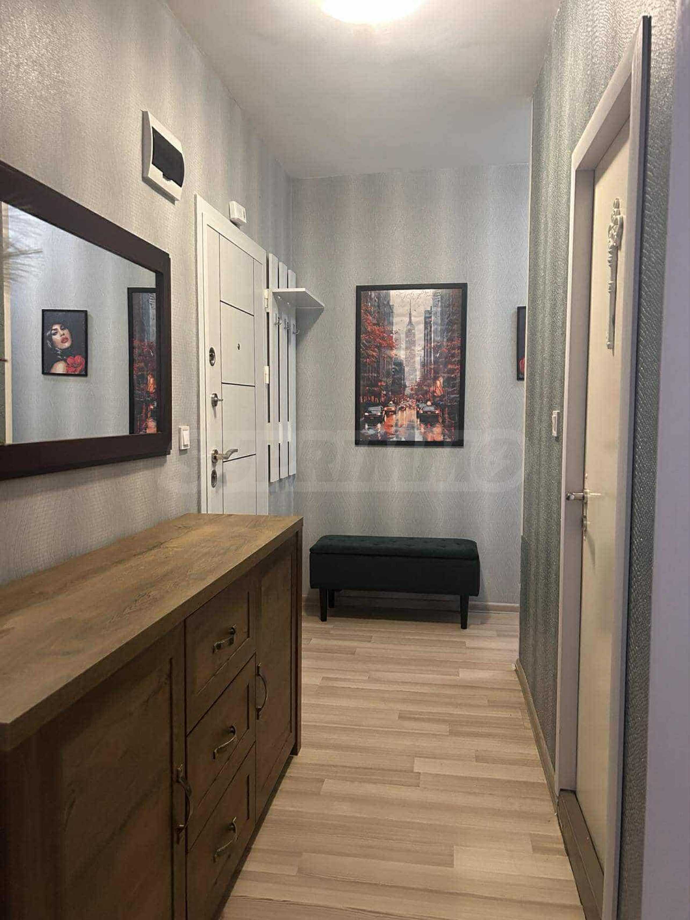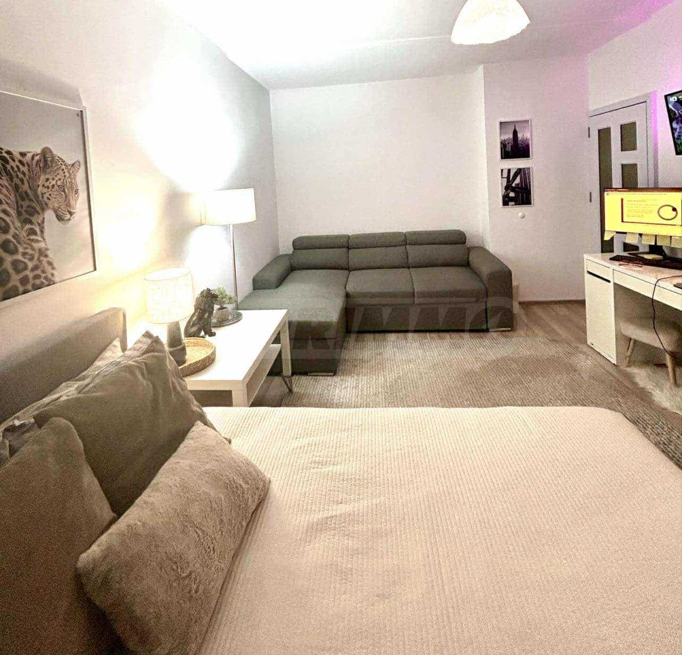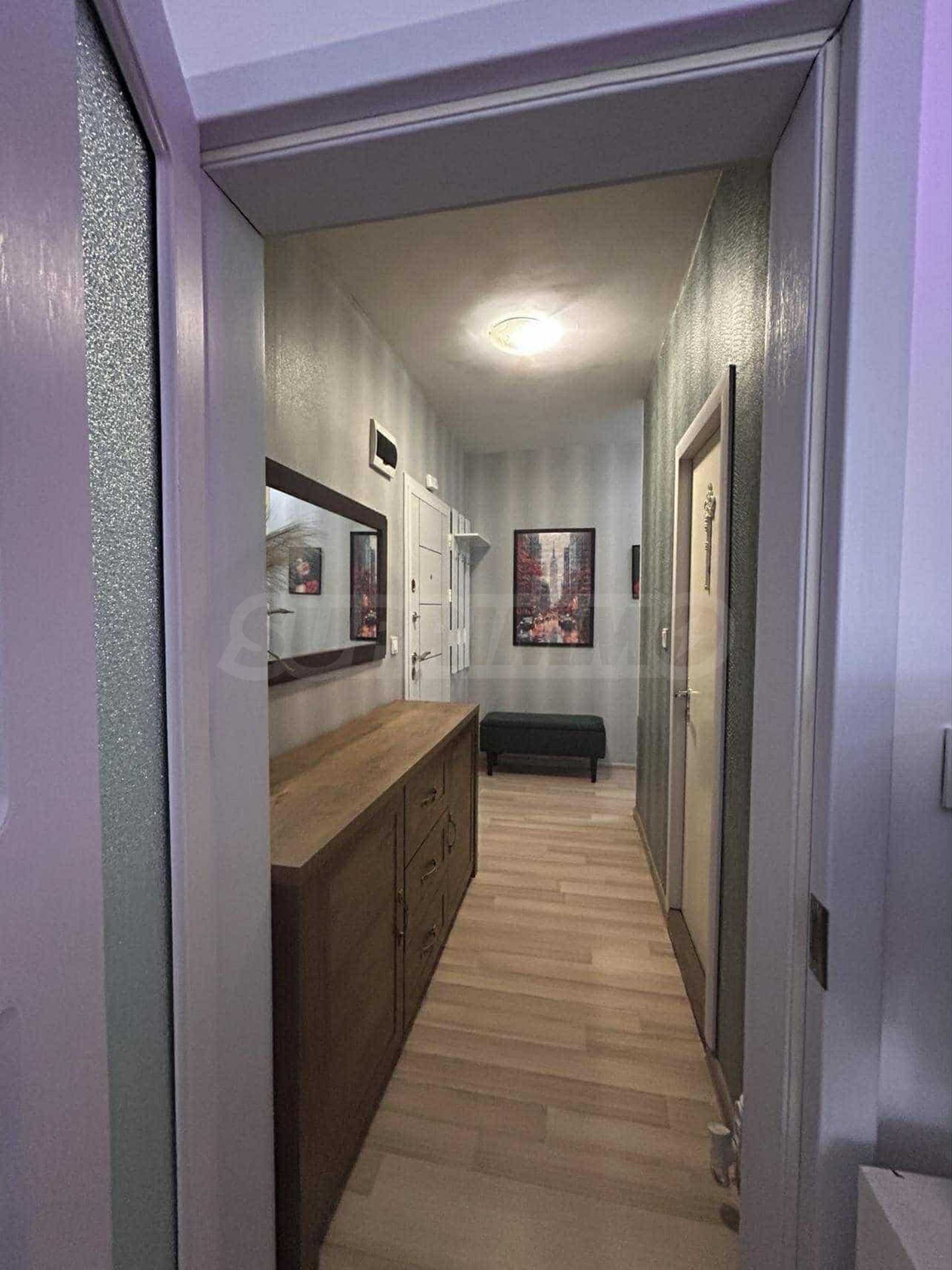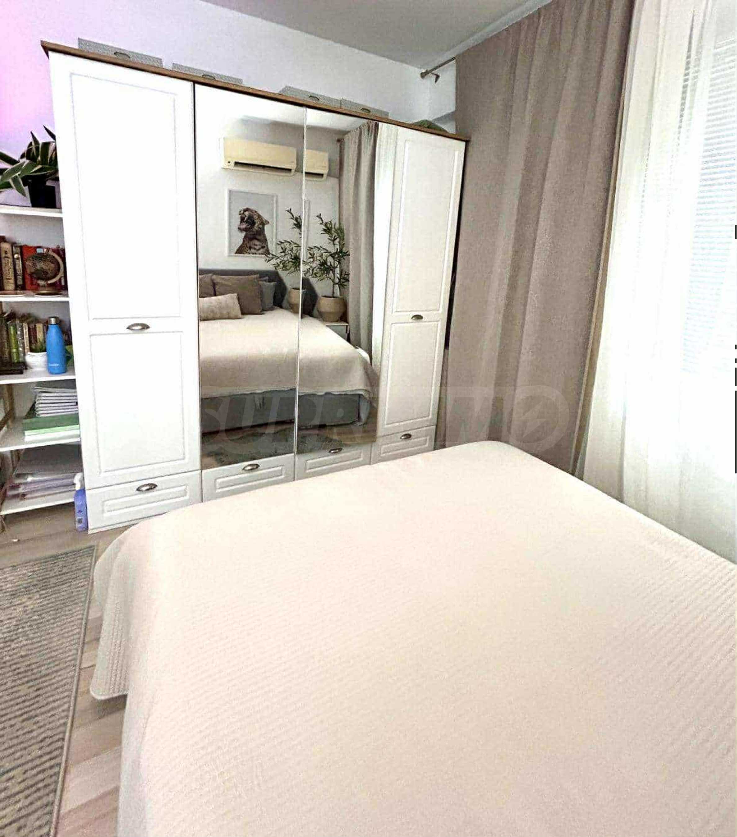 Апартаментът е с площ 42 кв.м и е разположен на шести етаж в сграда с асансьор. Жилището е основно ремонтирано и обзаведено с мебели и електрически уреди от висок клас, което го прави готово за незабавно настаняване.