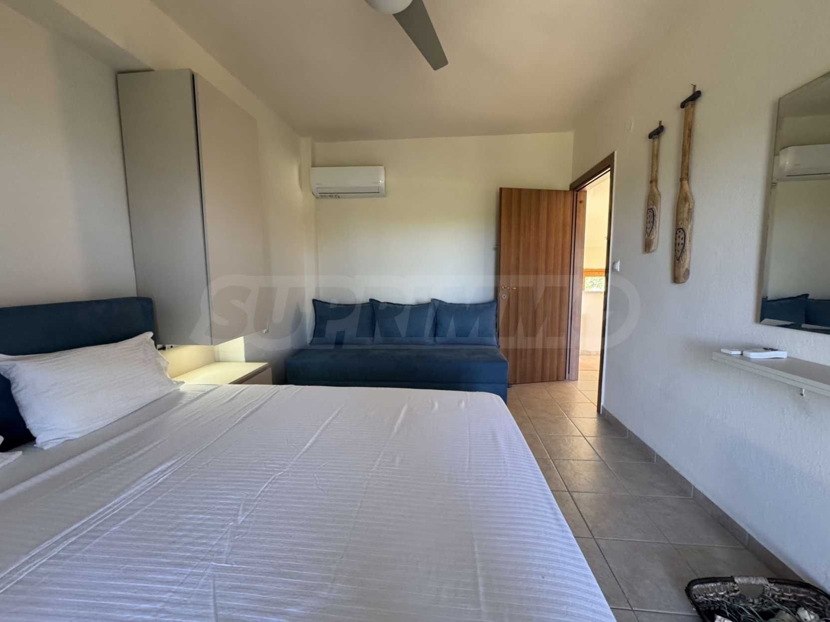 Разположена в Халкидики, тази новопостроена самостоятелна къща в комплекс предлага невероятна гледка към планината и е само на 5 минути пеша от морето. С 3 спални, 2 бани и 2 паркоместа, този имот е идеален за тези, които търсят спокоен крайбрежен начин на живот. Жителите могат да се насладят и на общ открит басейн. Не пропускайте възможността да притежавате райско кътче в община Касандра.