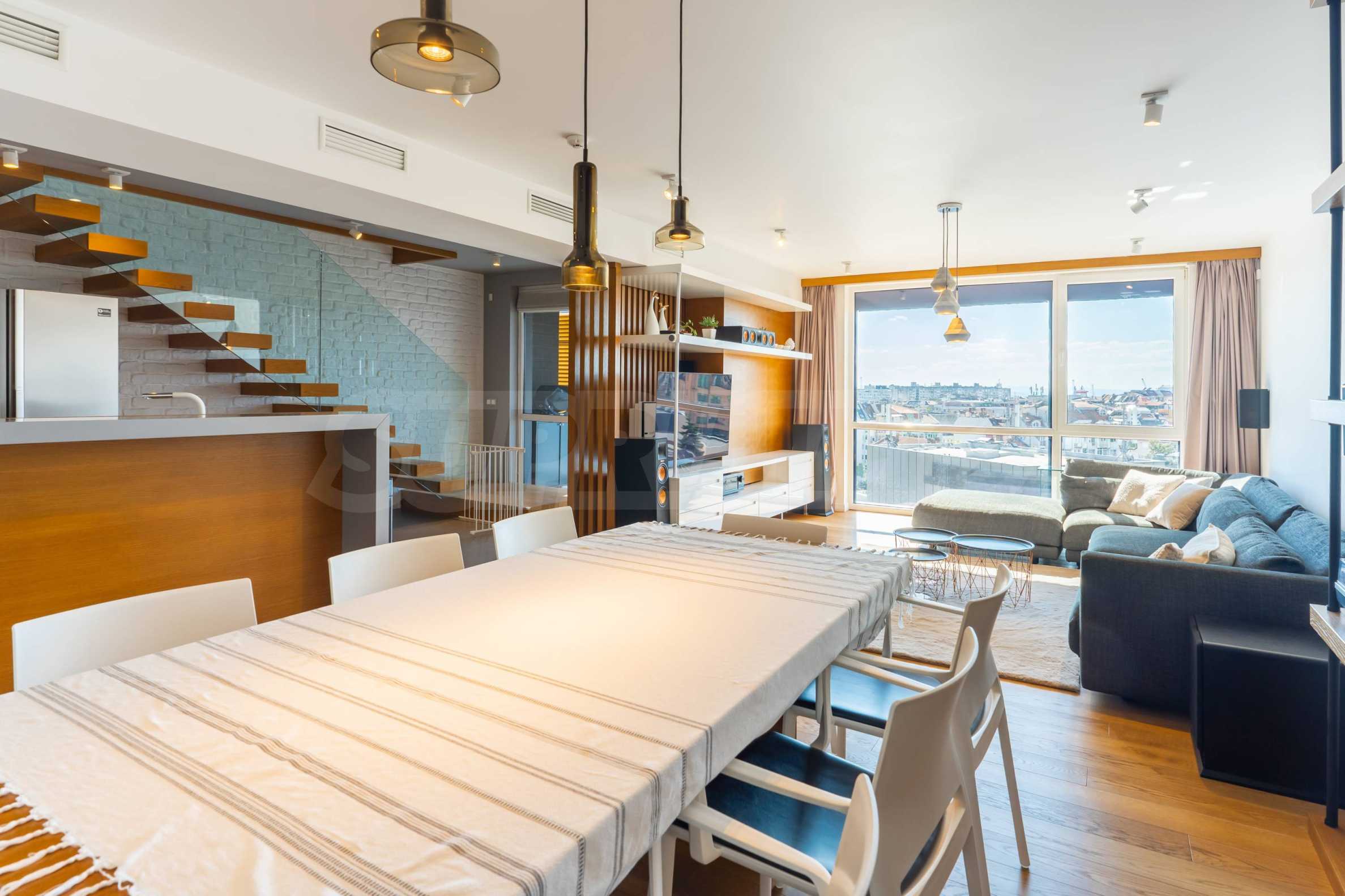 Представяме за продажба тристаен апартамент на две нива в нова, емблематична жилищна сграда с отлична локация, в сърцето на Бургас. На самата пешеходна улица, в непосредствена близост до площад "Тройката", Съдебна палата, административни сгради, банки, аптеки, магазини, заведения, салони за красота и други удобства.