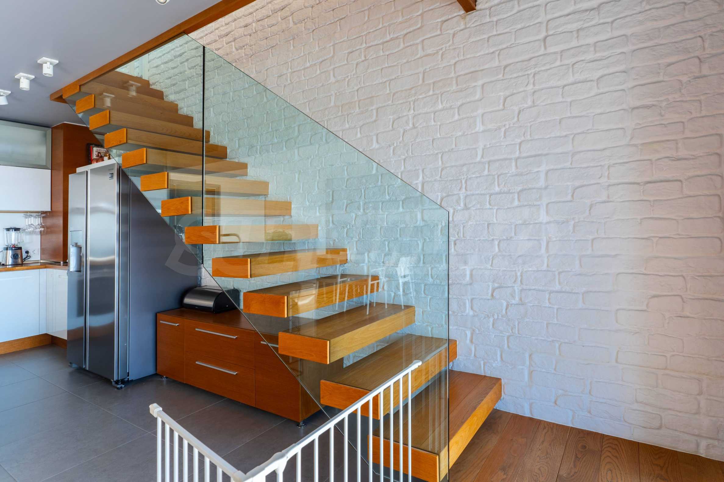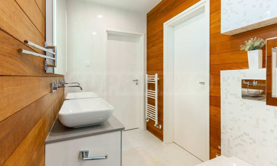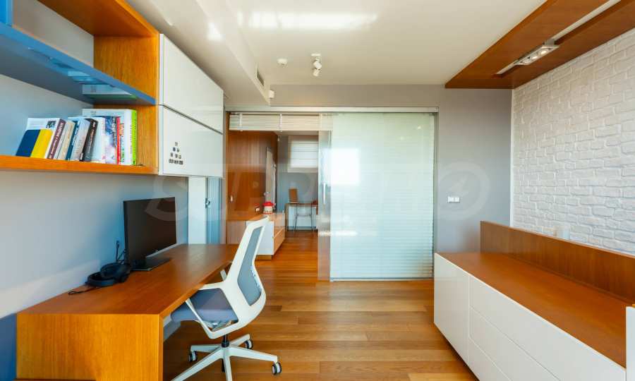 • второ ниво: две спални, едната с дрешник, кабинет, баня с тоалет, панорамна тераса.