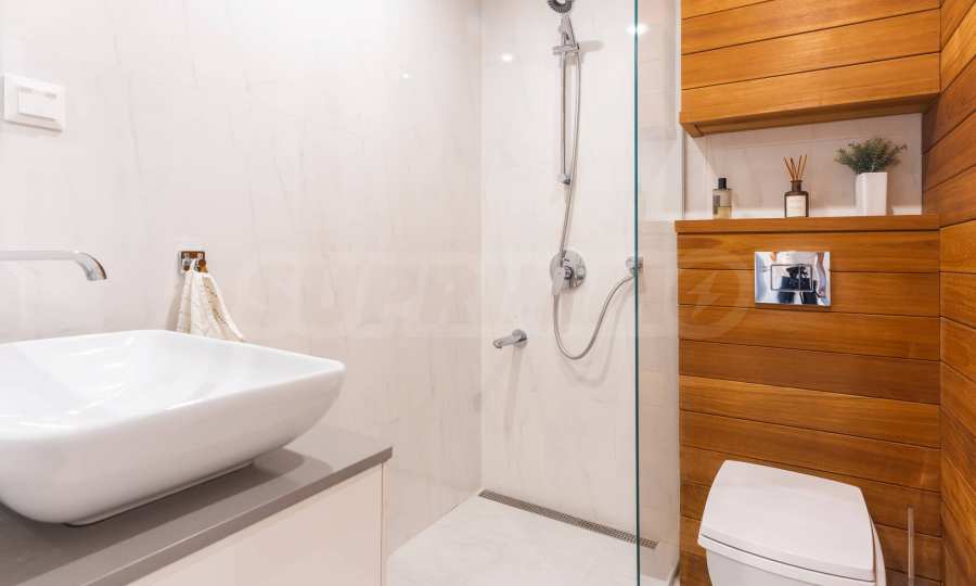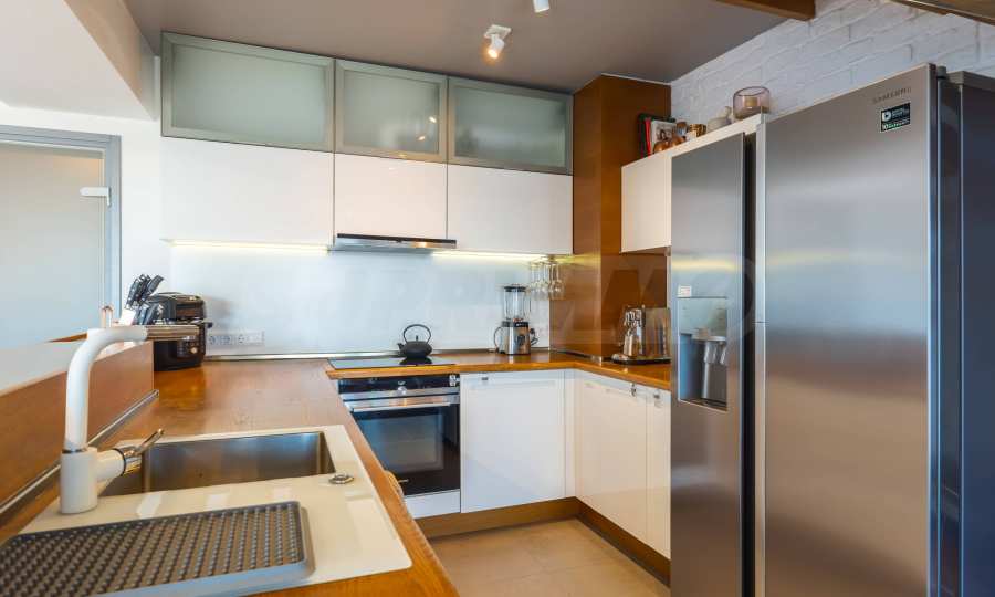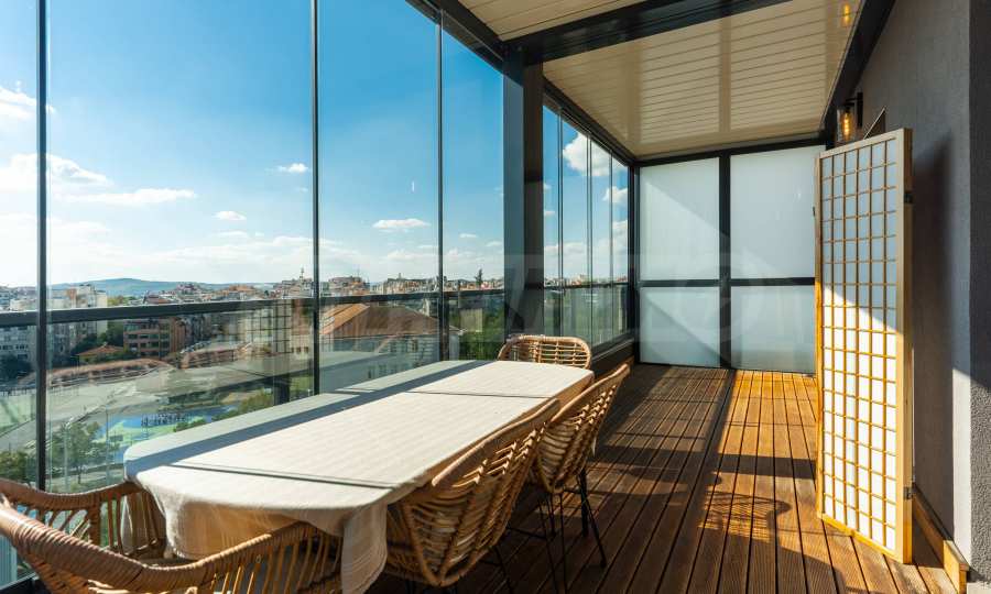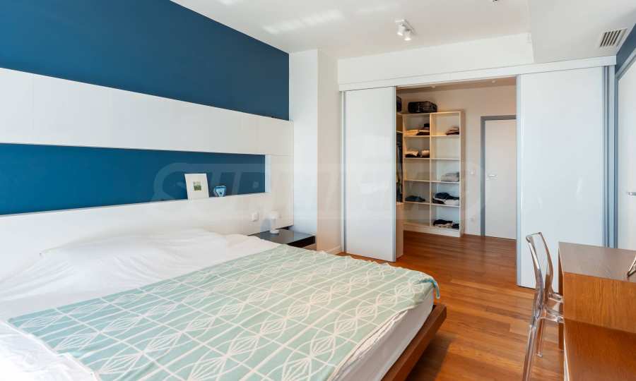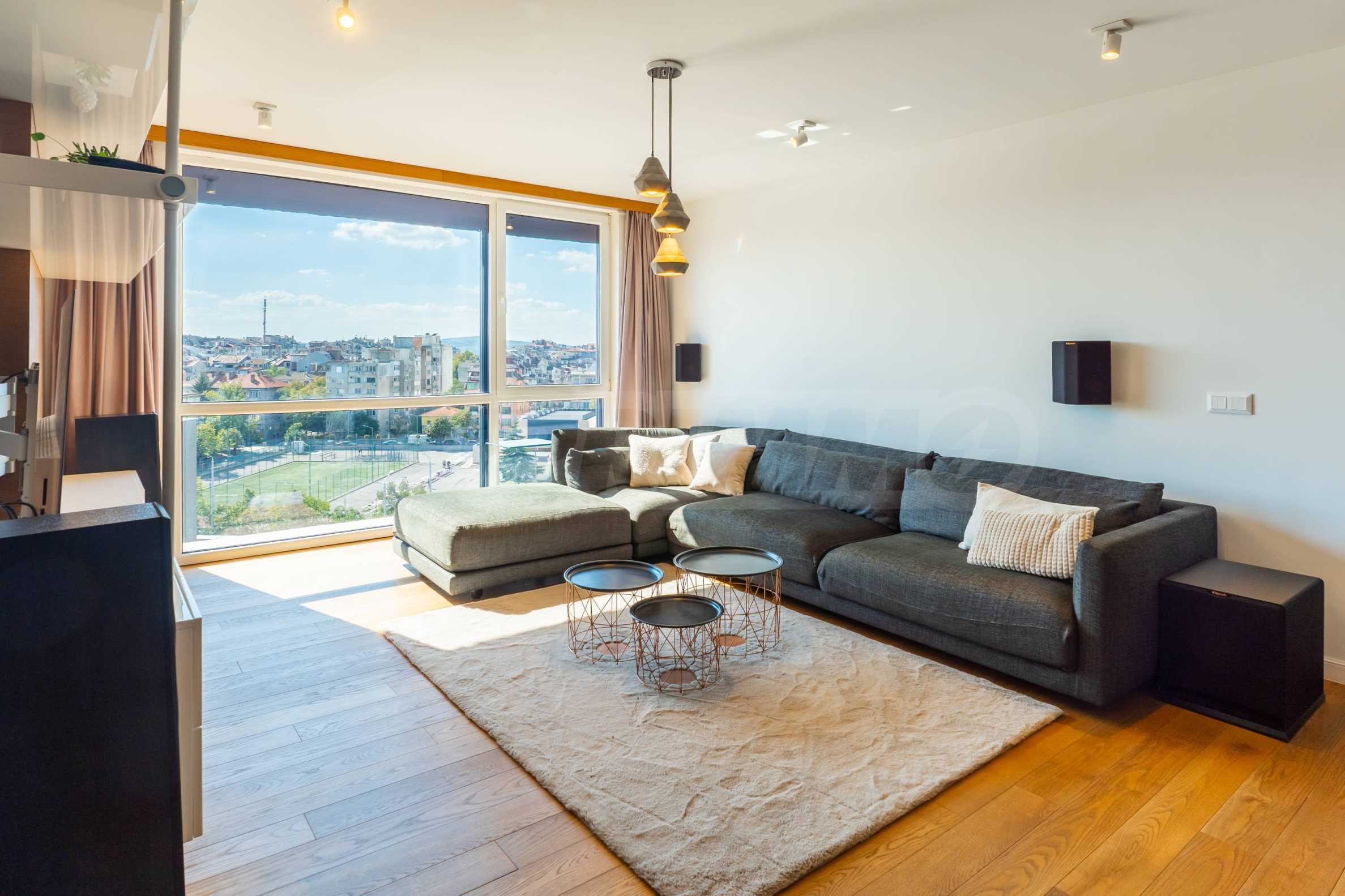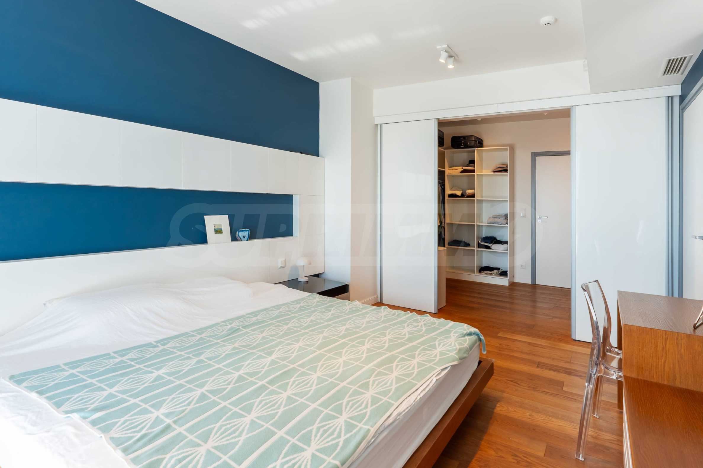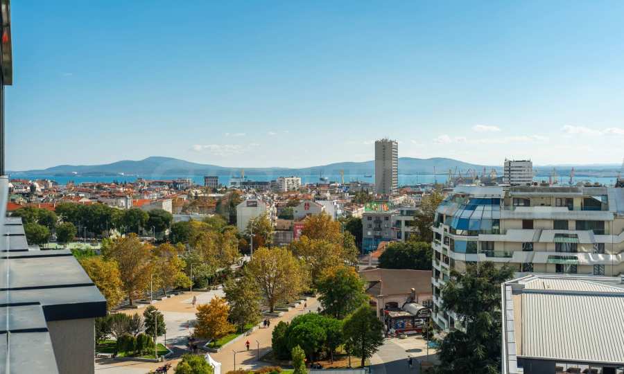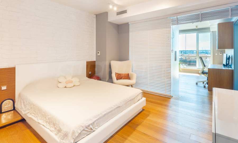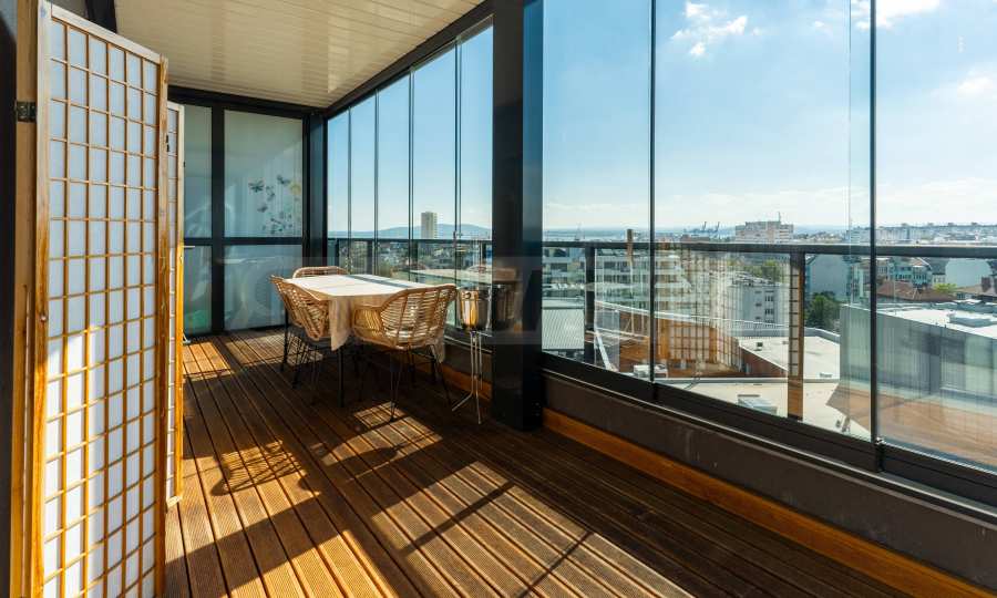 Имотът е с обща площ от 178 кв.м, разположен на 8-и етаж с красива панорама към града и морския залив.
