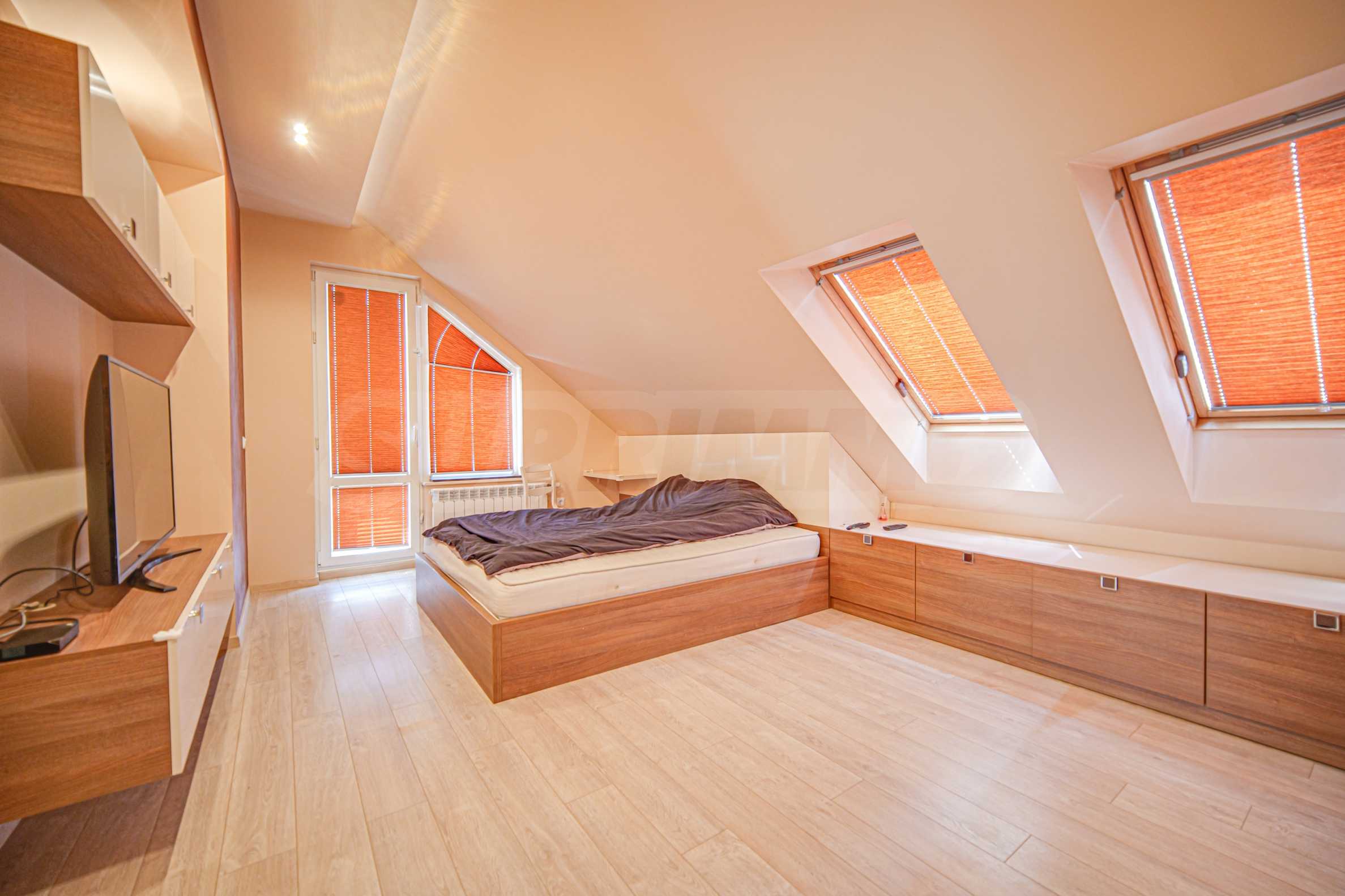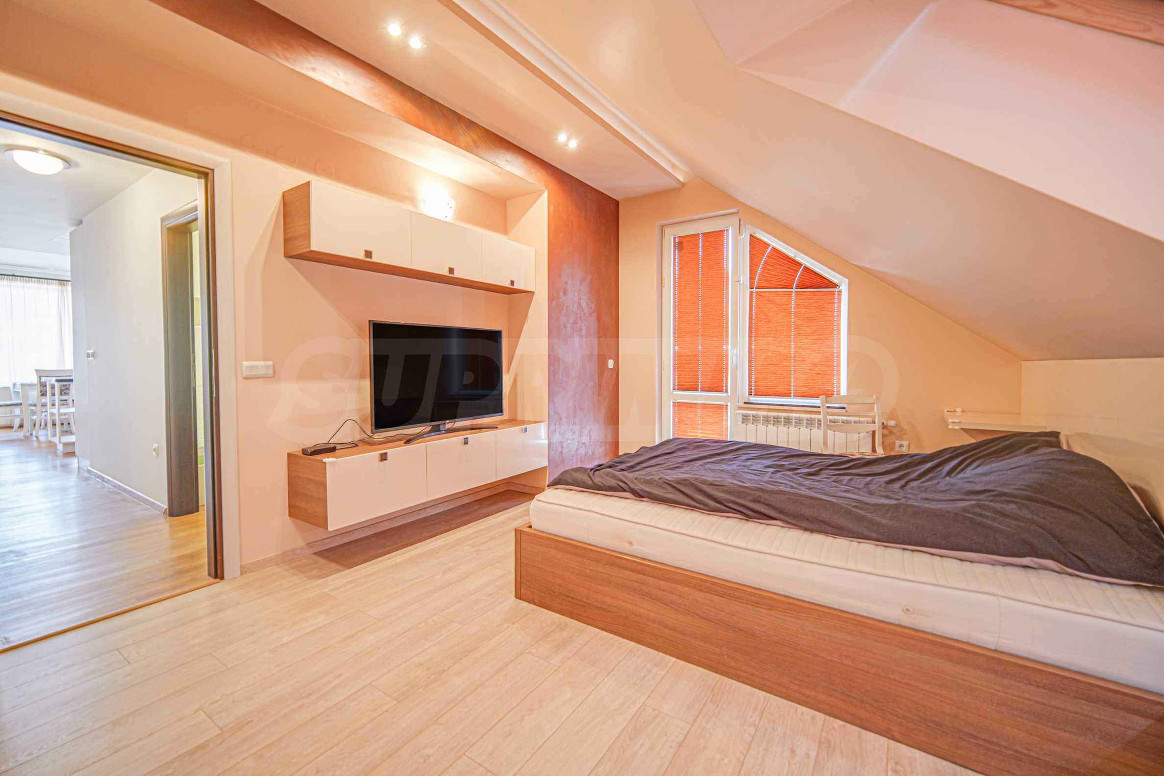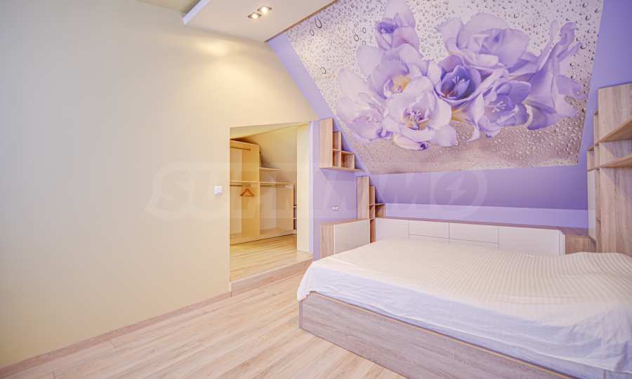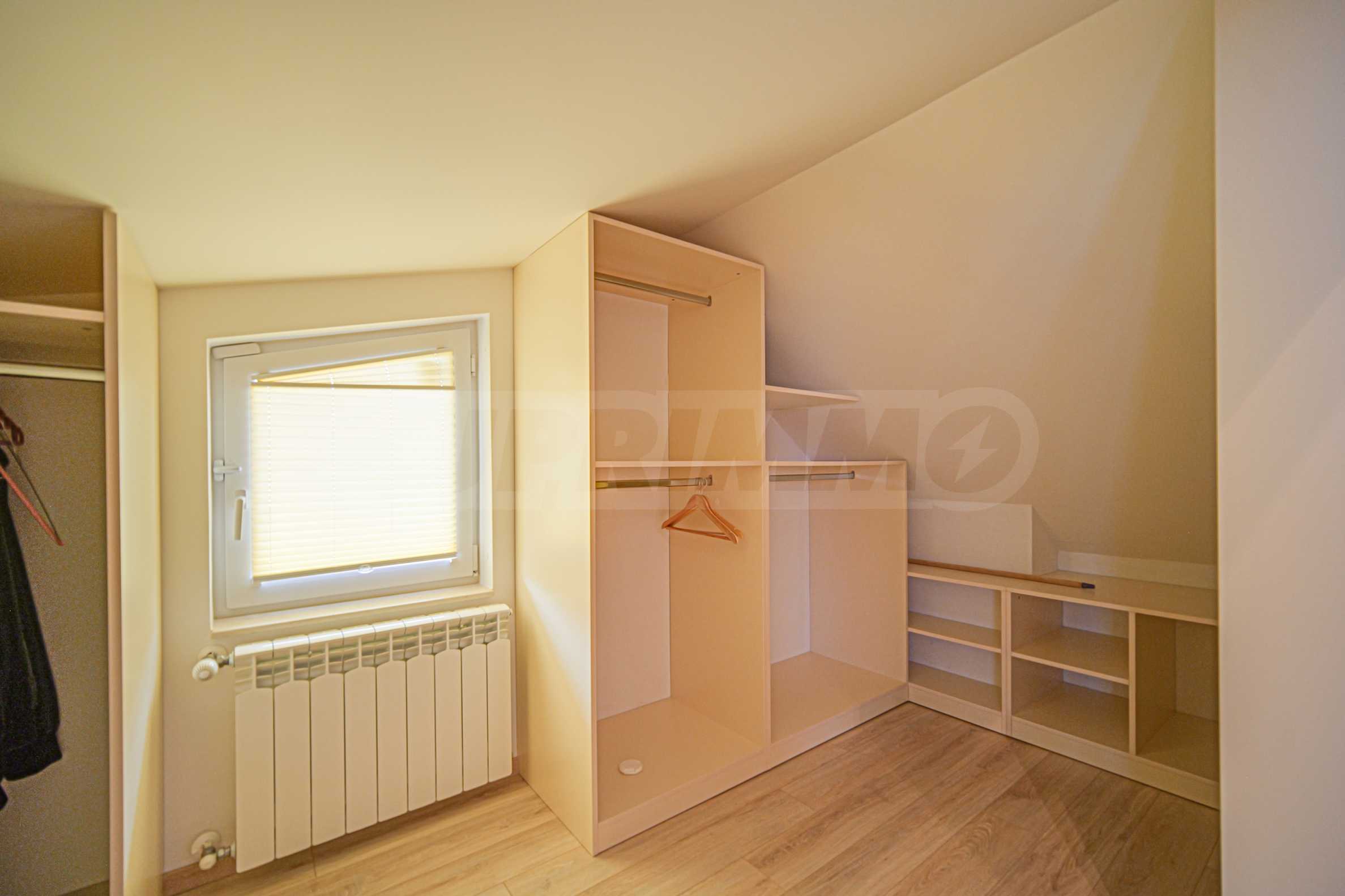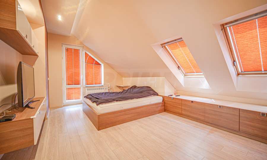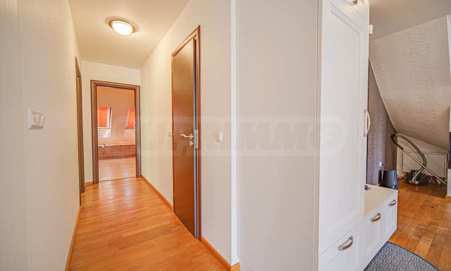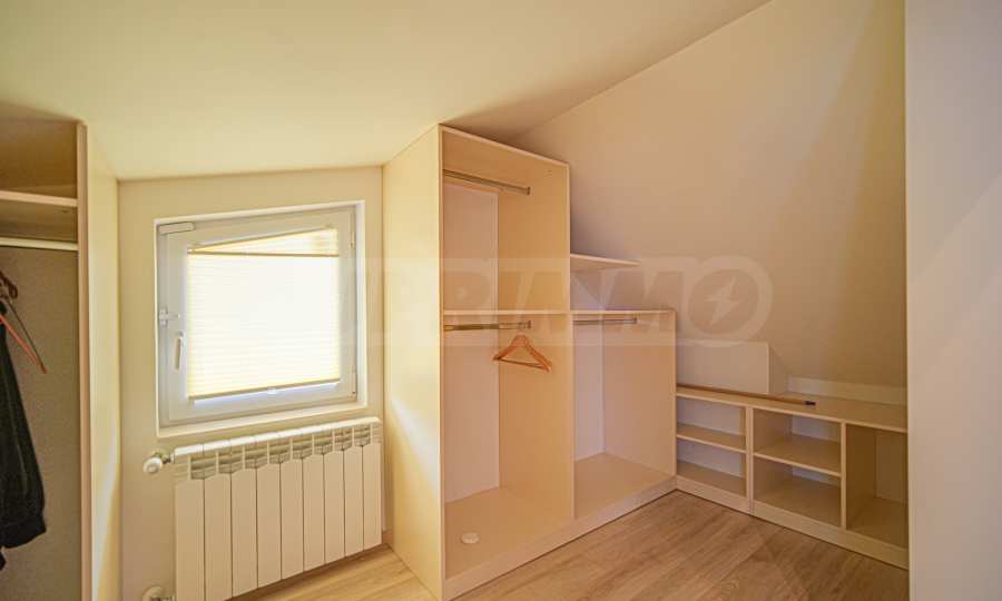 • на второ ниво е разположена 1 спалня с отличен размер, отделен дрешник, както и трета баня с тоалетна.