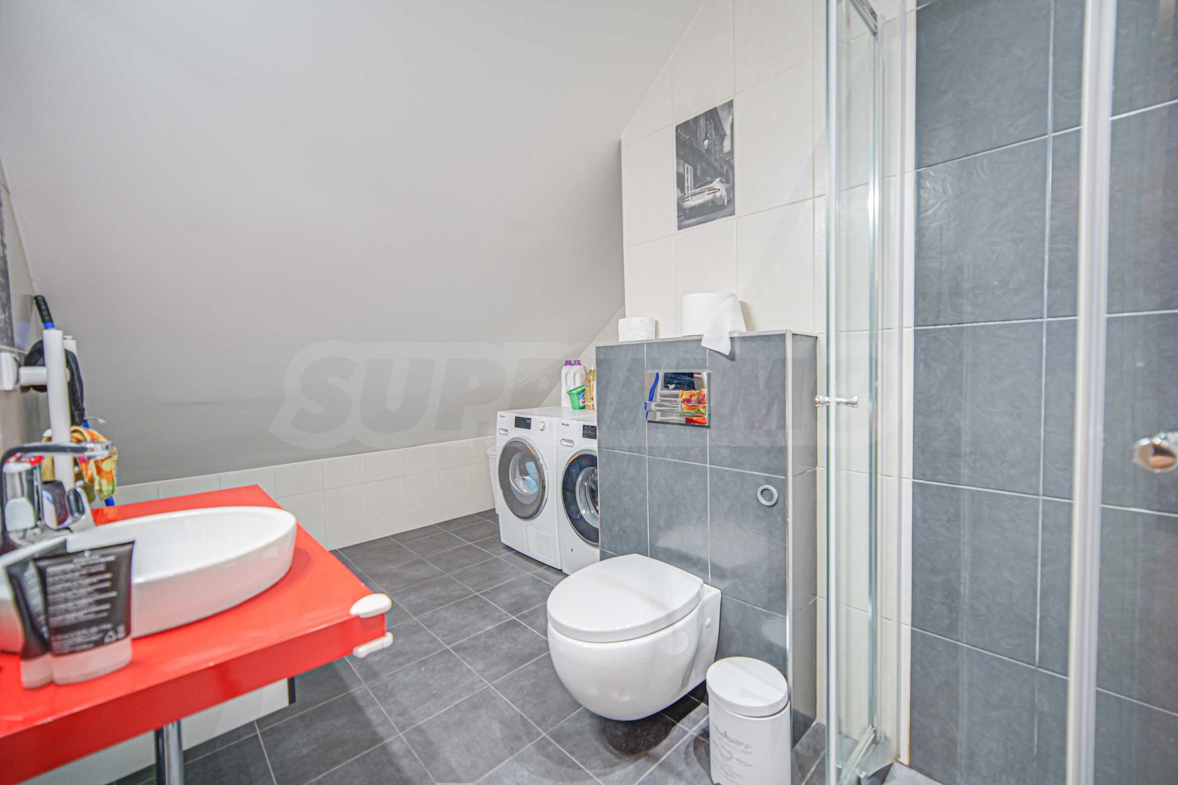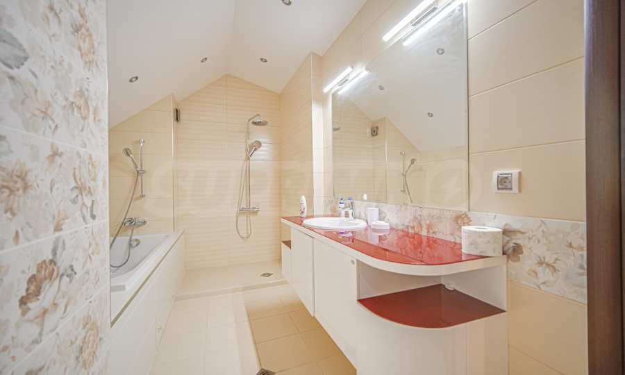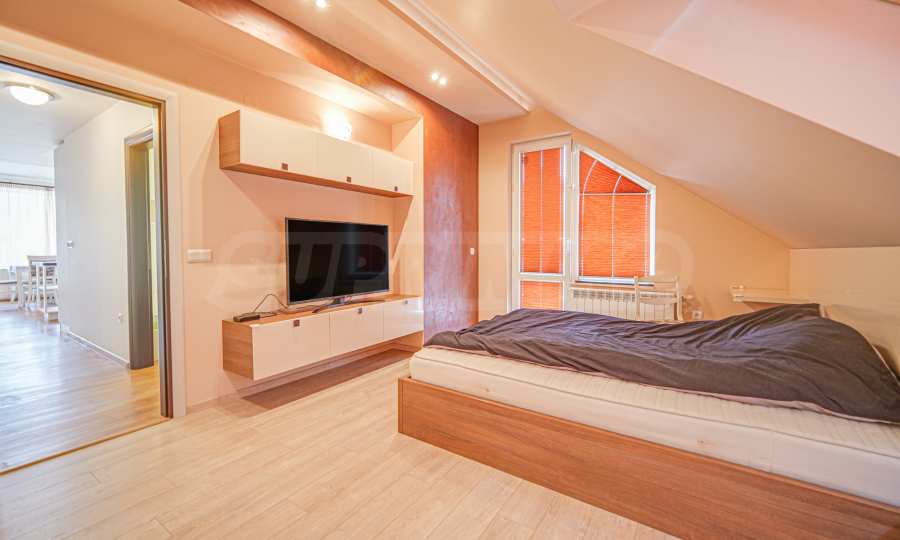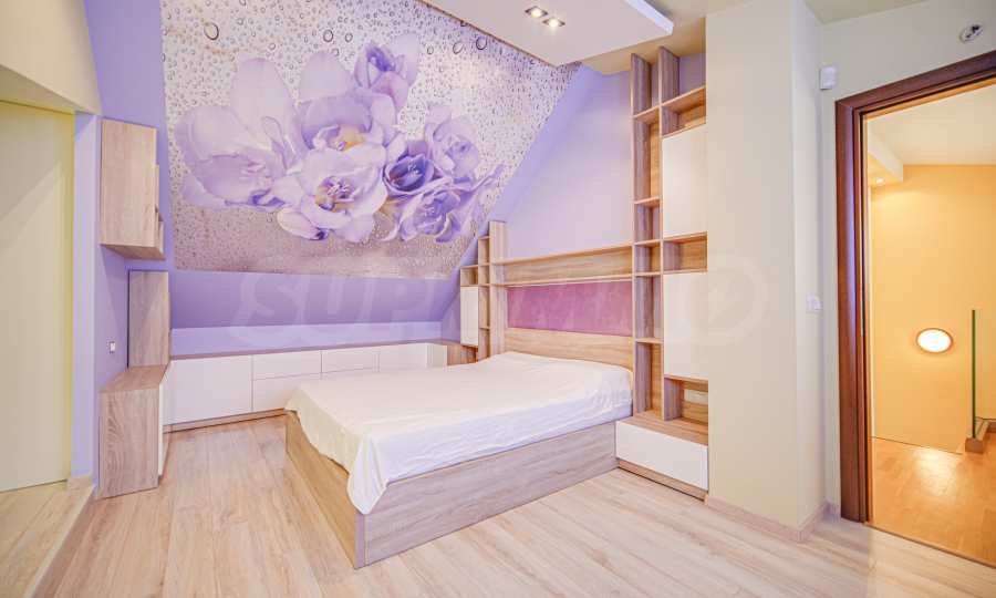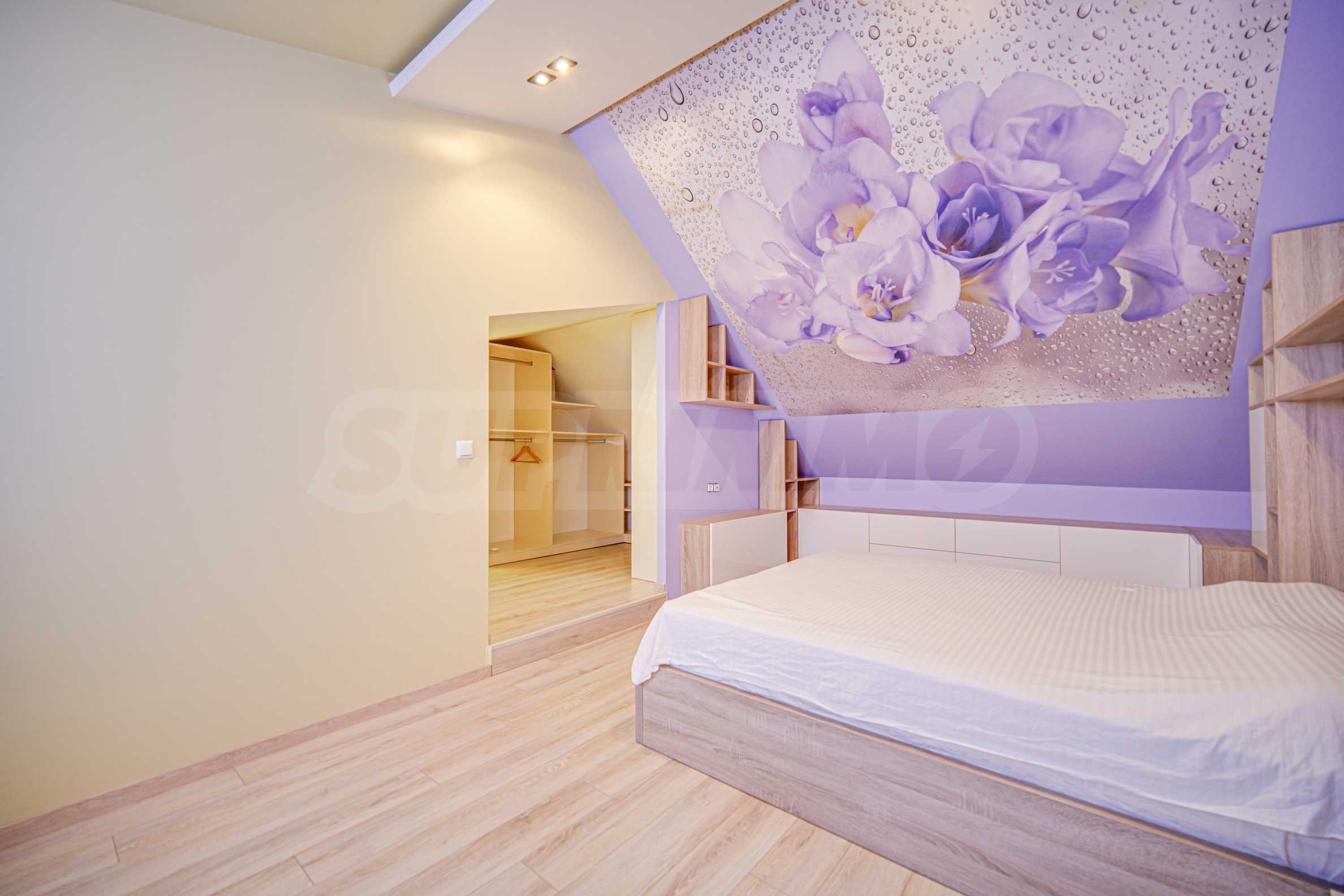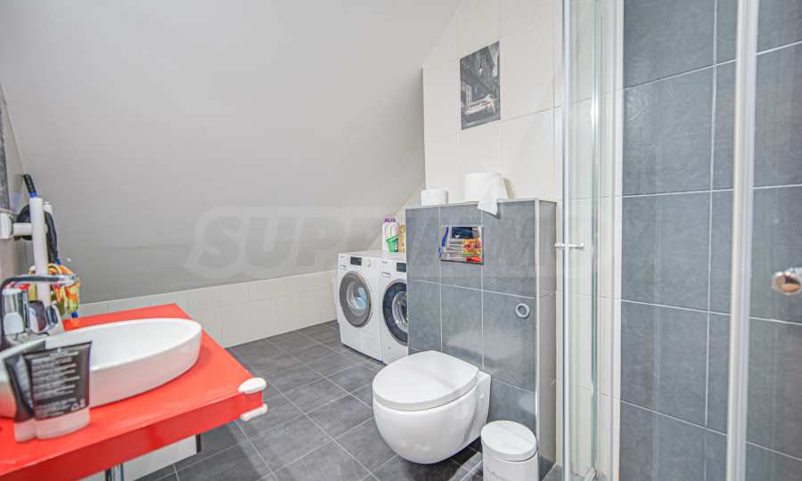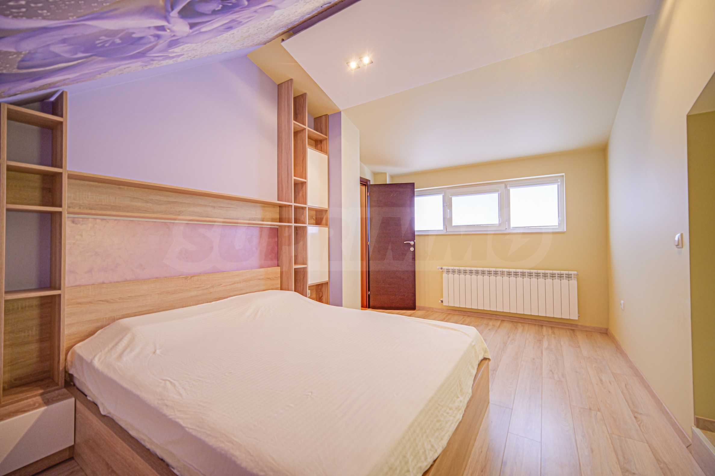 • на второ ниво е разположена 1 спалня с отличен размер, отделен дрешник, както и трета баня с тоалетна.