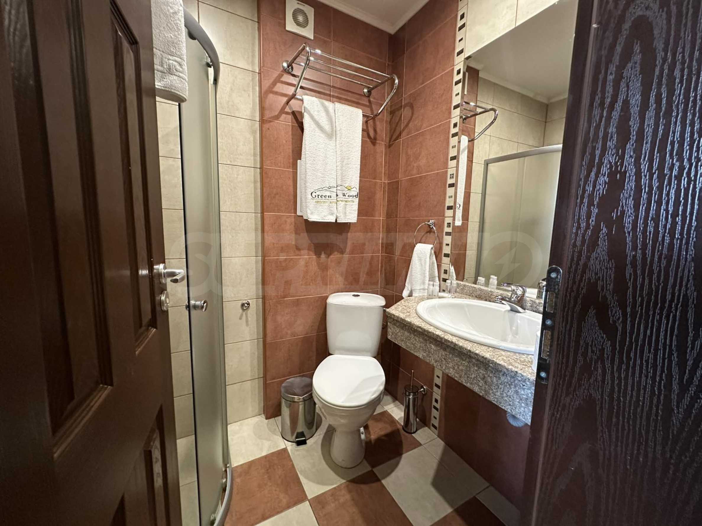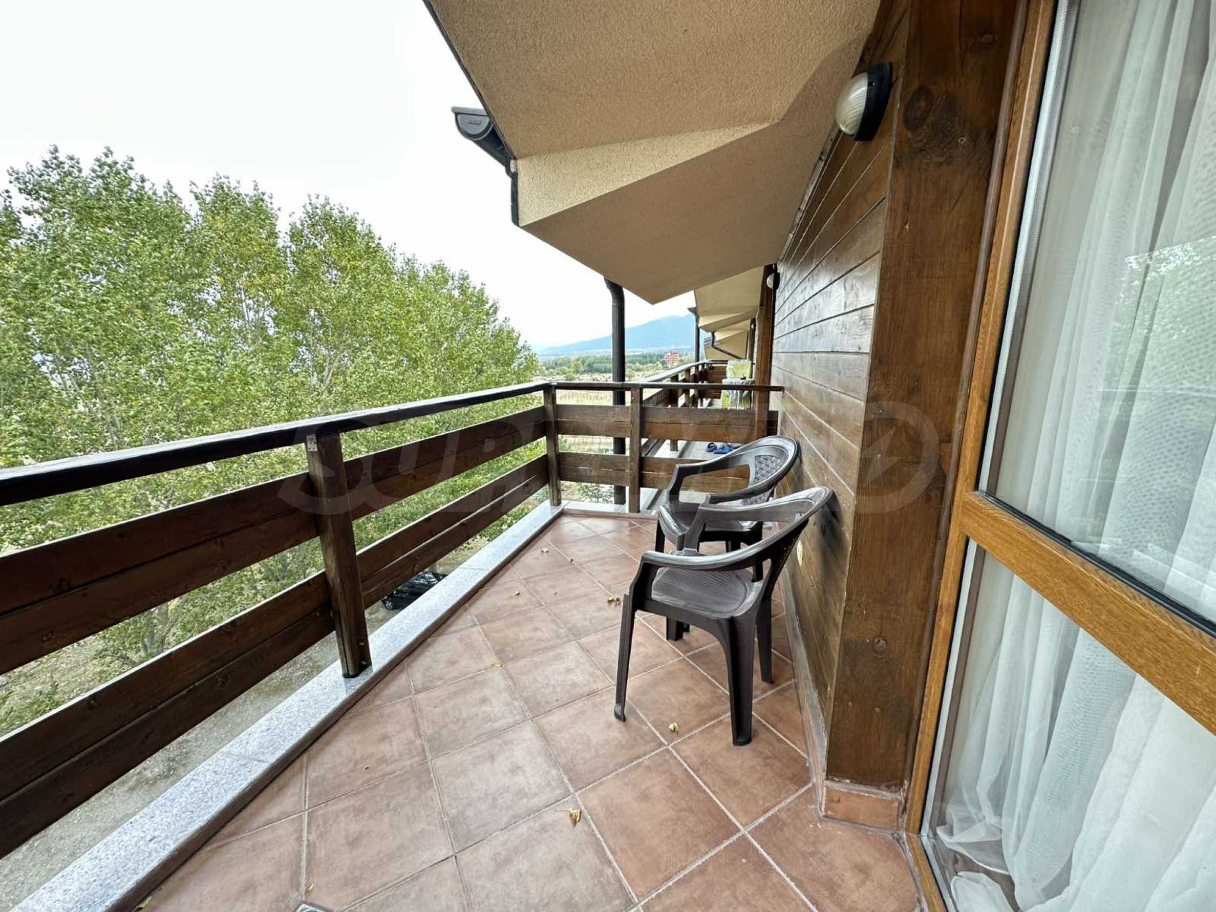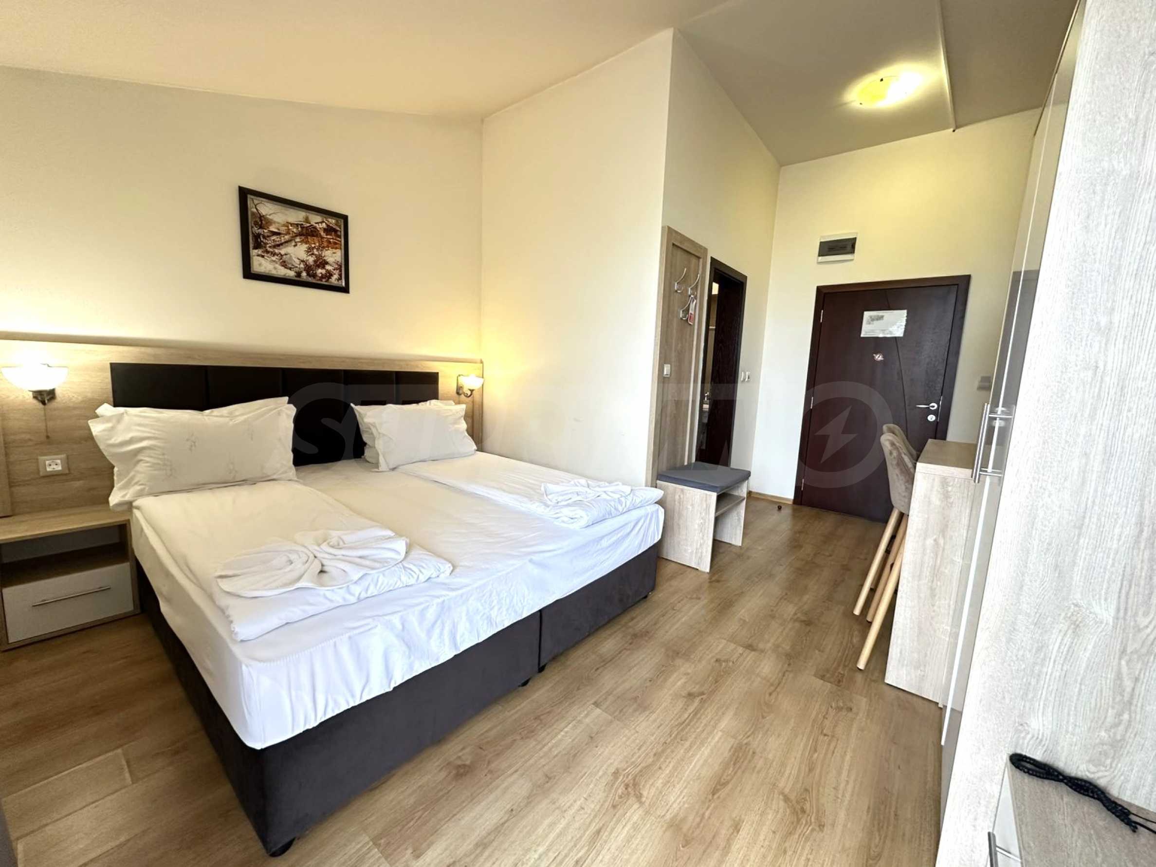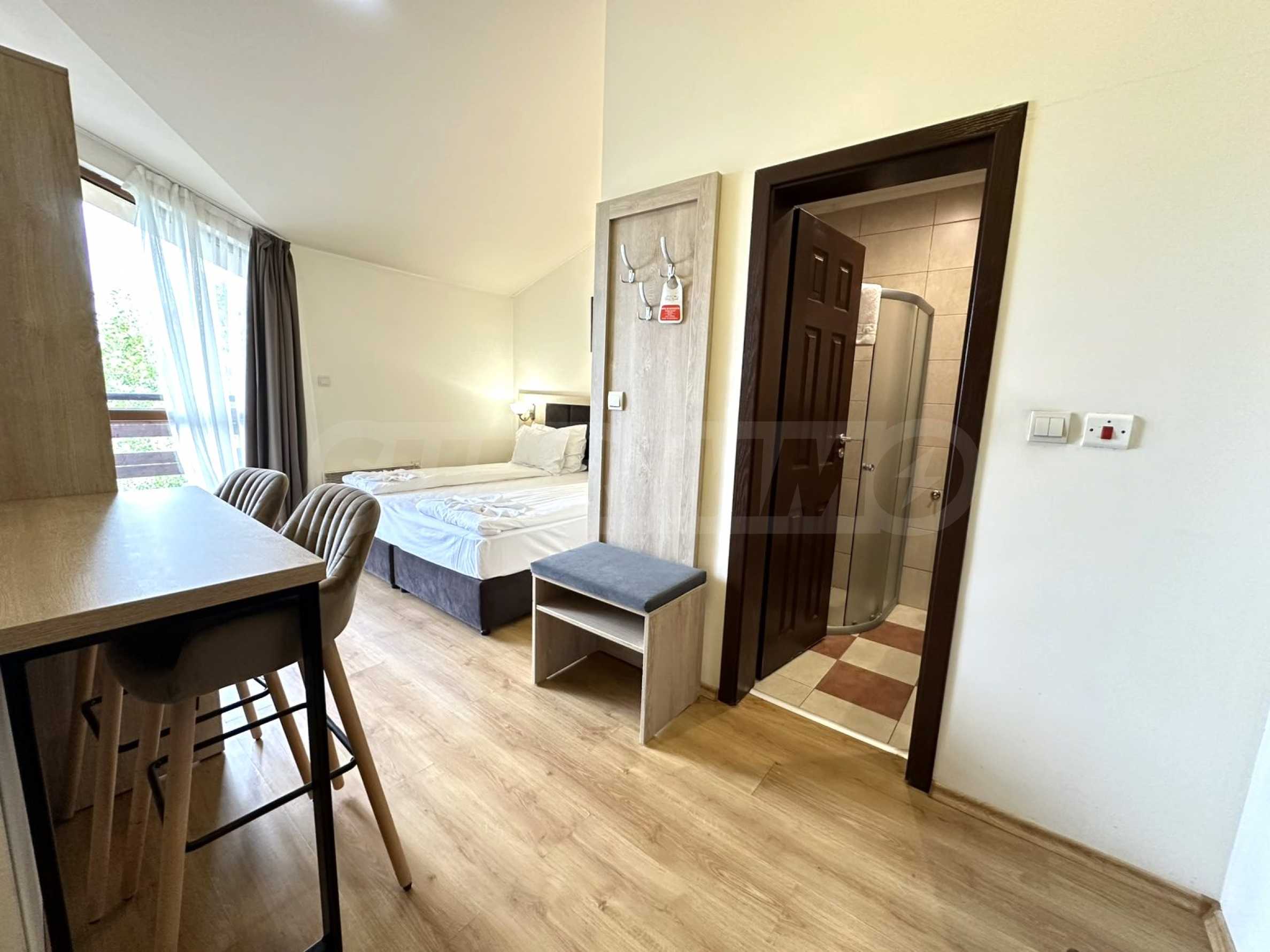 Апартаментът е тип студио и разполага със спалня, гардероб, барплот, напълно оборудвана кухня с 2 котлони, хладилник, тераса, баня с душ кабина и тоалетна.