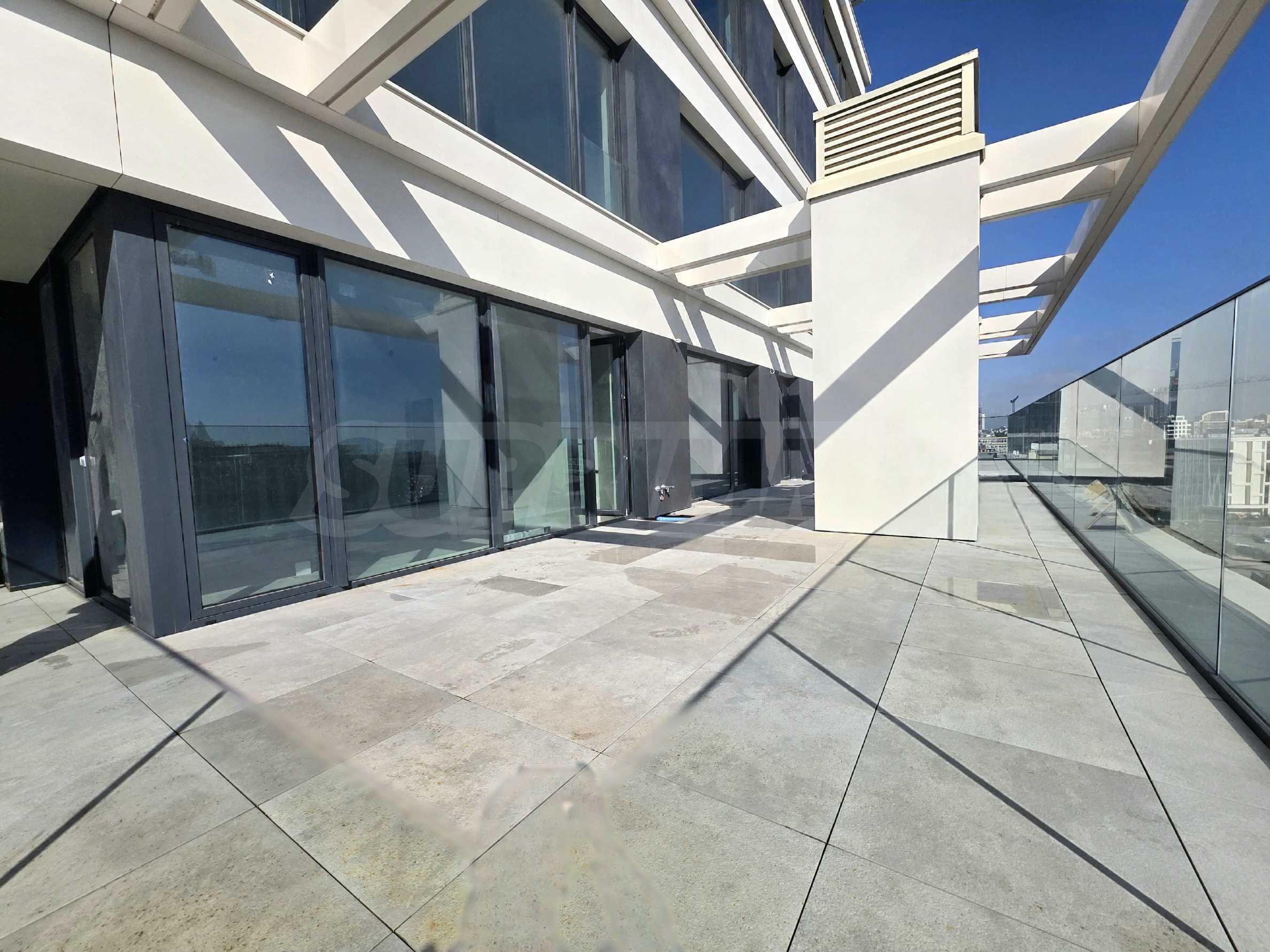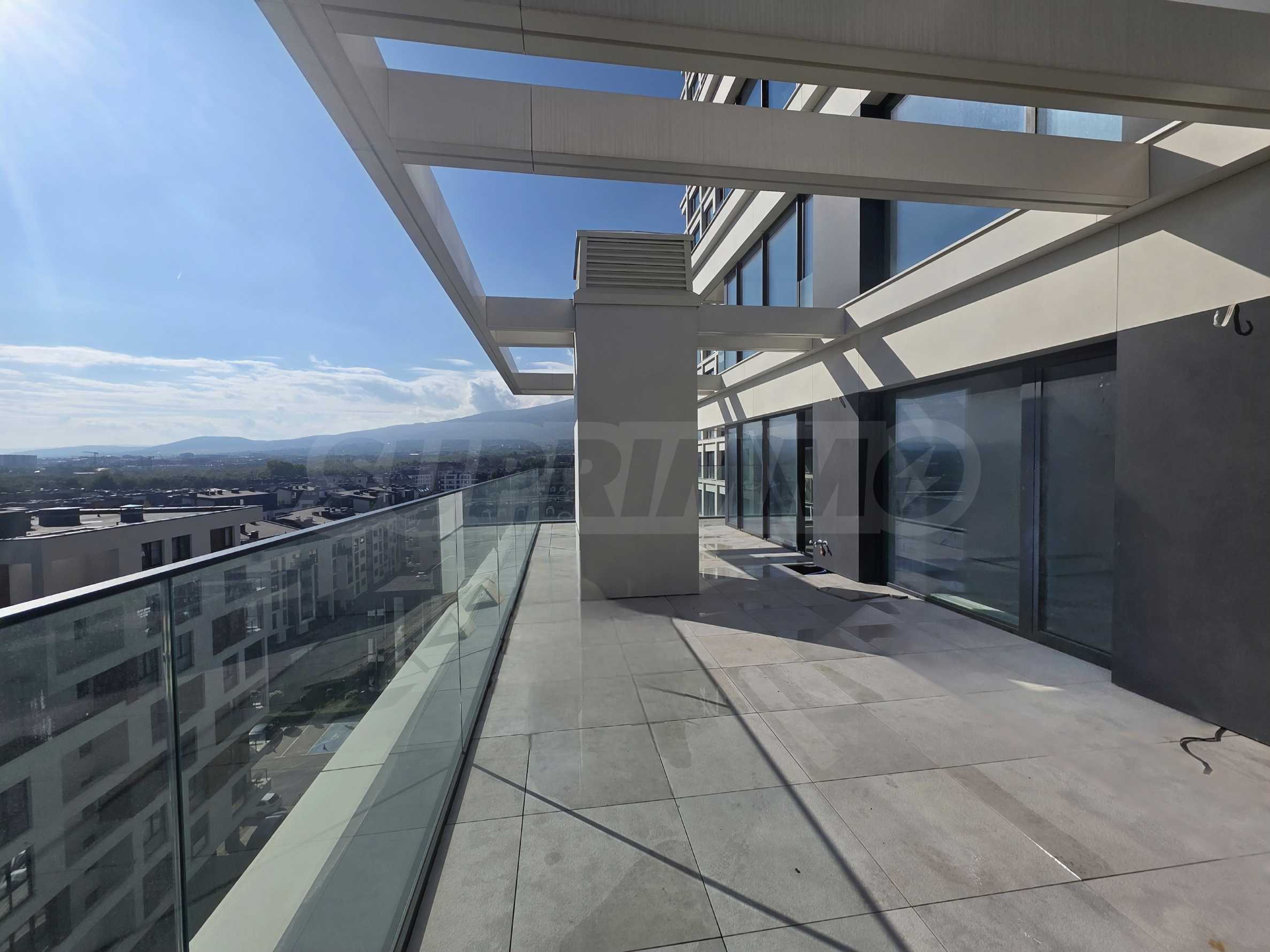 • Тераса към всекидневната с панорамни гледки към града, Борисовата градина и Витоша.