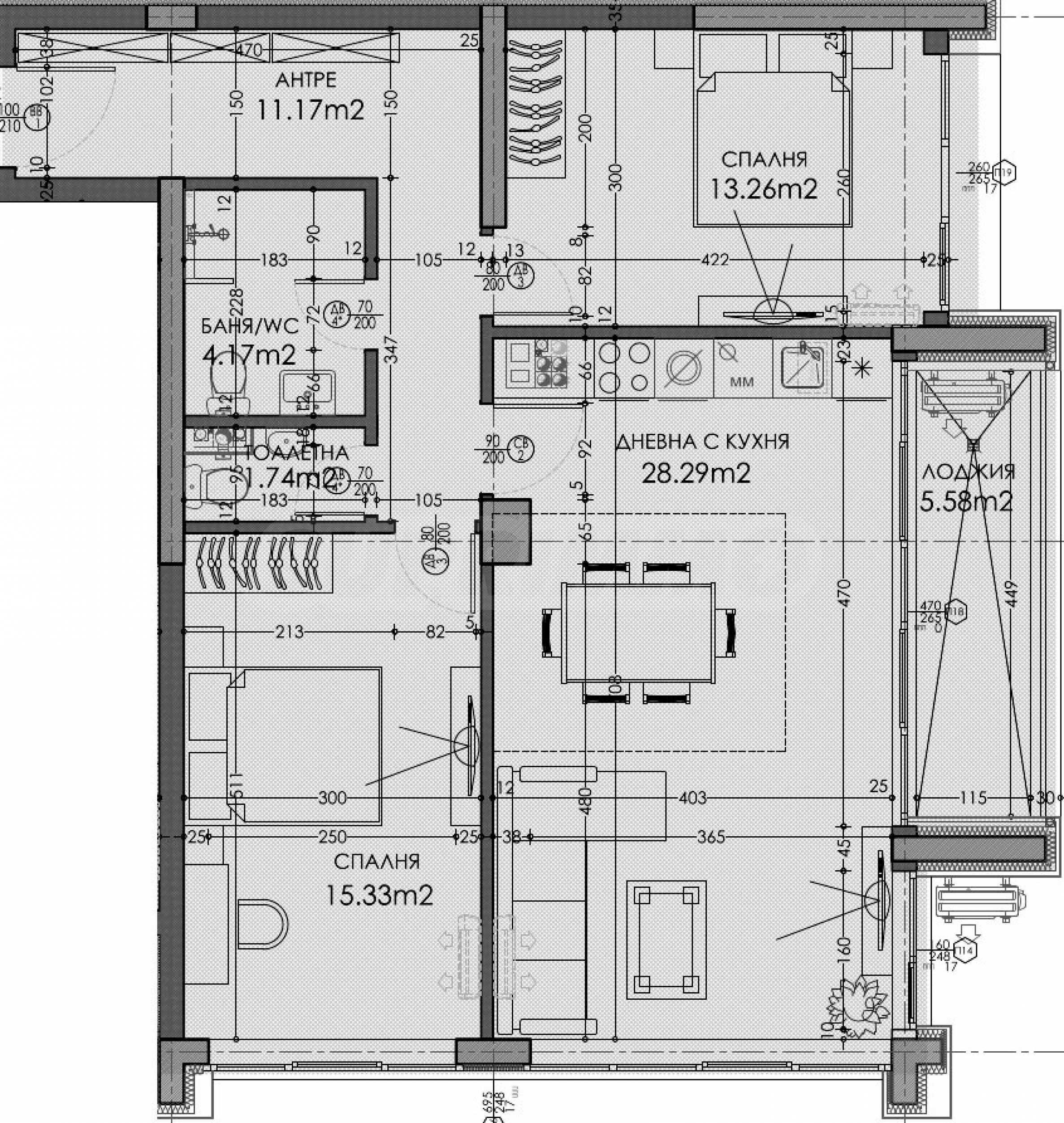 • дневна с трапезария и кухня;