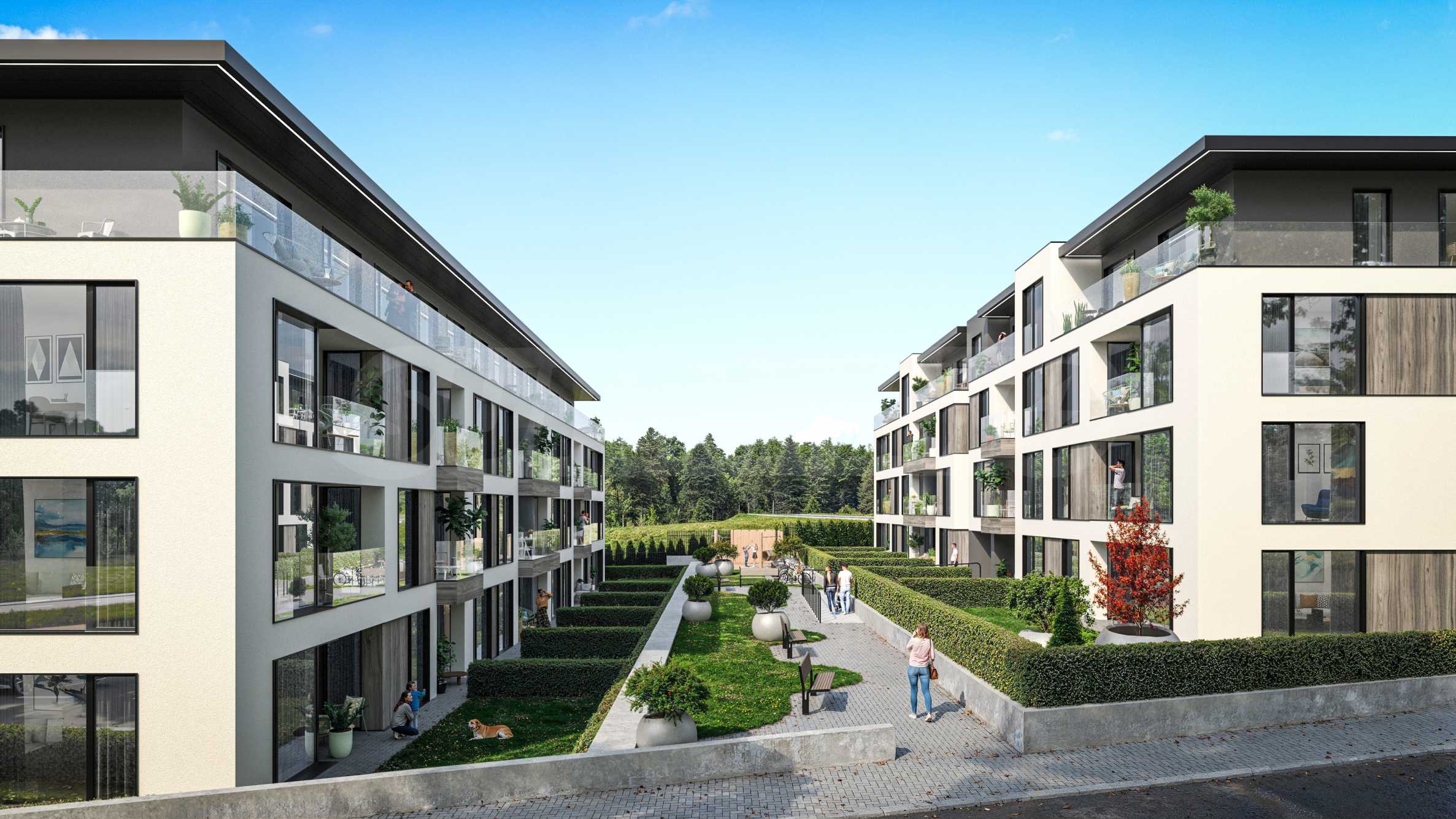Комплексът включва три свободностоящи жилищни сгради с подземен паркинг, уютни общи пространства и изцяло жилищна надземна част на три етажа и подпокривно ниво.