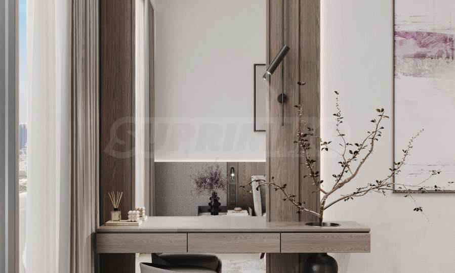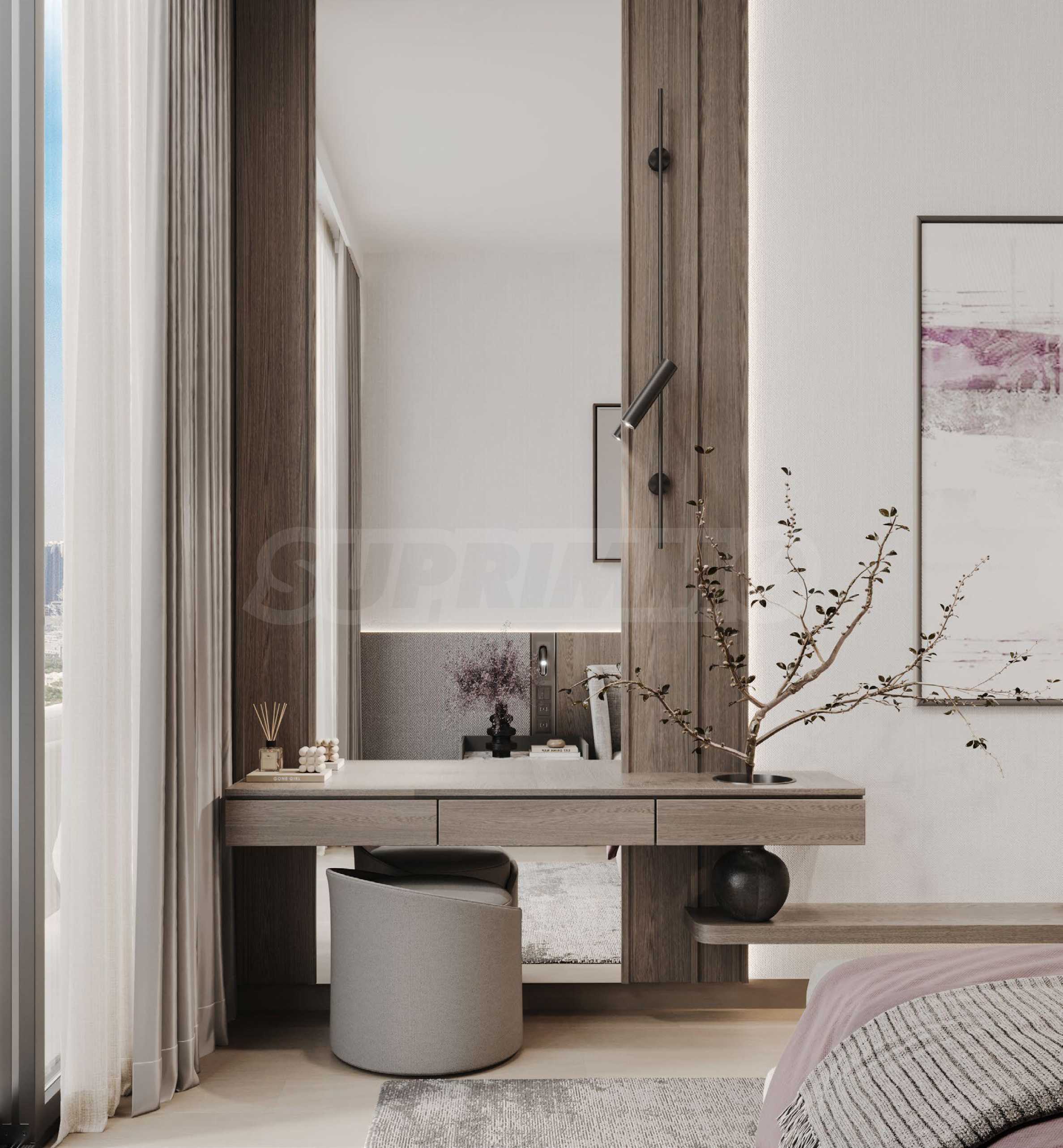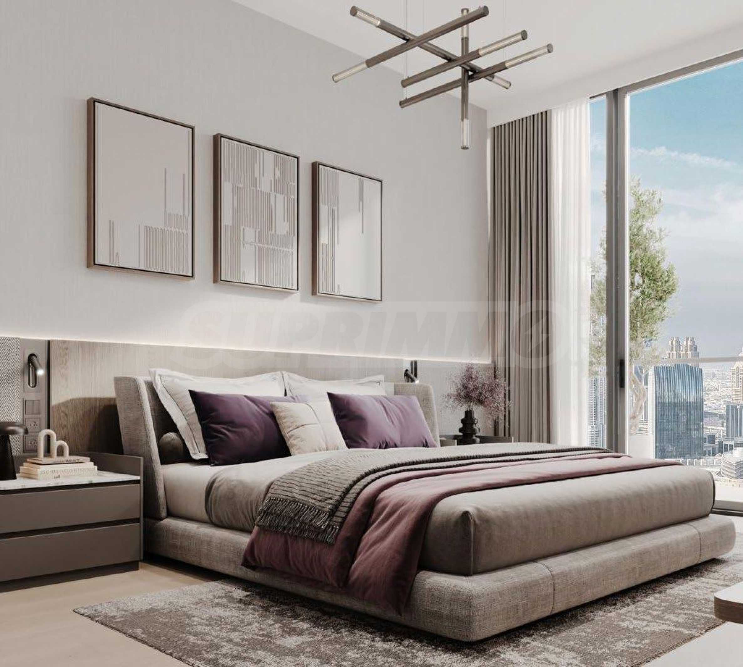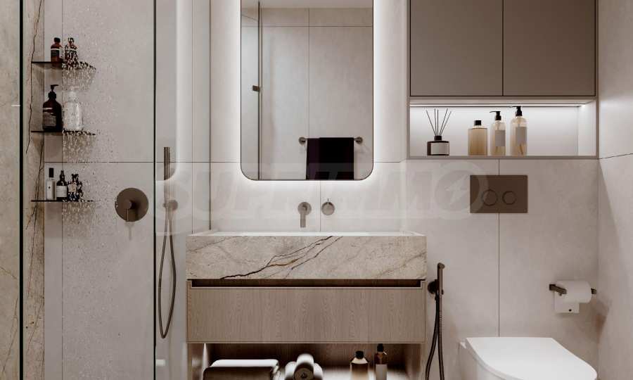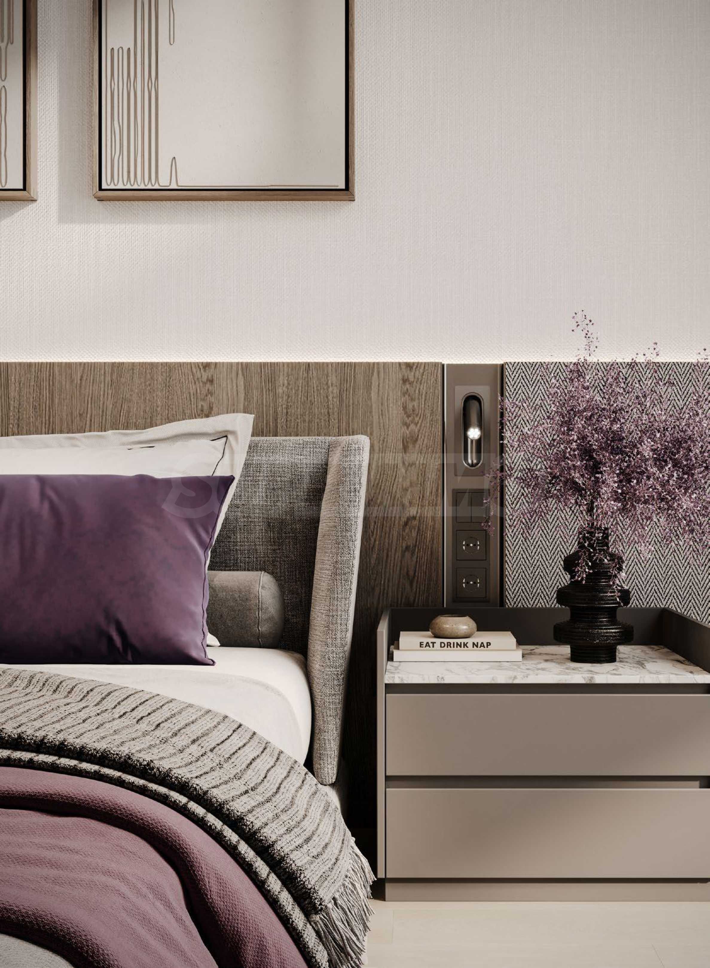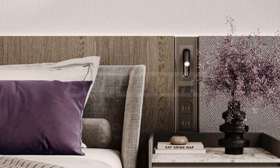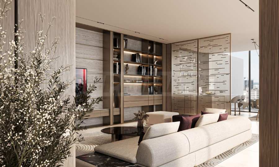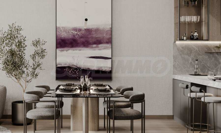 Апартаментите се предлагат напълно обзаведени и оборудвани с висококачествени електроуреди и дизайнерски мебели, подбрани с внимание към всеки детайл. Интериорните решения съчетават изтънчен стил и практичност, създавайки дом, който е едновременно елегантен, уютен и устойчив във времето.