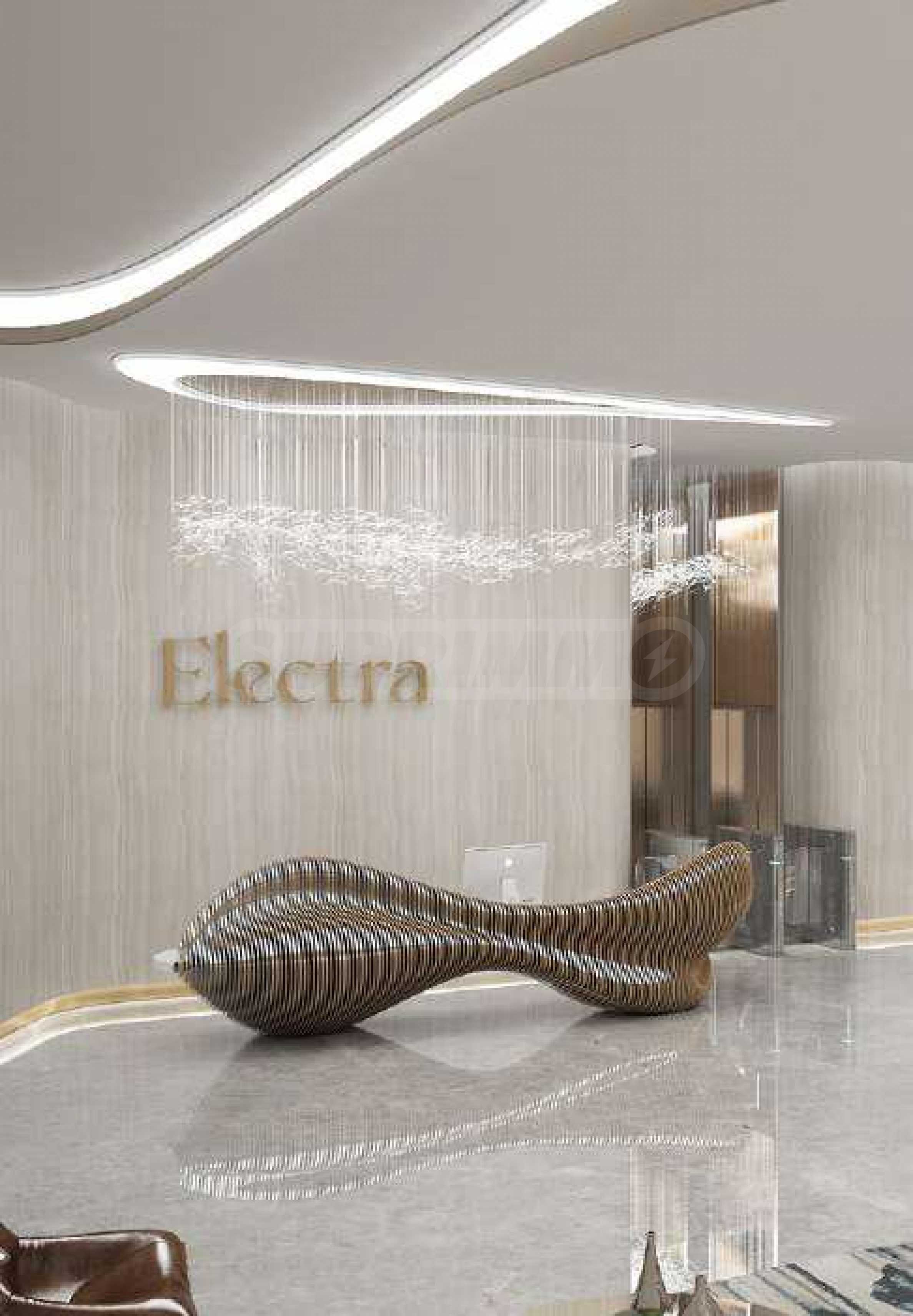 Electra by Acube впечатлява с изящна архитектура, разгръщаща се на 37 етажа. Елегантните извивки и модерните линии ѝ придават съвременна естетика и отличителен силует, който веднага привлича вниманието. Още с първата крачка във фоайето се усеща атмосферата на лукс и изисканост – място, където дизайнът, комфортът и детайлът се срещат в съвършена хармония.