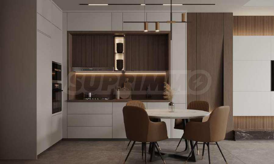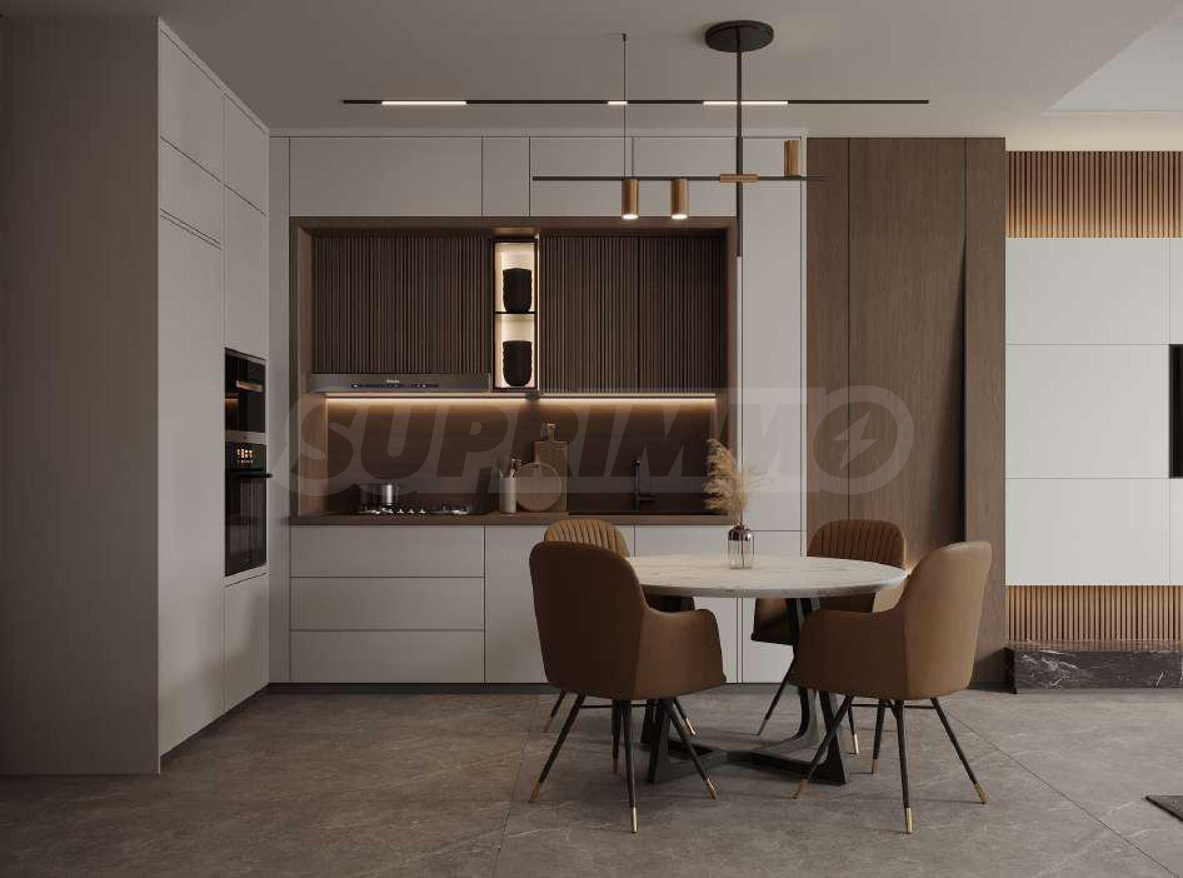 Високото качество на изпълнение личи във всеки детайл – електроуреди Bosch, санитария Roca и кухни с изтънчен италиански дизайн гарантират не само елегантна визия, но и дълготрайна функционалност. Допълнителен щрих към съвременния комфорт са интегрираните Smart Home системи, които позволяват управление на осветлението, температурата и уредите само с едно докосване през мобилното приложение – където и да се намирате.