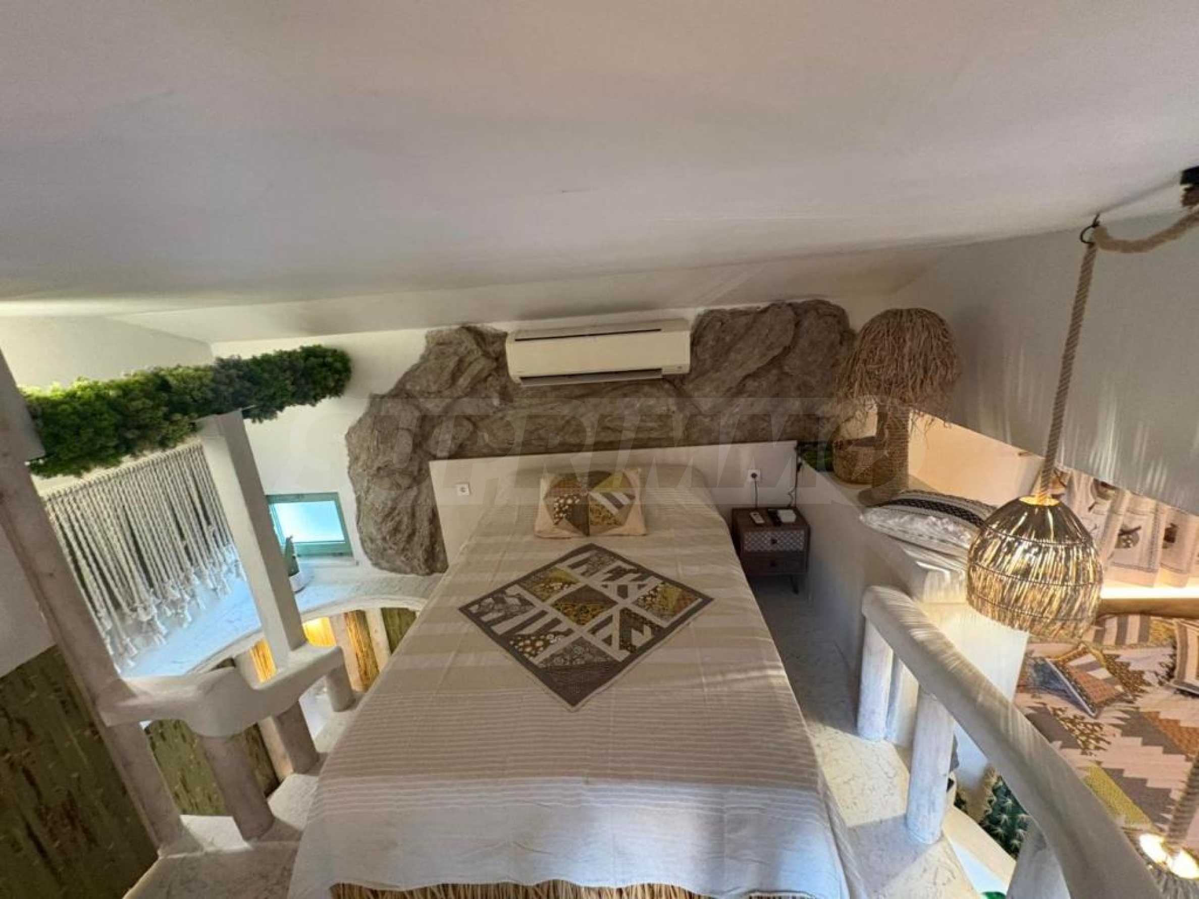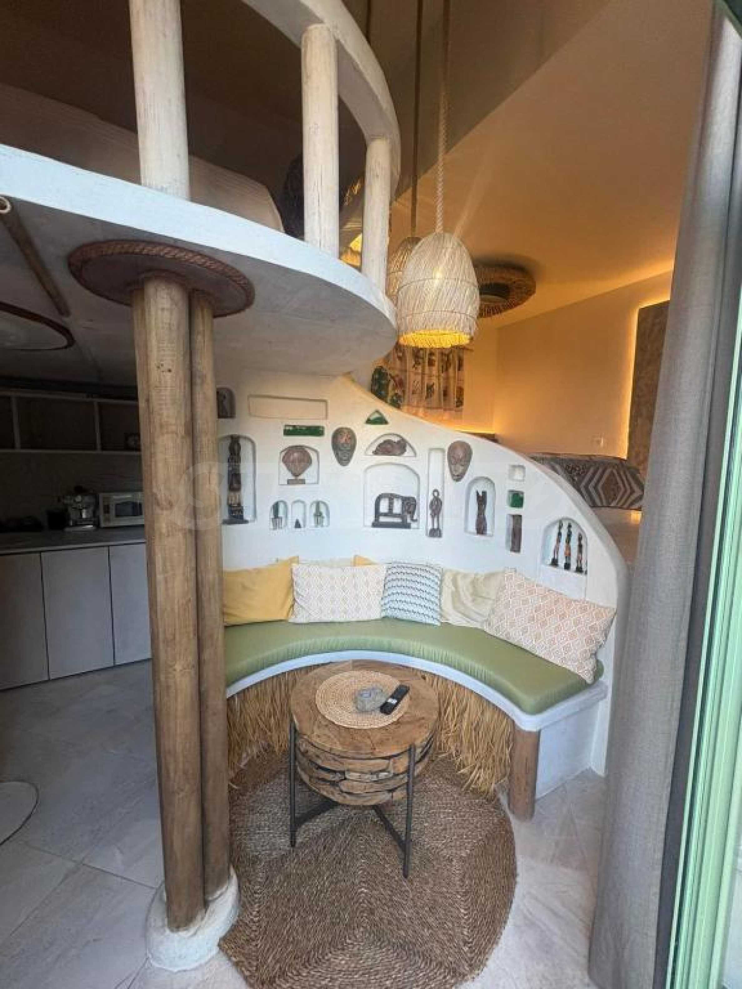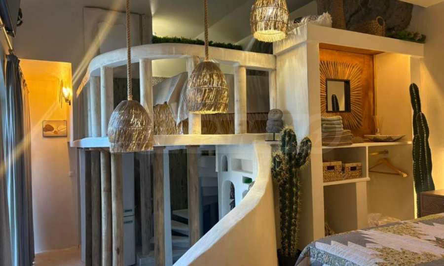 Представяме артистично студио под наем в стил бохо с две спални, разположено в 5-звездна морска резиденция, намираща се на първа линия в южната част на Бургаския залив, в гр. Черноморец.