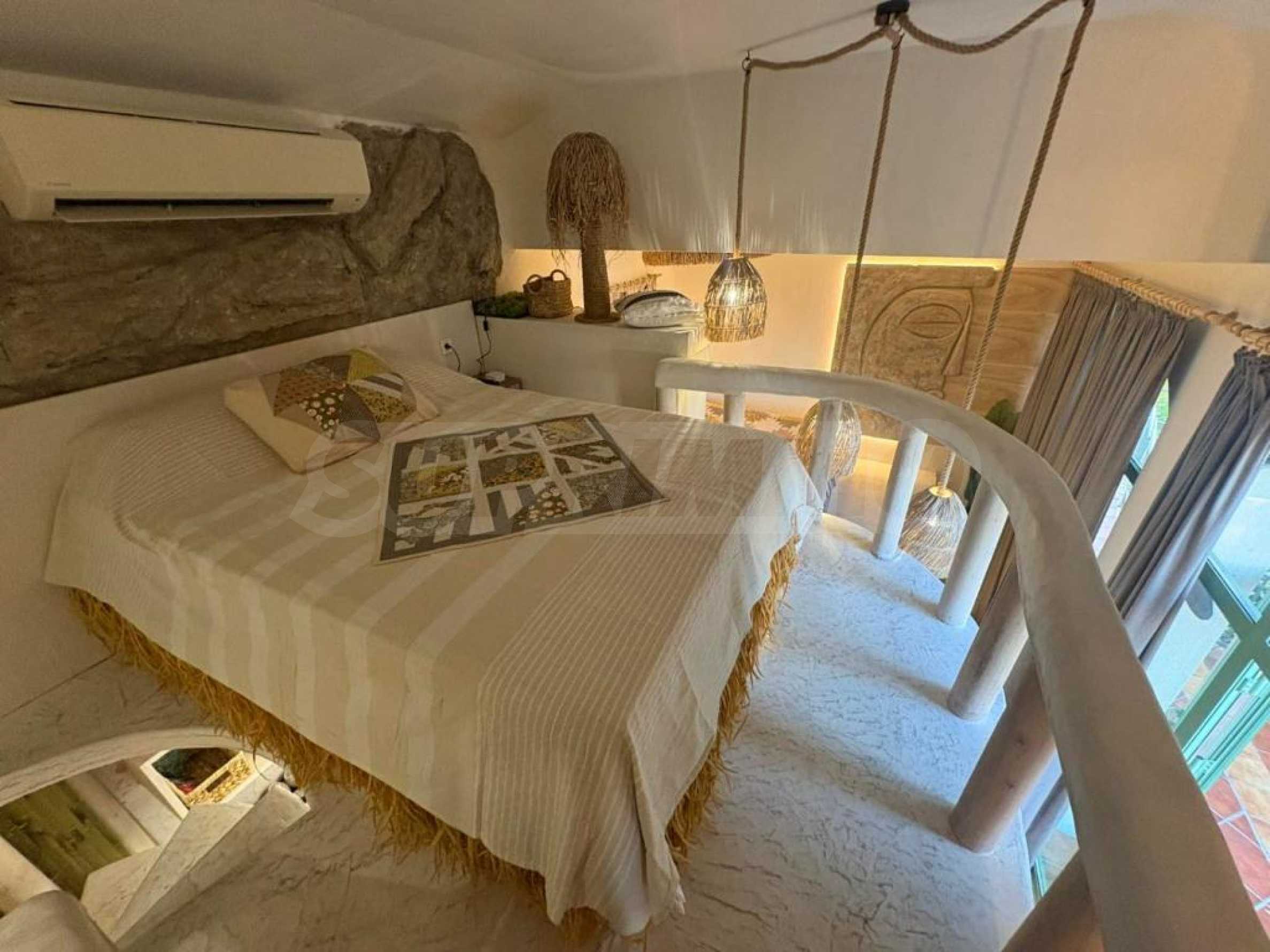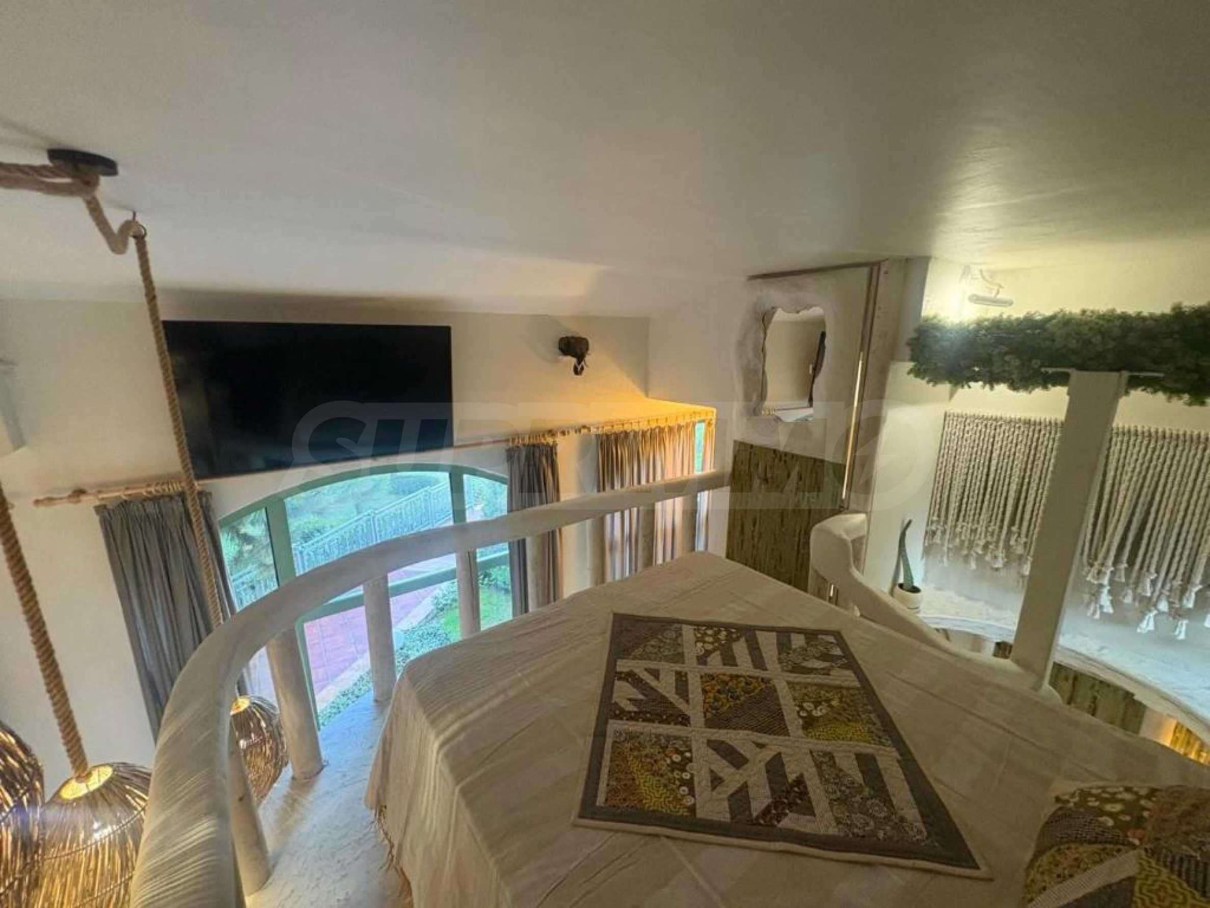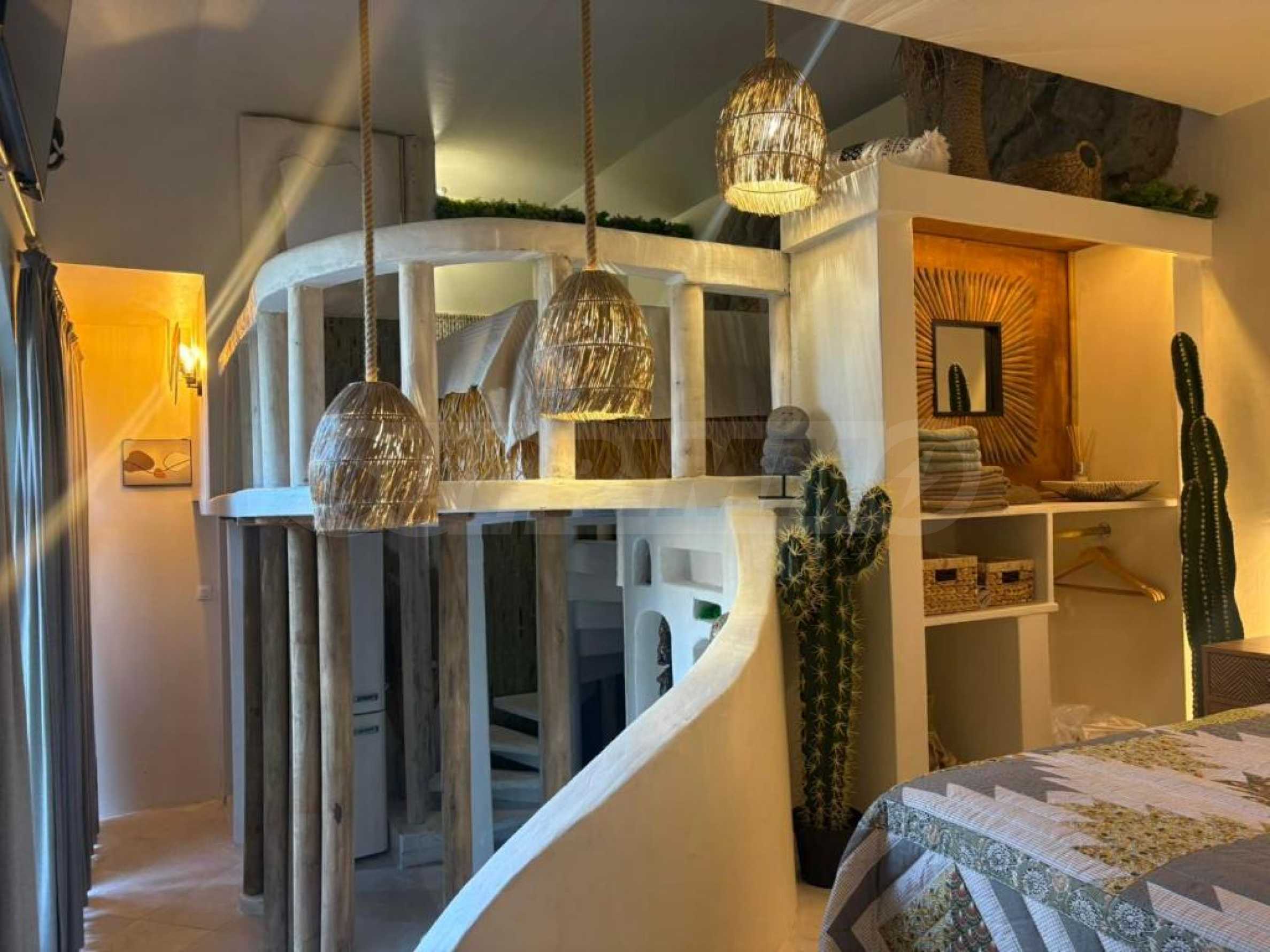 Представяме артистично студио под наем в стил бохо с две спални, разположено в 5-звездна морска резиденция, намираща се на първа линия в южната част на Бургаския залив, в гр. Черноморец.