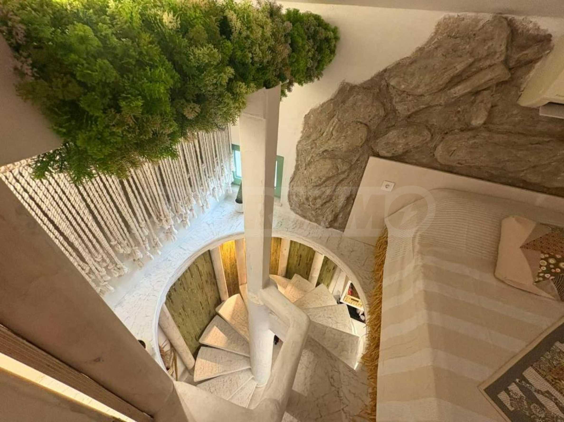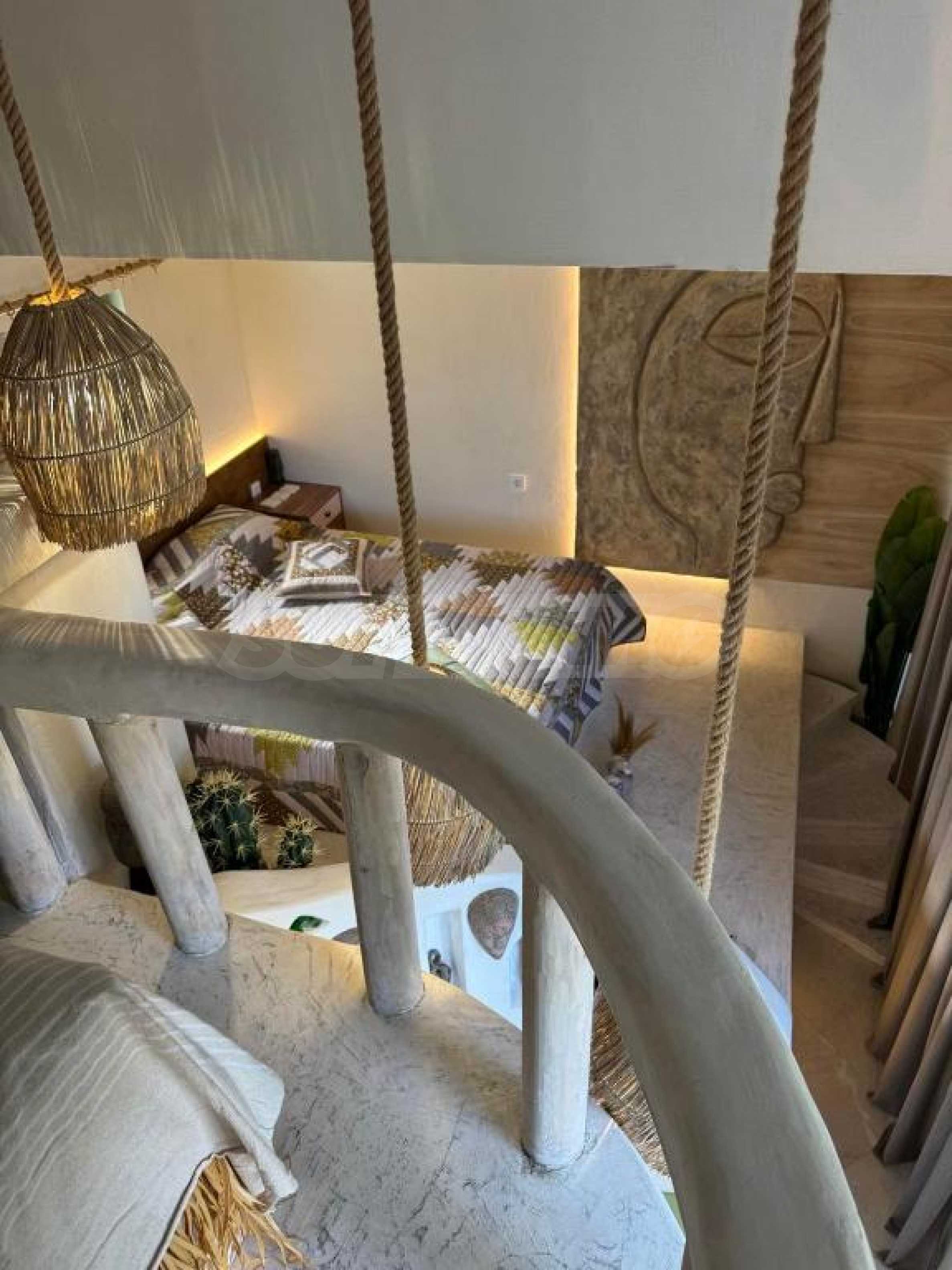 Апартаментът е нестандартно решен в едно пространство, функционално разпределен на две нива. Подходящ е за хора с нестандартно усещане за живота, желаещи да преживеят нещо различно.