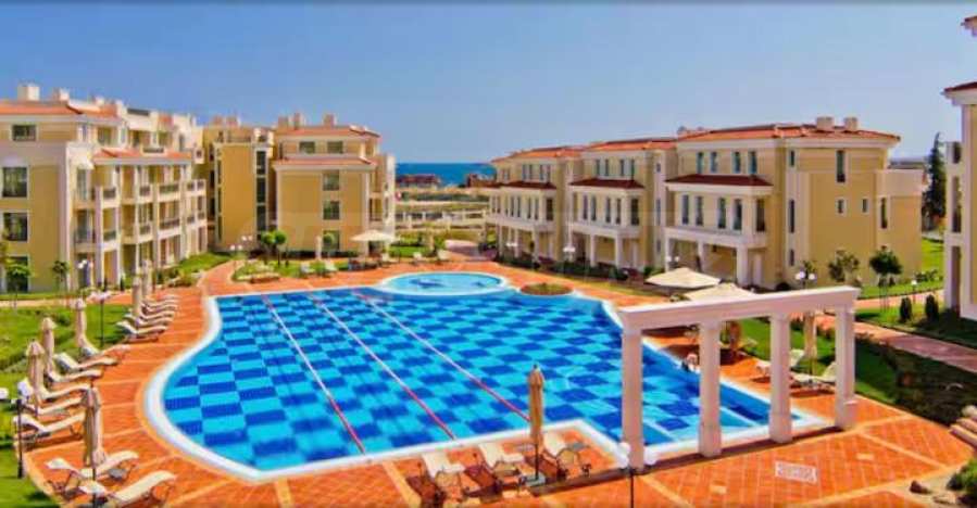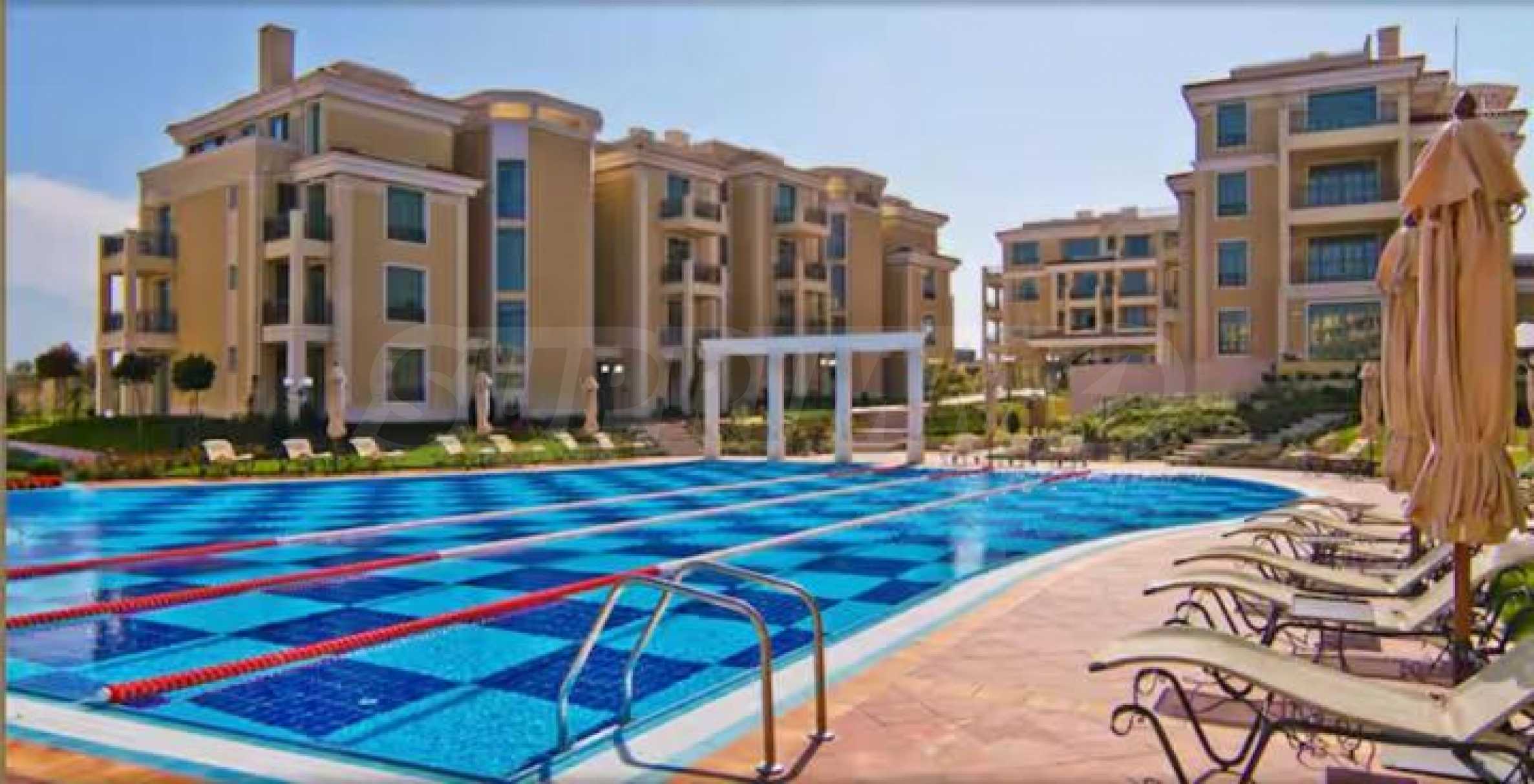 Имотът е ситуиран на 1-ви етаж с веранда и гледка към басейна на комплекса.