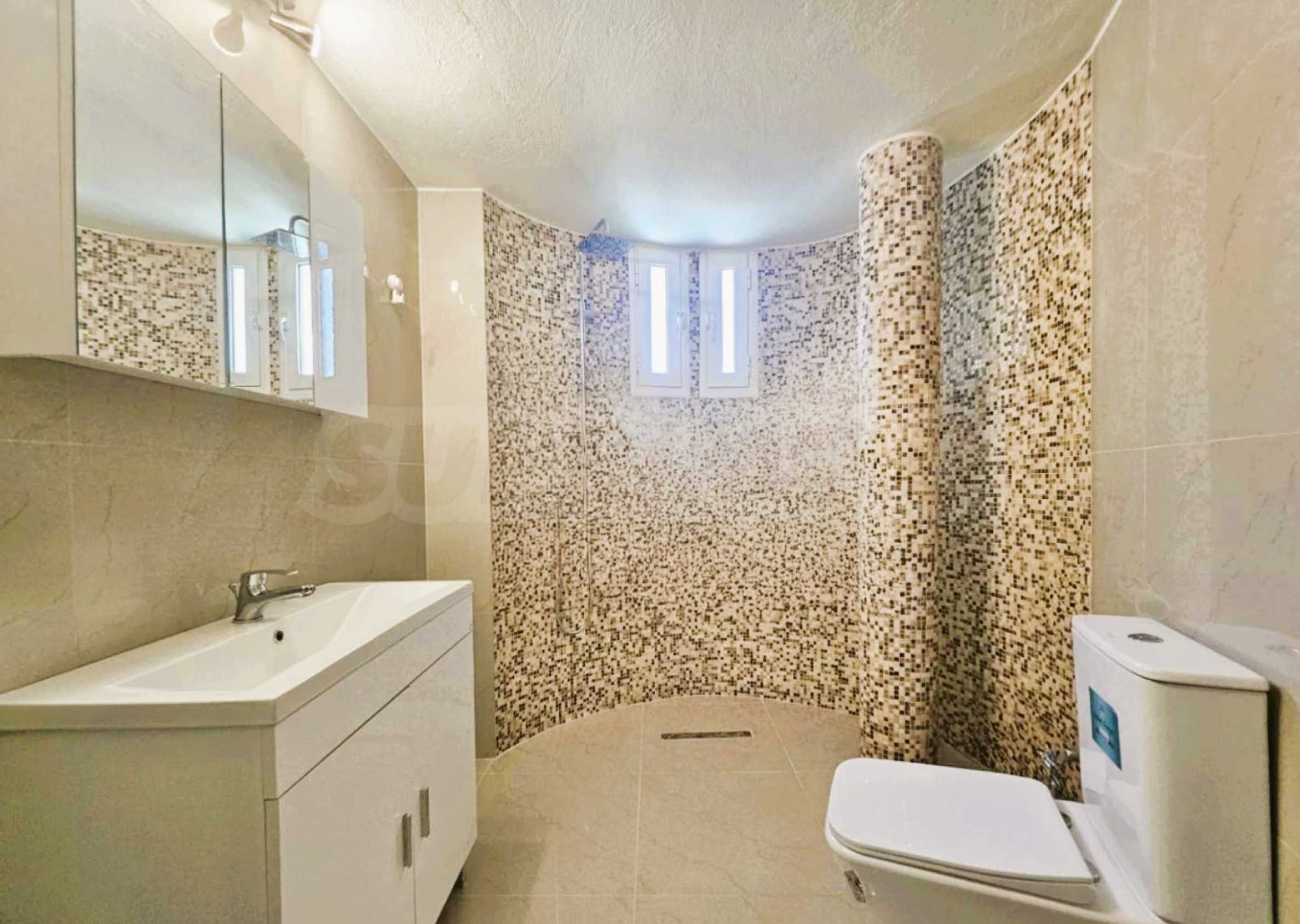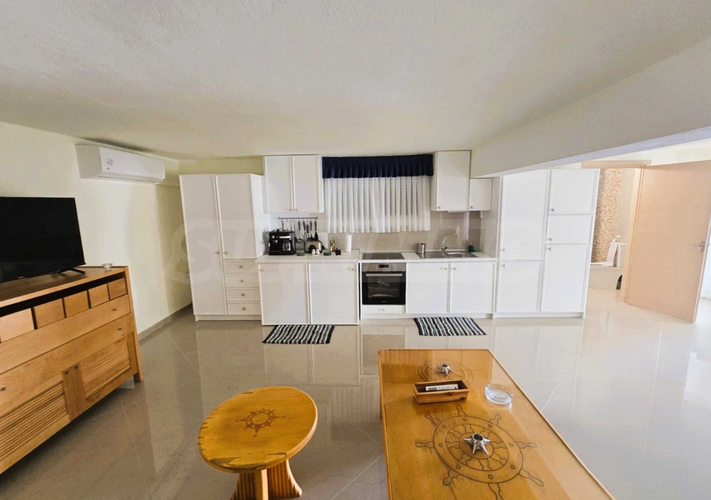 Разпределението на две нива, всяко като самостоятелен апартамент, предлага общо 4 спални, 2 дневни, 2 кухни и 2 бани – перфектно за настаняване на две семейства или гости с максимален комфорт.