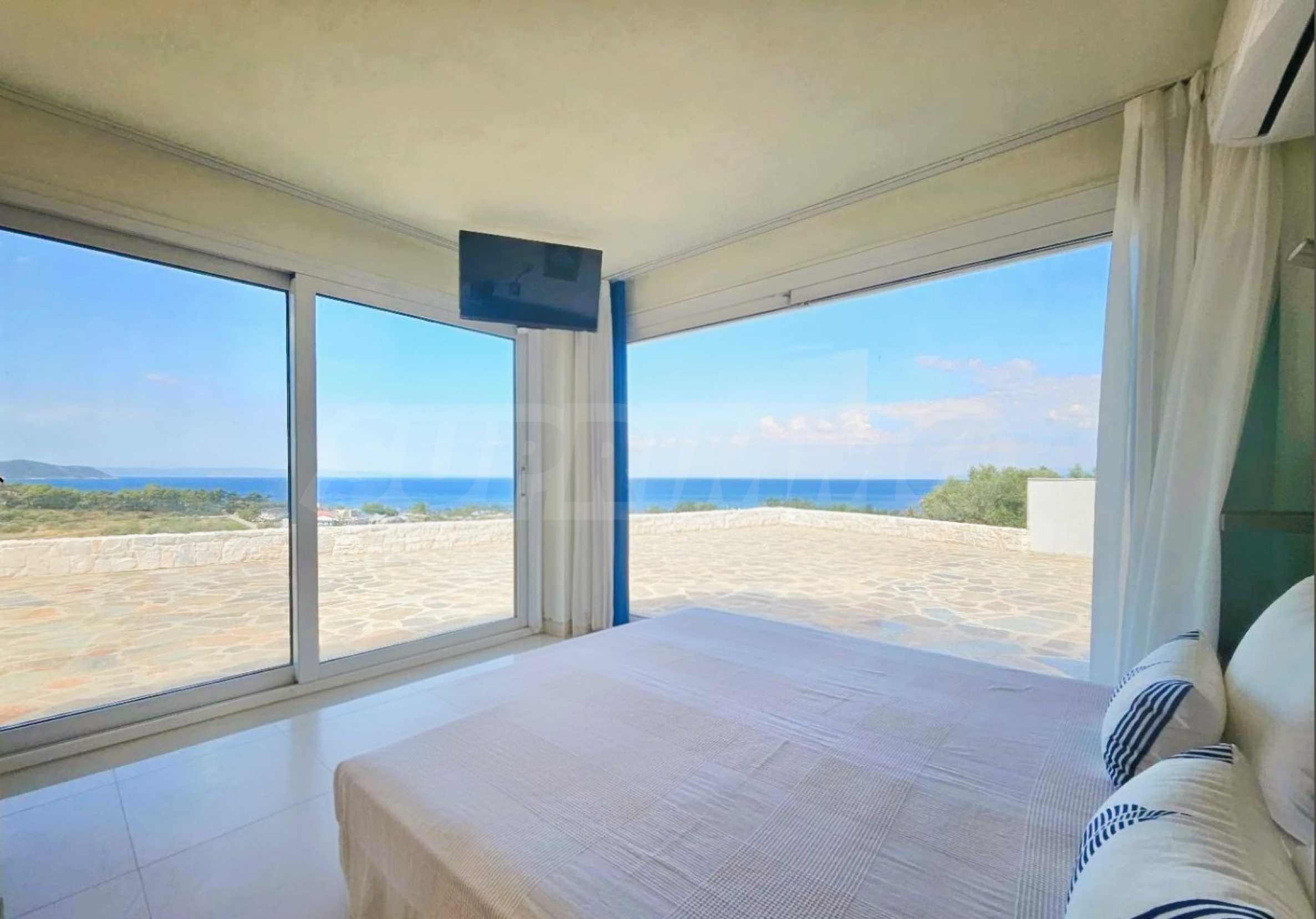 Всяка стая и тераса предлага безпрепятствена панорамна гледка към сините води на Егейско море.