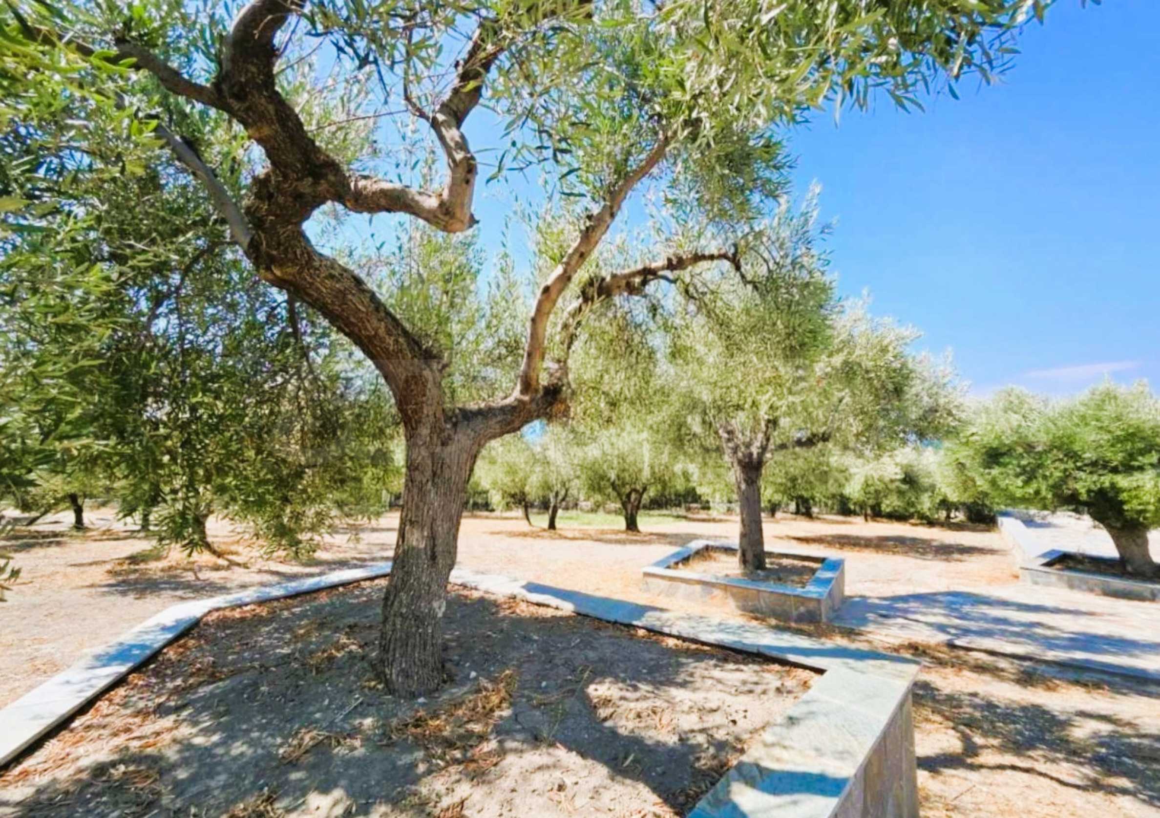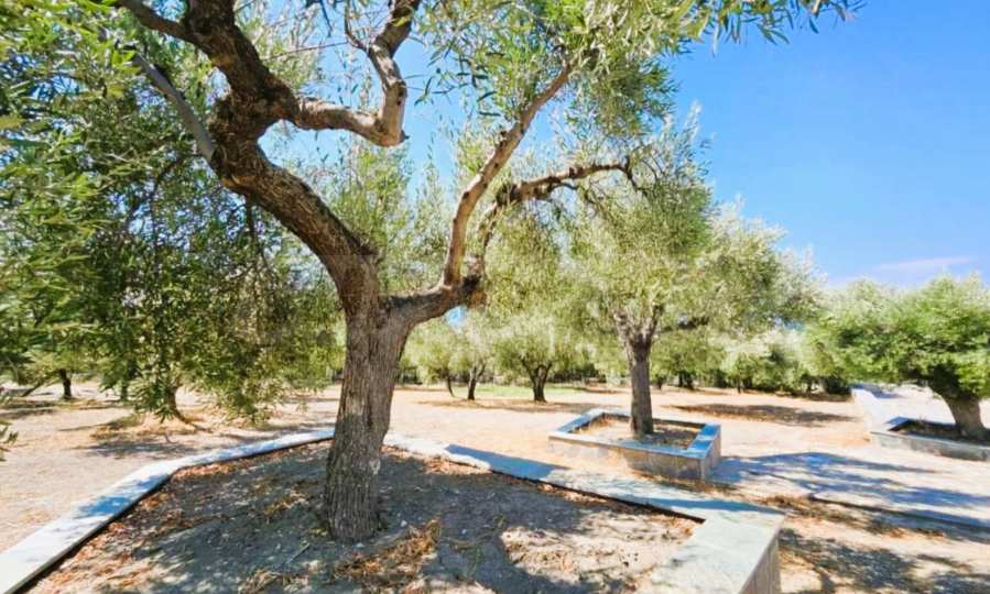 Огромният парцел (3,4 дка) е идеален за ландшафтен дизайн, BBQ зона, детски кът или просто спокойна почивка под сянката на маслиновите дръвчета.