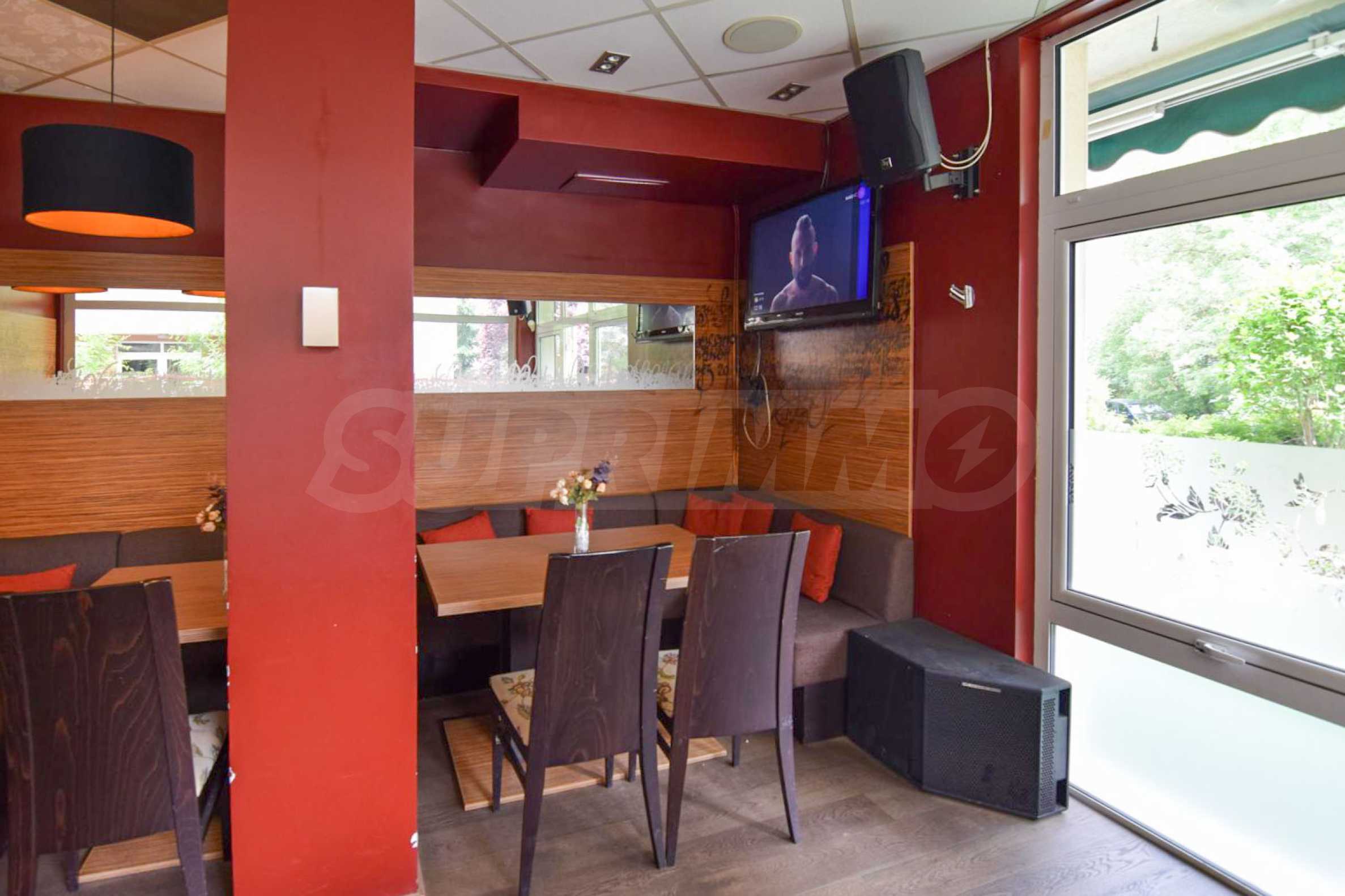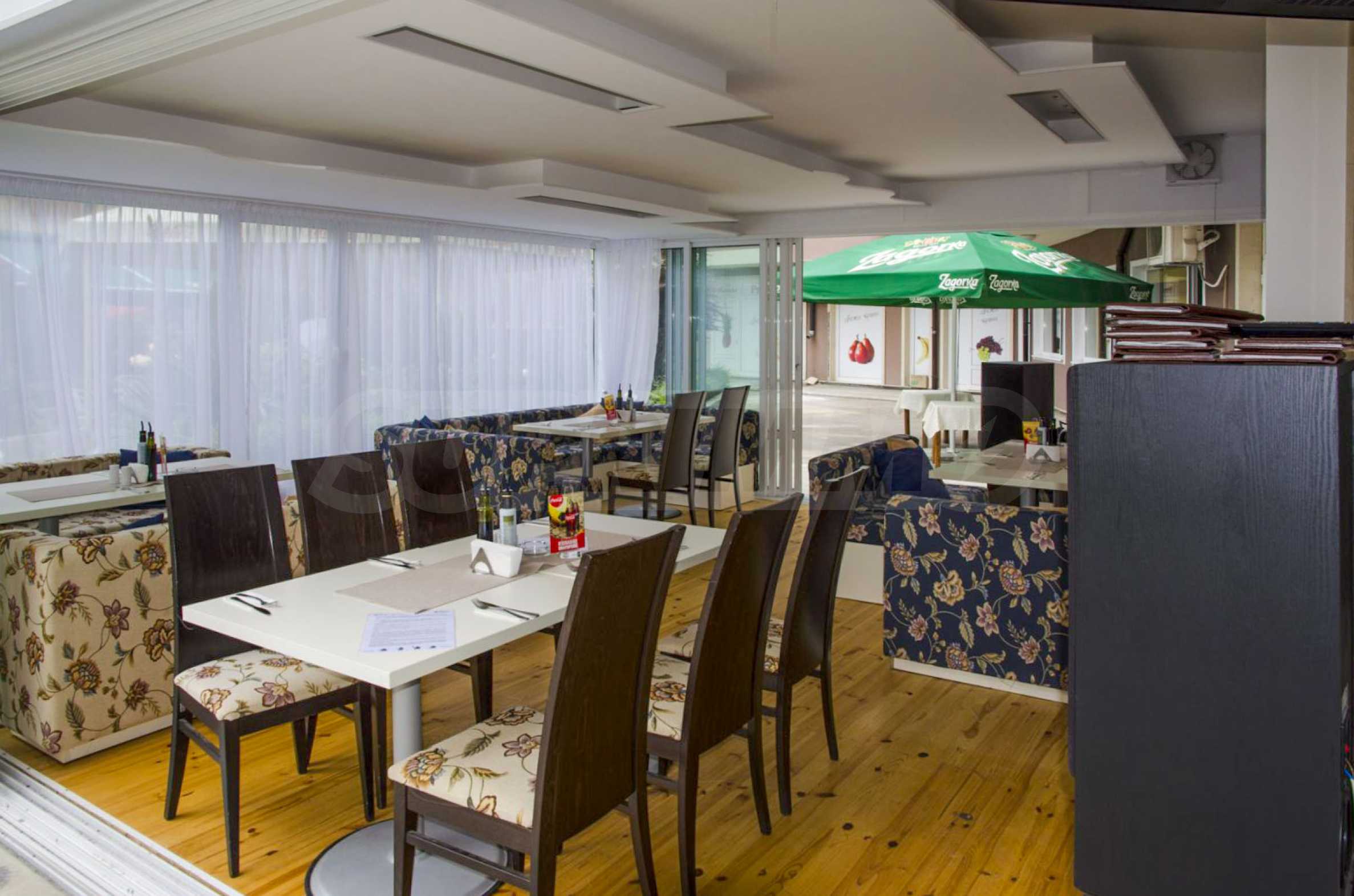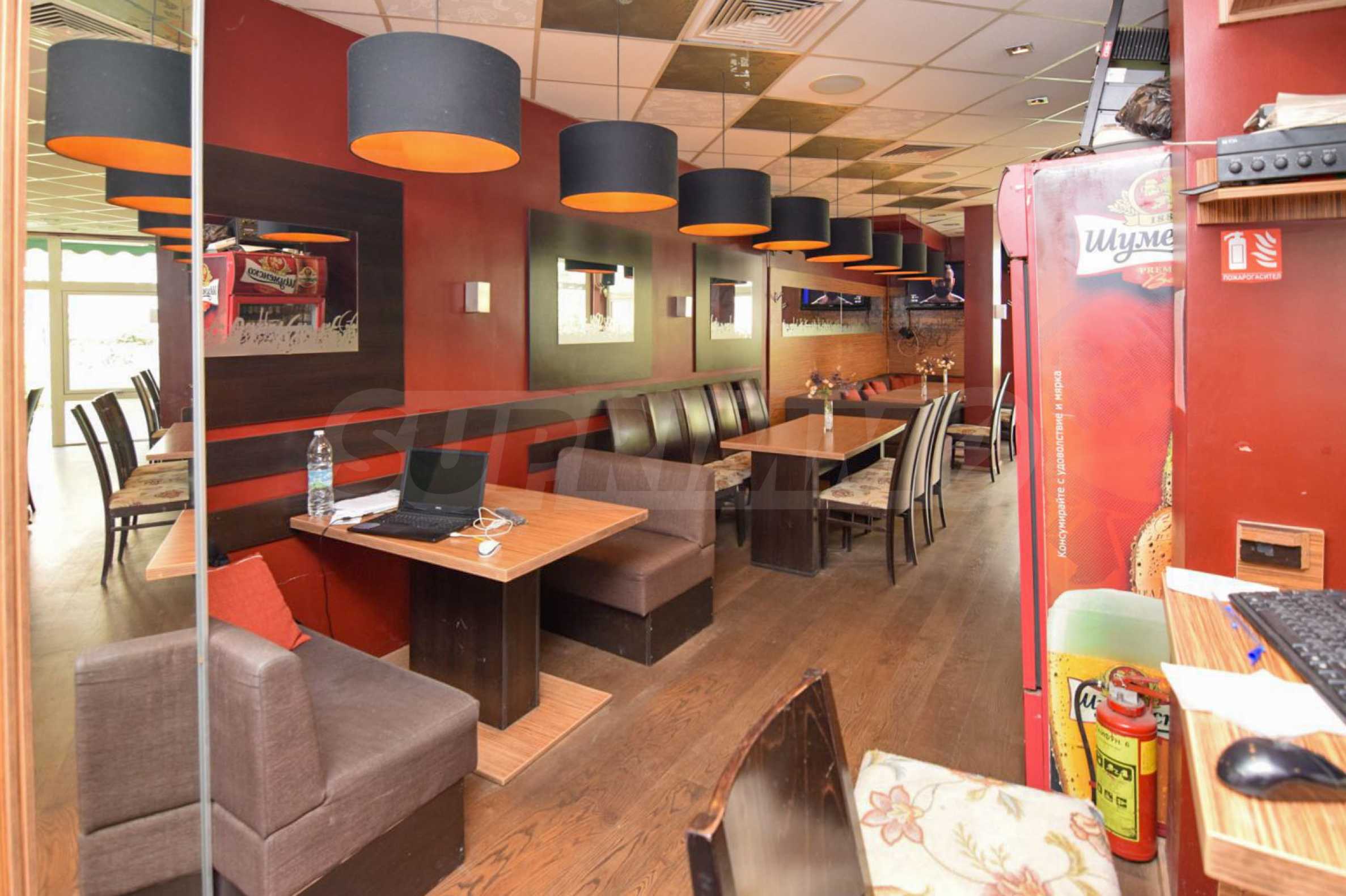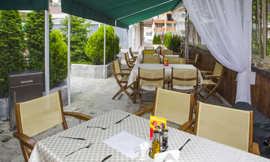 - Бар и вътрешна зала с приятна атмосфера и възможност за различни интериорни решения, както и покрита тераса с перготента, включена в квадратурата, осигуряваща комфорт за клиентите през всички сезони с общ капацитет от 70 човека.