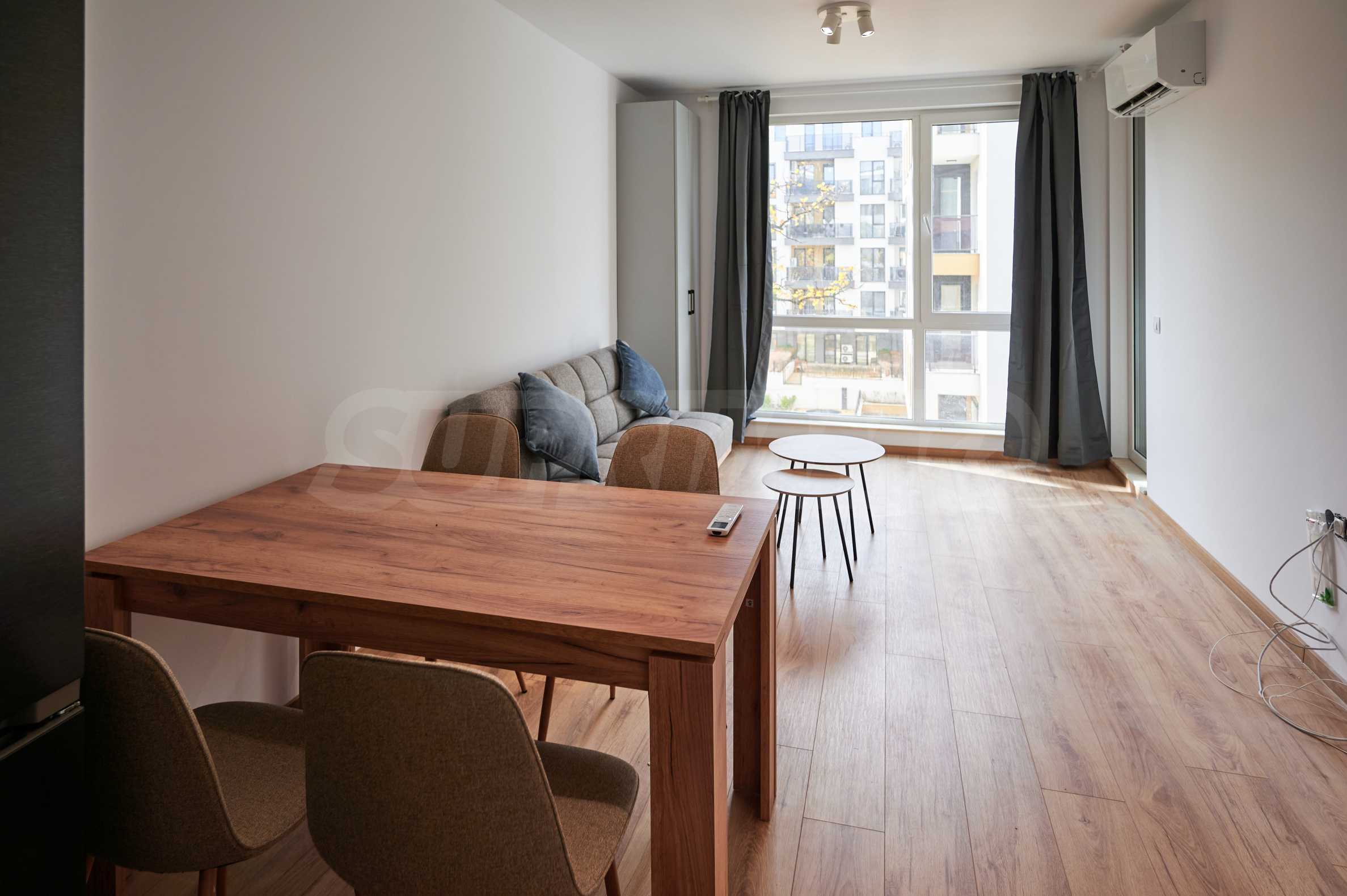 Представяме модерно и уютно обзаведен двустаен апартамент под наем в нова сграда, част от модерен комплекс на удобна локация в кв. "Малинова долина".