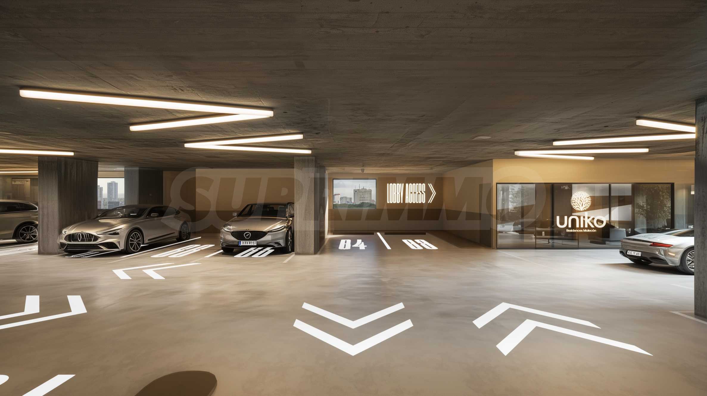 На разположение е както паркинг за резидентите, който да покрива целия капацитет на сградата, така и специално обособена зона за паркиране за гости и посетители, така че всички да се чувстват комфортно в нея. Предвидени са и станции за зареждане на електроавтомобили.