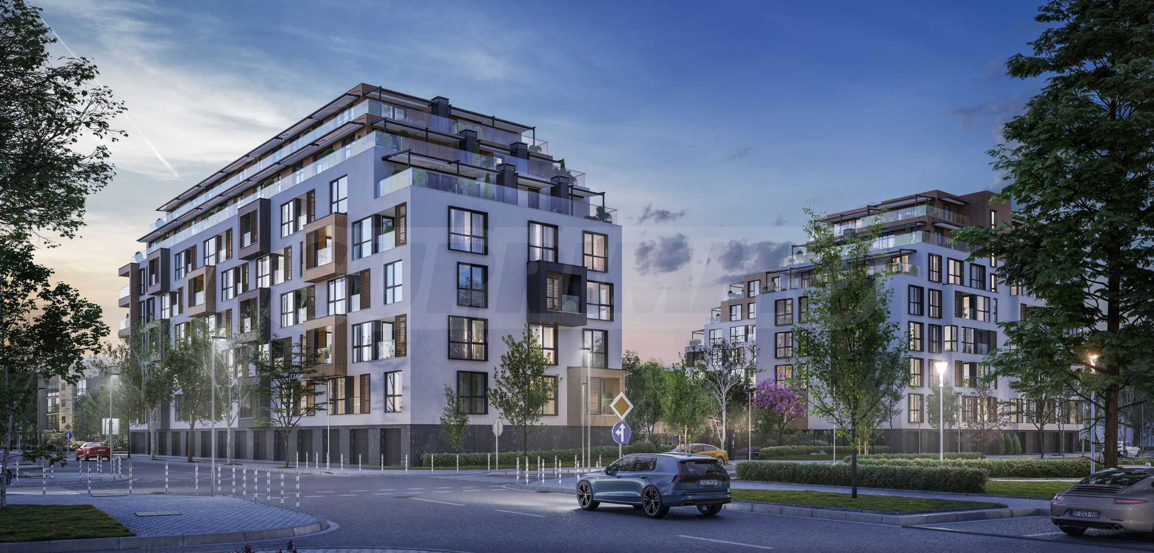 Комплексът впечатлява със своята архитектура – модерна линия, подчертана с натурални тонове, индивидуални фасадни акценти и стъпаловидни тераси. Проектът включва две жилищни сгради с по седем етажа, широки общи площи и представителни фоайета с височина 6 м, които добавят усещане за престиж и простор още при входа.