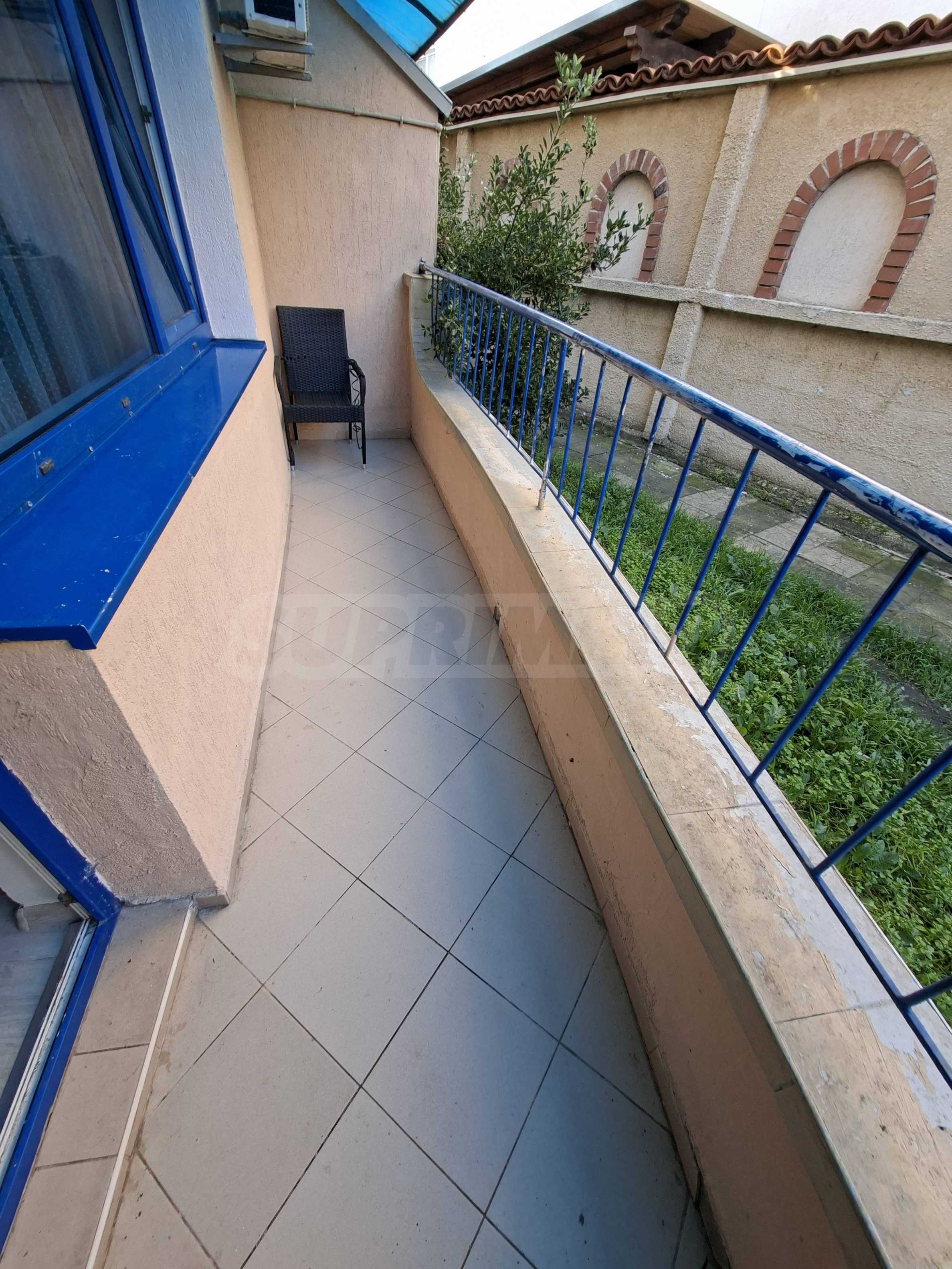 Имотът е с обща площ от 45.99 кв.м, разположен на 1-ви етаж и разполага с антре, кухня, спален кът, оборудвана баня и тераса към външния двор на комплекса.