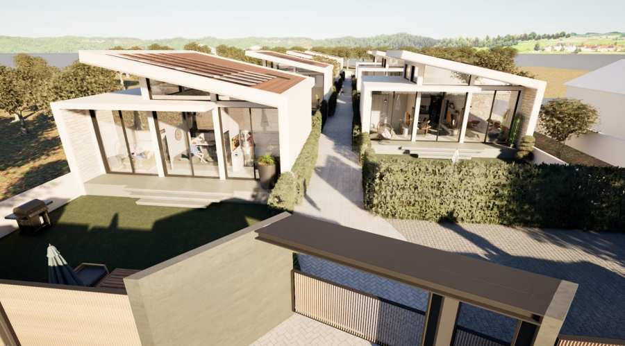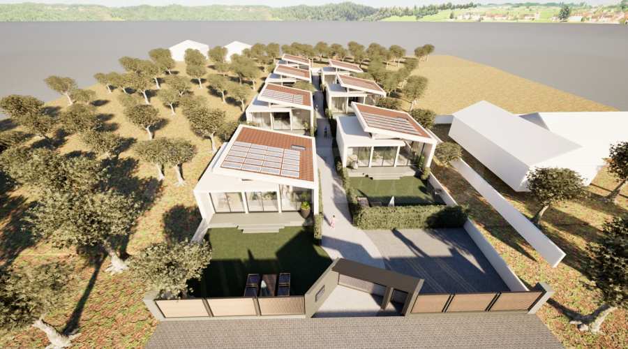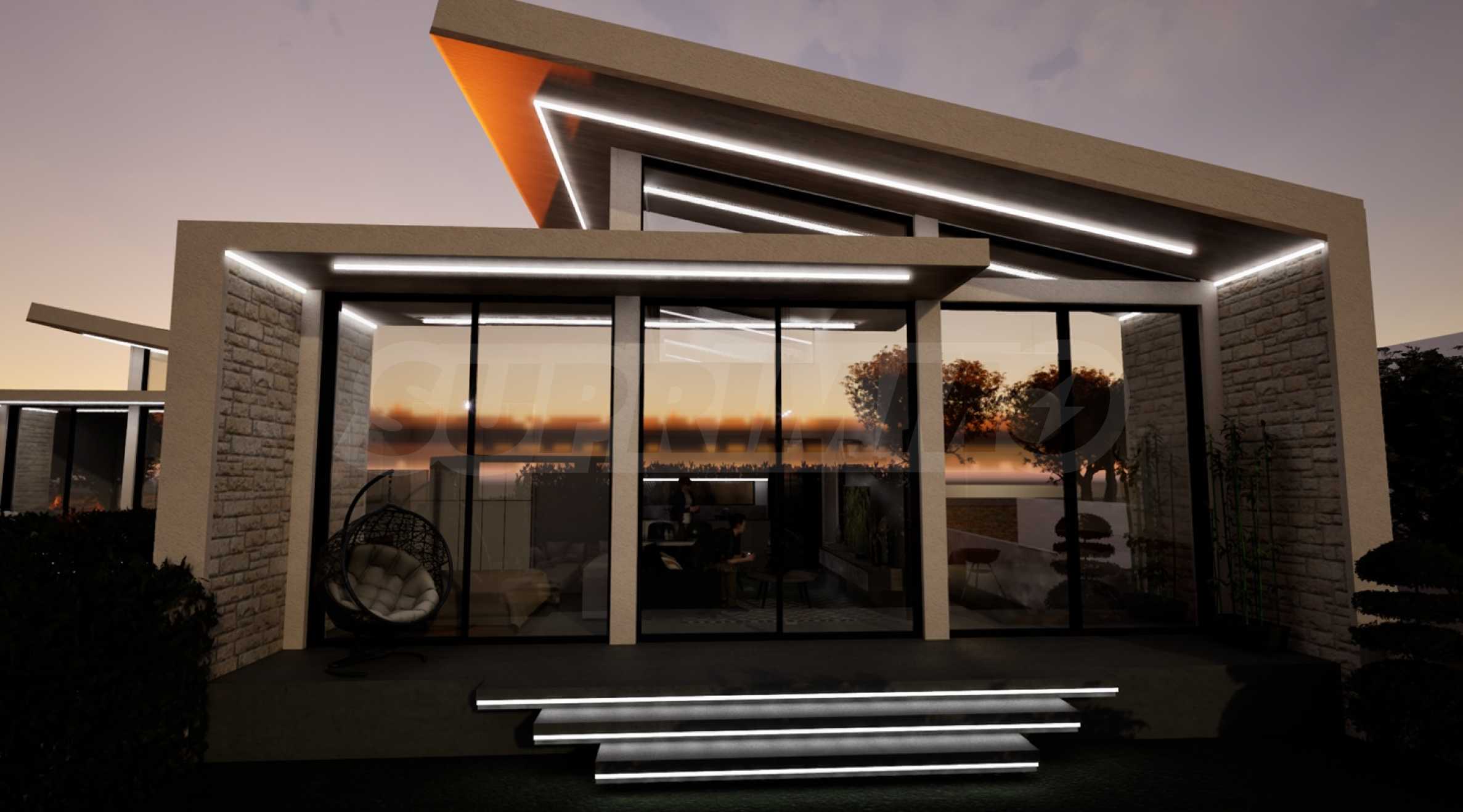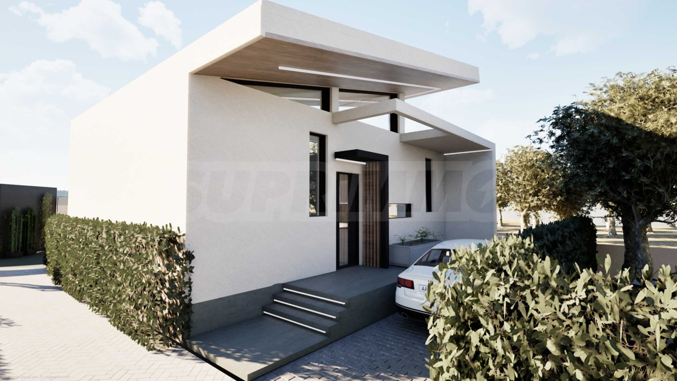 Парцелът, върху който ще бъдат построени седемте самостоятелни къщи, се намира на 150 метра от морето и е с директен до плажа.