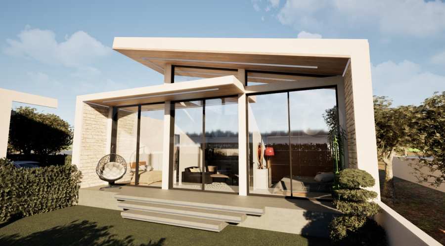 с абсолютното спокойствие. Тази минималистична самостоятелна къща от 60 кв.м е проектирана да предложи несравнимо жилищно изживяване, съчетаващо лукса с непринудеността.