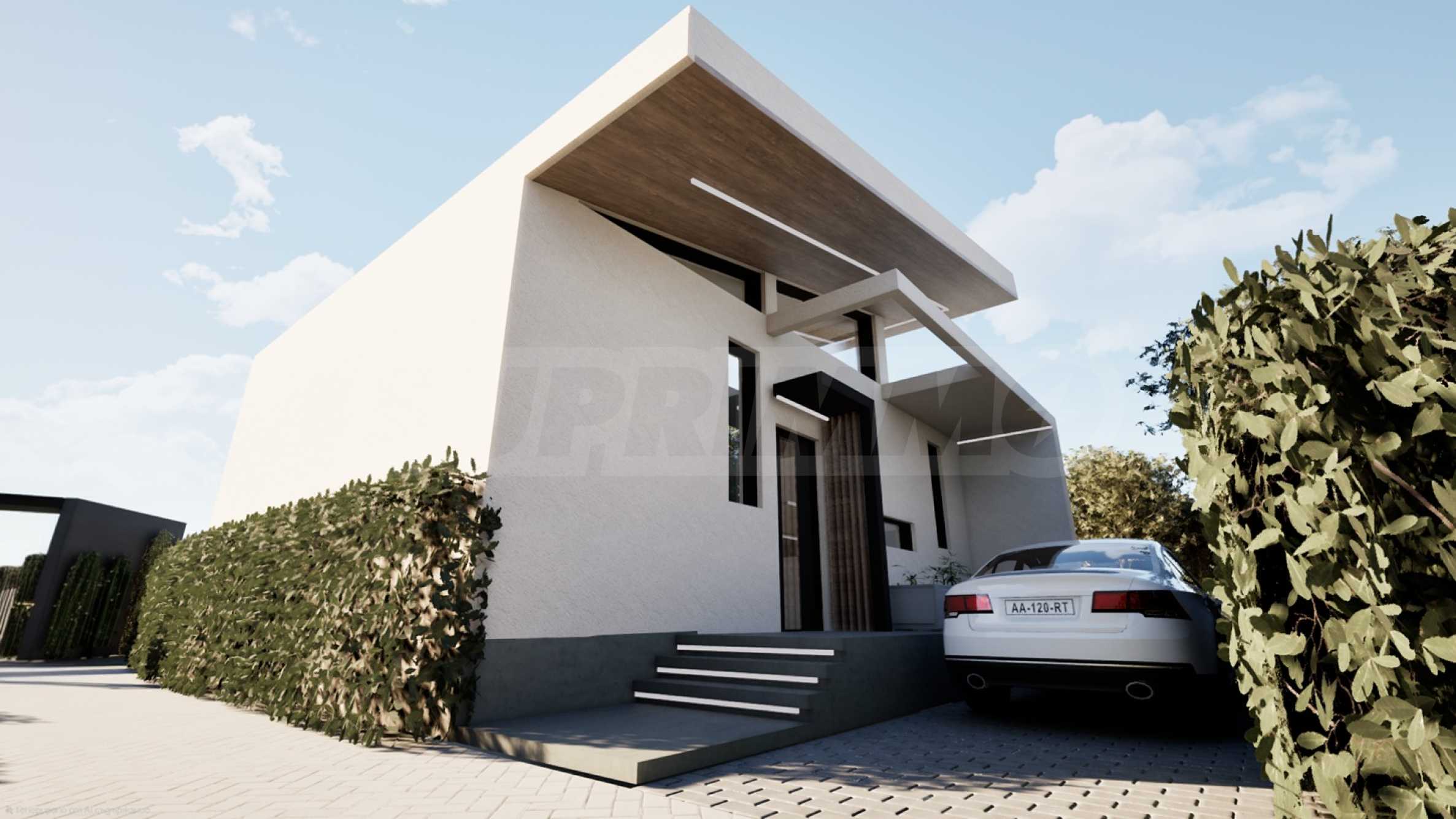 Парцелът, върху който ще бъдат построени седемте самостоятелни къщи, се намира на 150 метра от морето и е с директен до плажа.