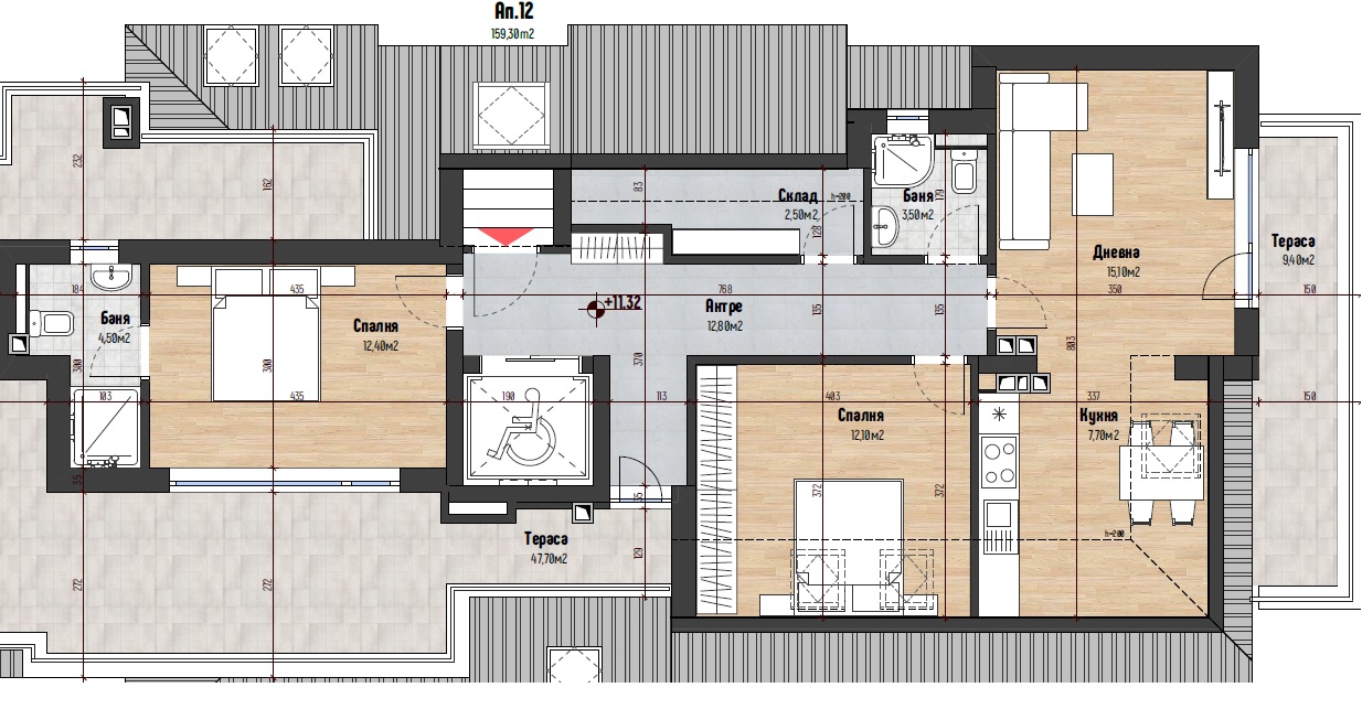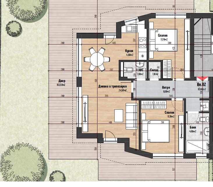 •Площ на най-малкия свободен апартамент: 95.89 кв.м;