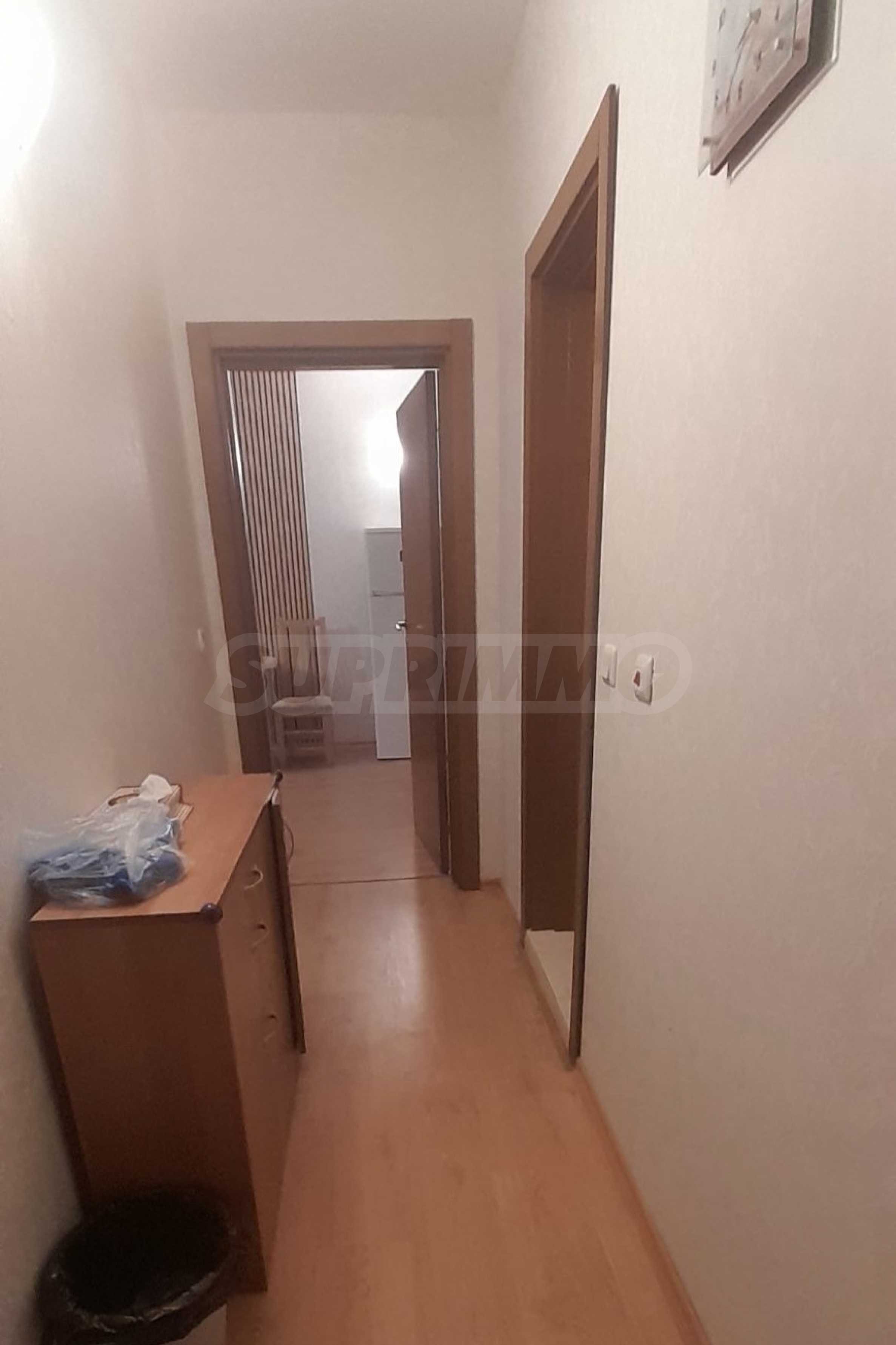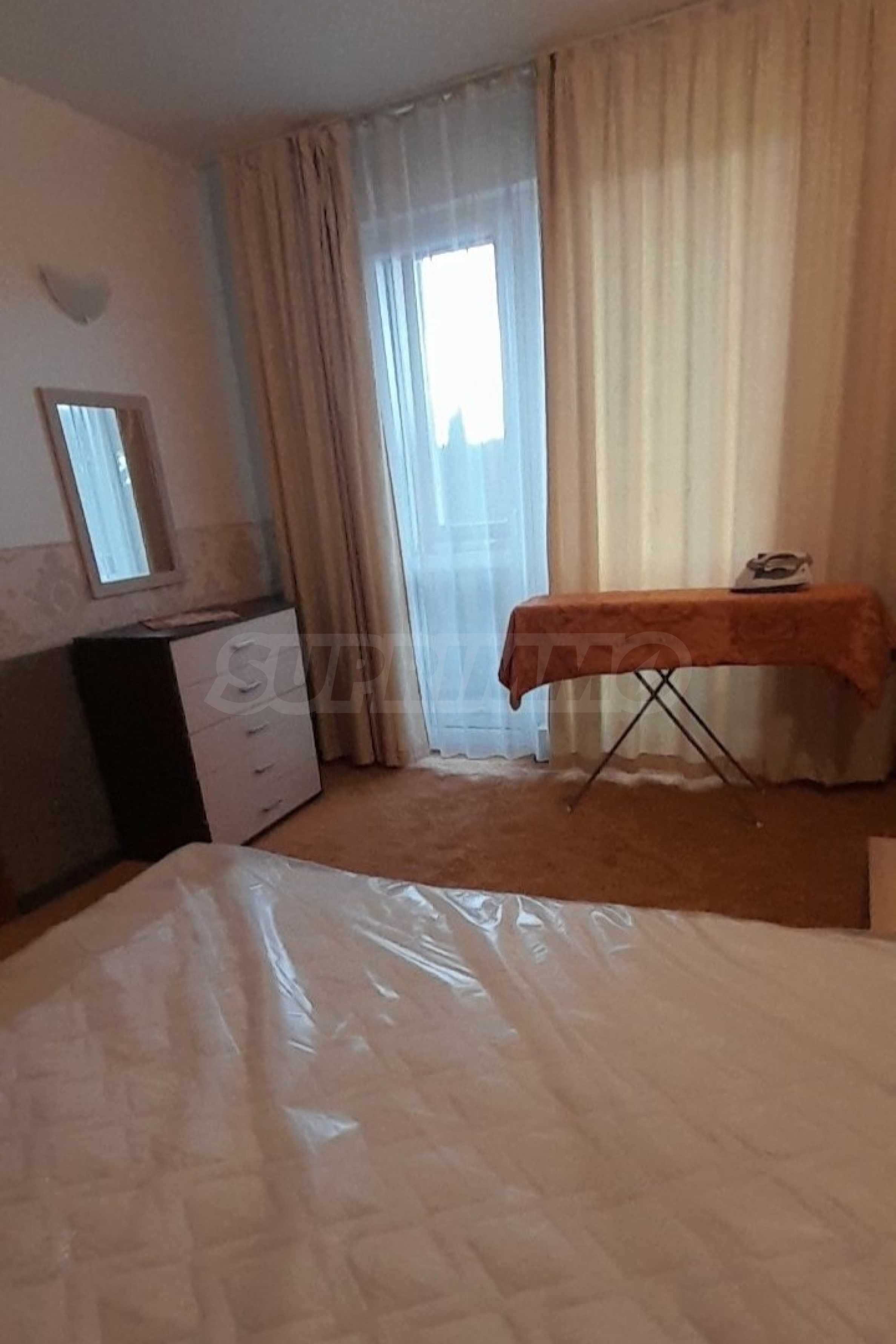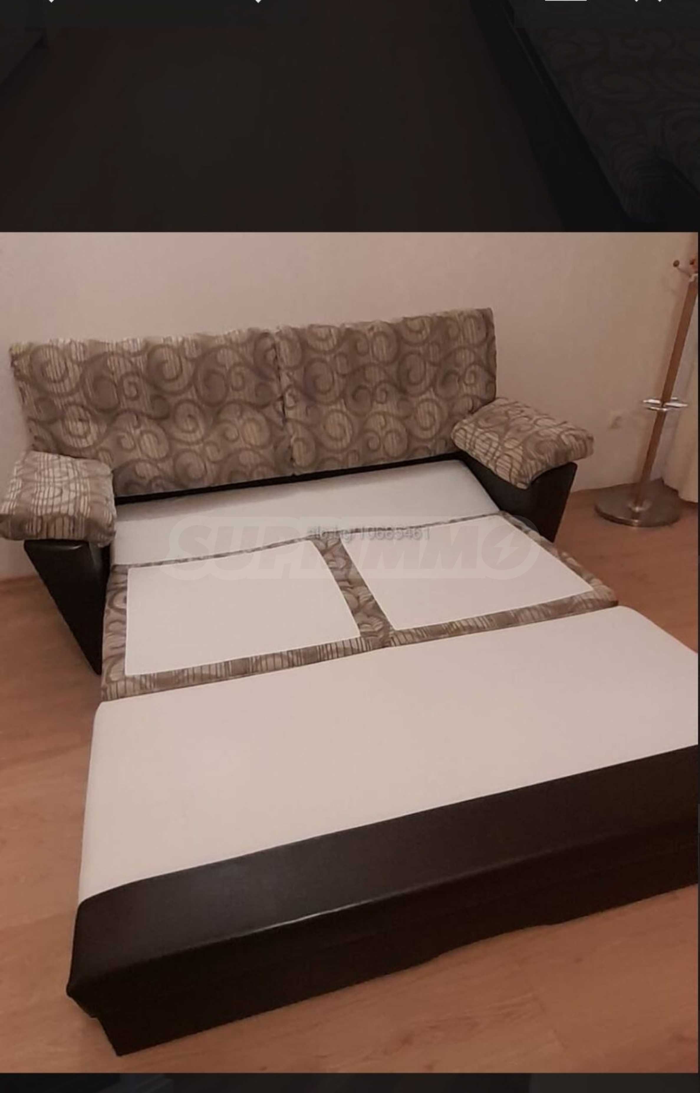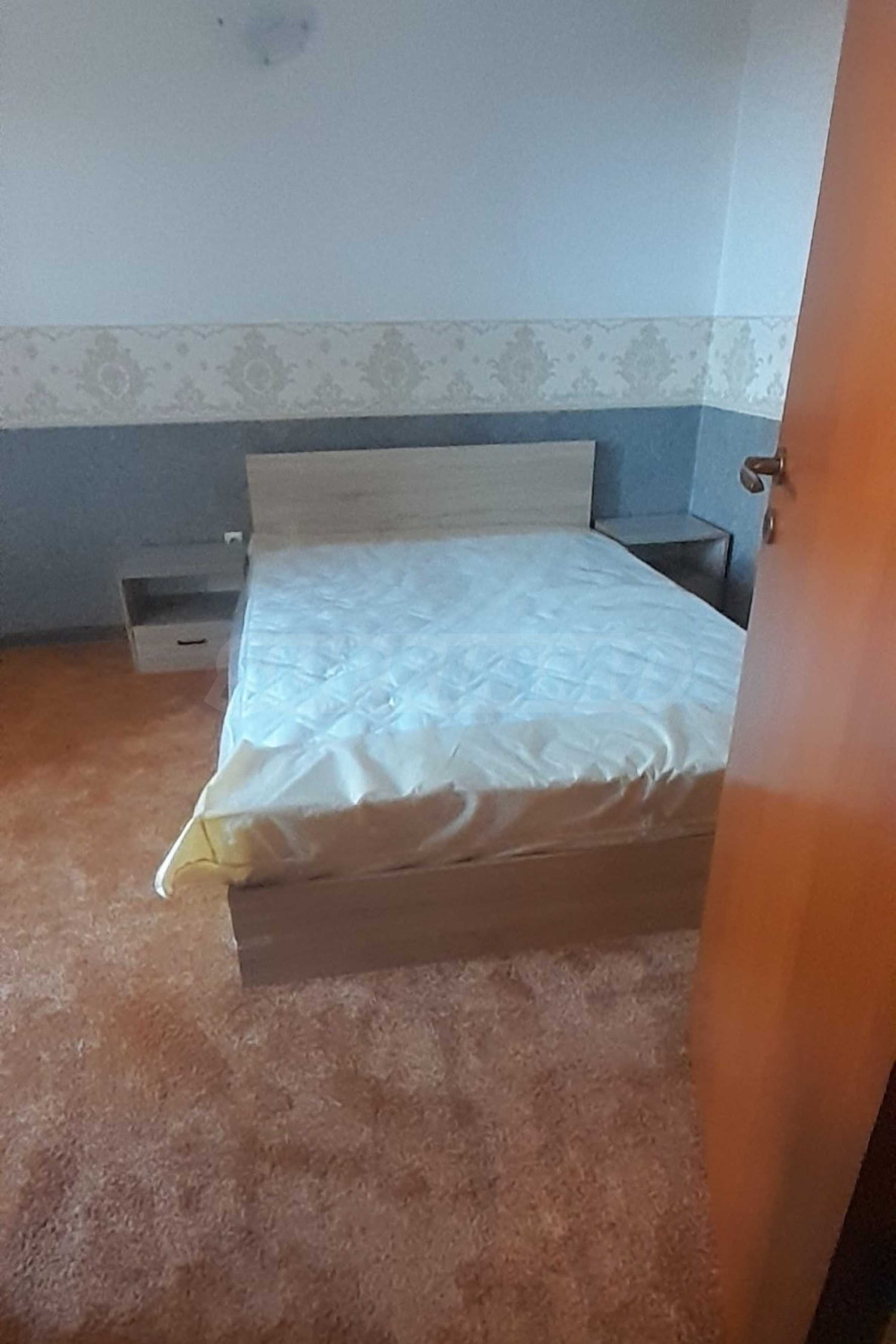 • спалнята е обзаведена с нови мебели и удобен матрак, а подовите настилки са ламиниран паркет в хола и коридора и мокет в спалнята;