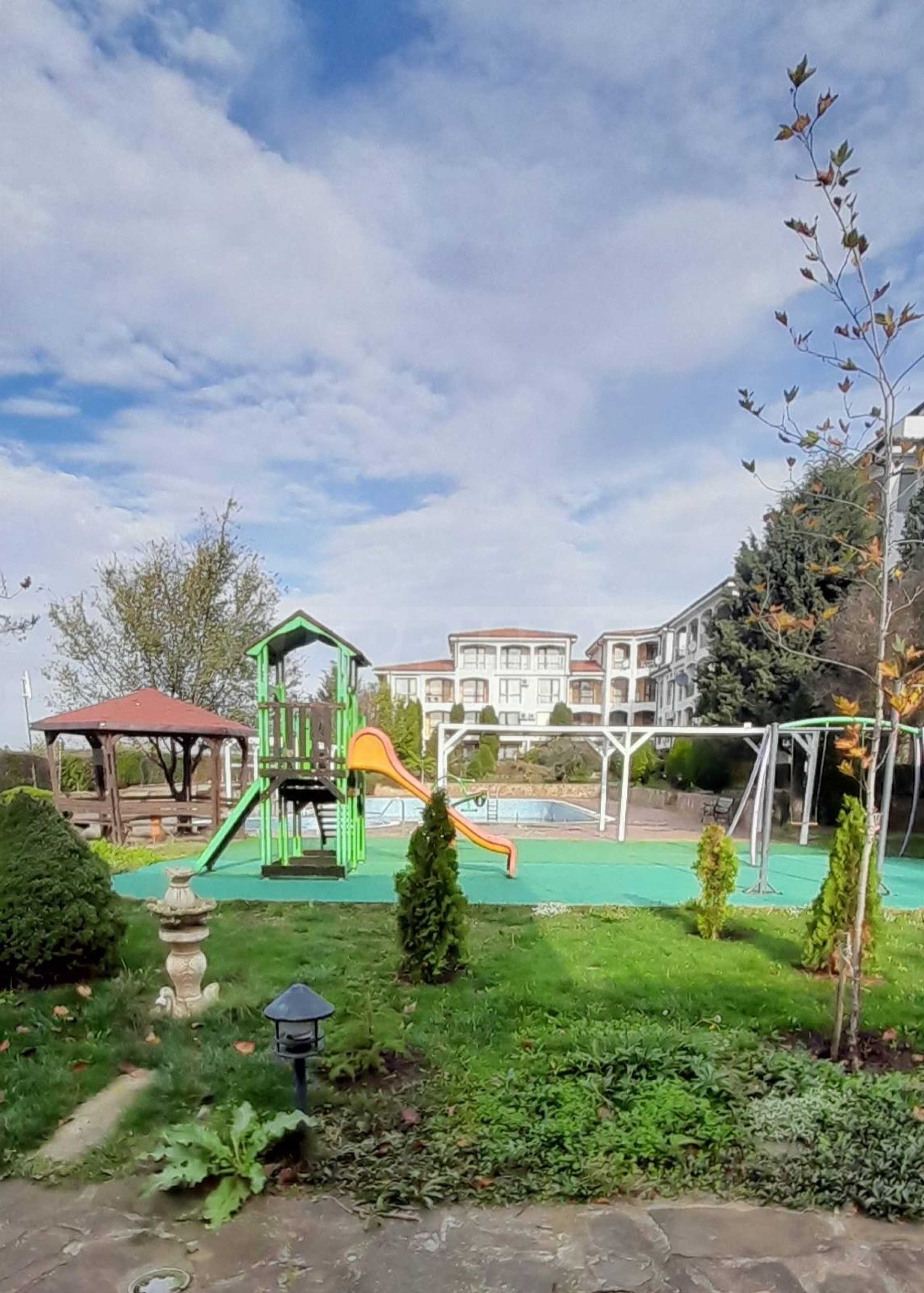 Представяме за продажба двустаен апартамент в затворен комплекс в тих и спокоен район, на 350 метра от морето в Равда.
