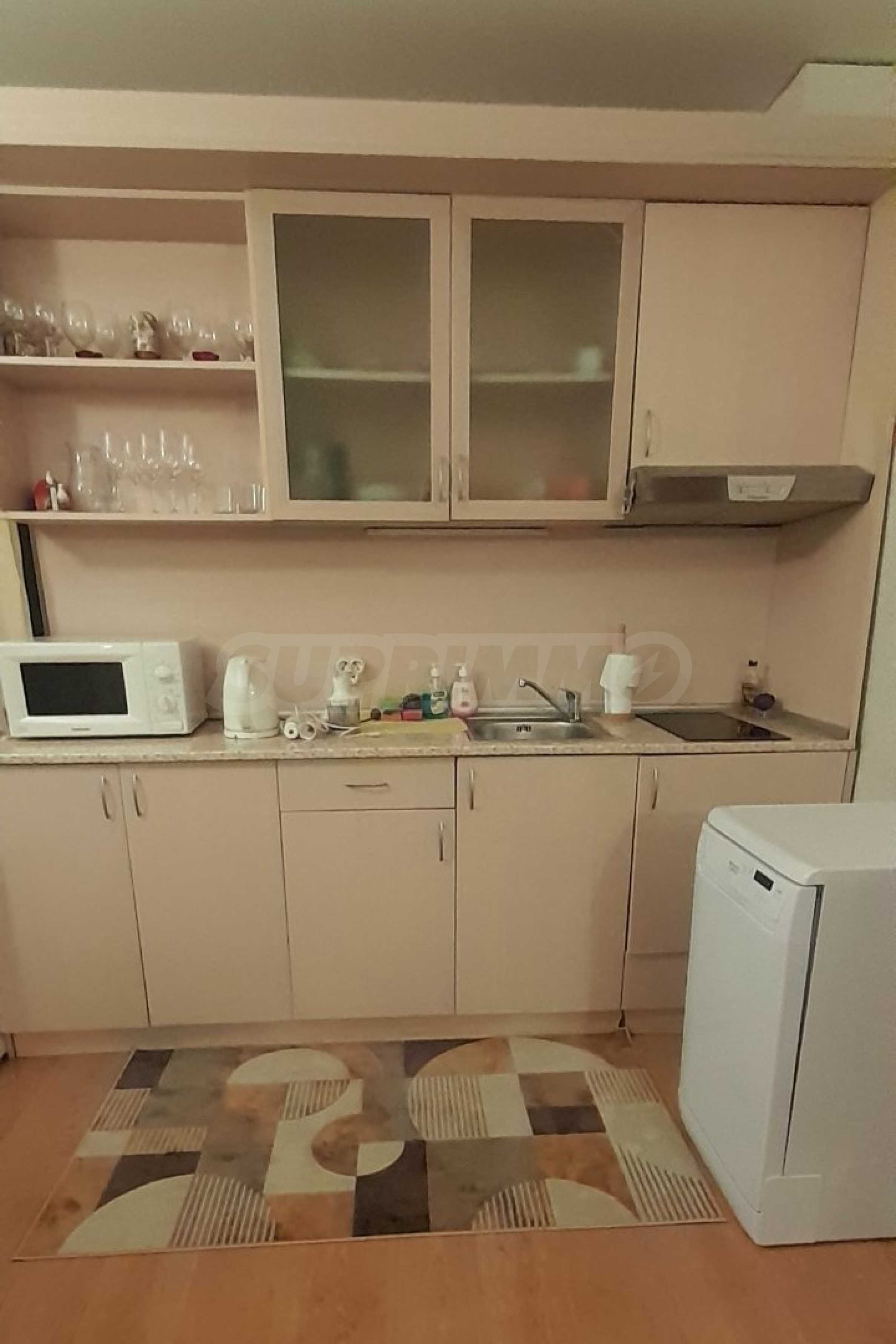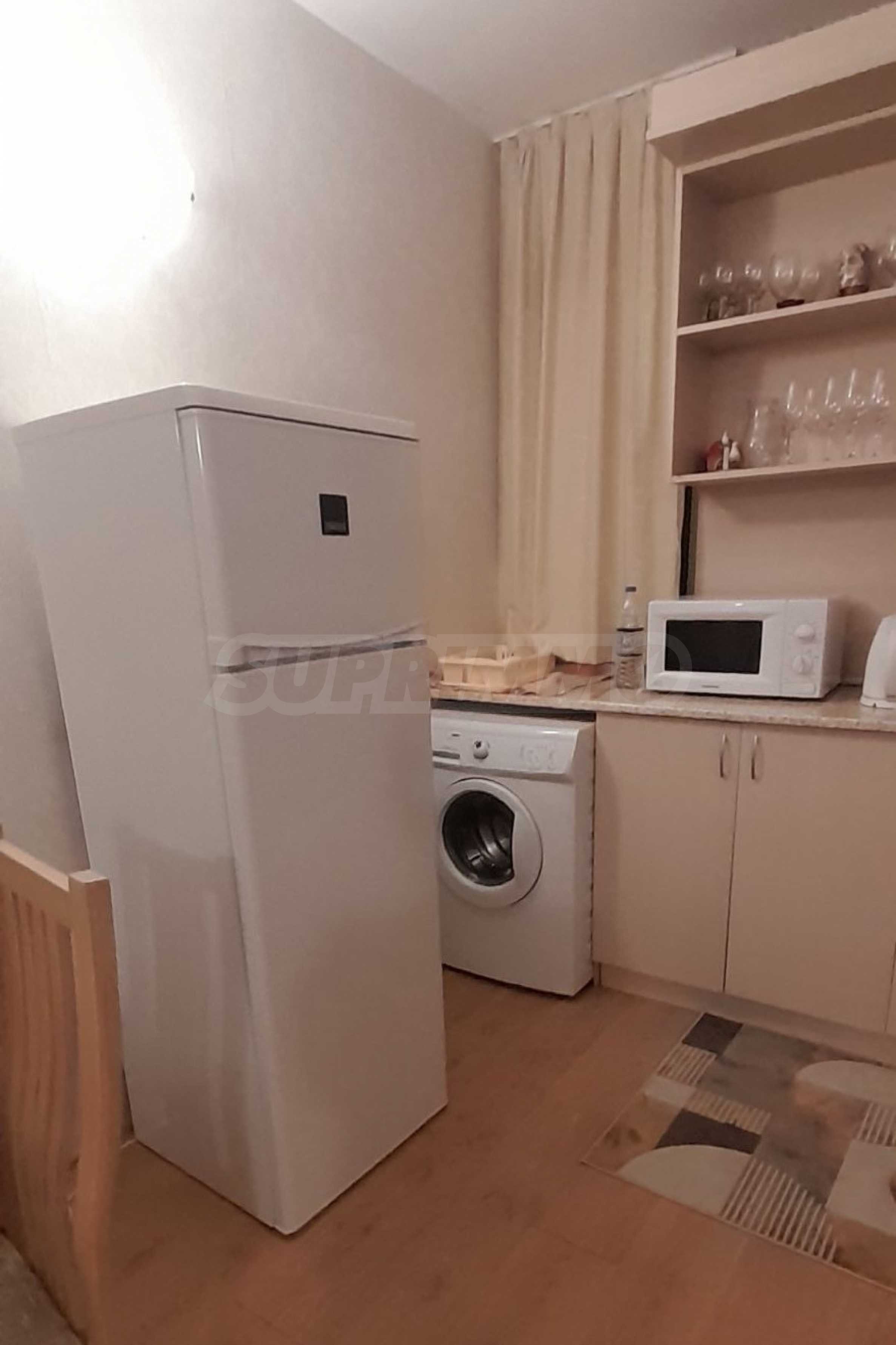 • кухнята е оборудвана със съдомиялна, пералня, два хладилника, микровълнова, два индукционни котлона и всички необходими уреди, които са в отлично състояние;