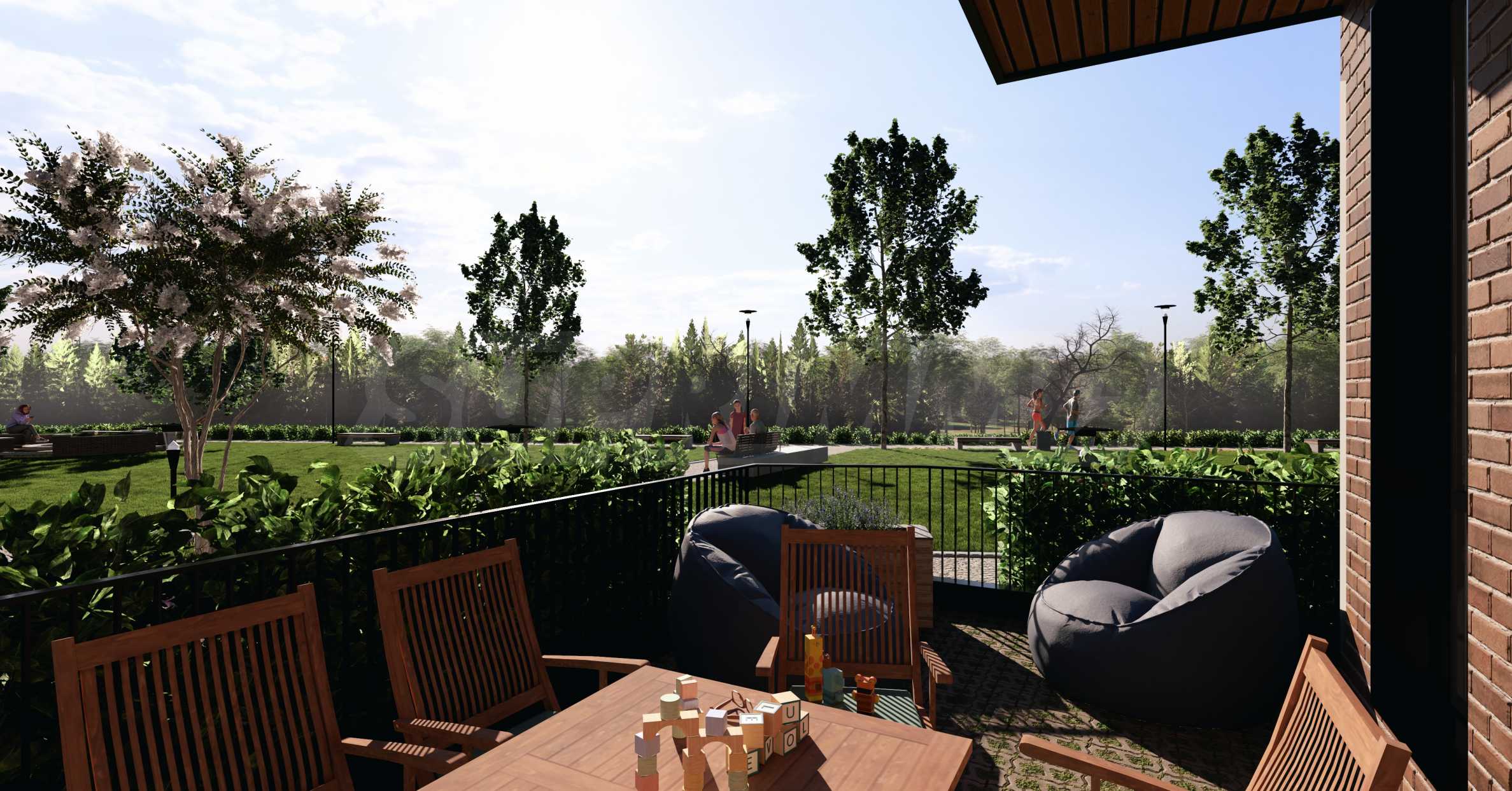 Общите части на сградите и входните пространства ще са завършени с настилка и облицовка от естествен мрамор или гранит. Крайното покритие по всички тераси ще е с гранитогрес. Жилищният комплекс ще бъде своеобразен оазис в динамичната градска среда на Пловдив.