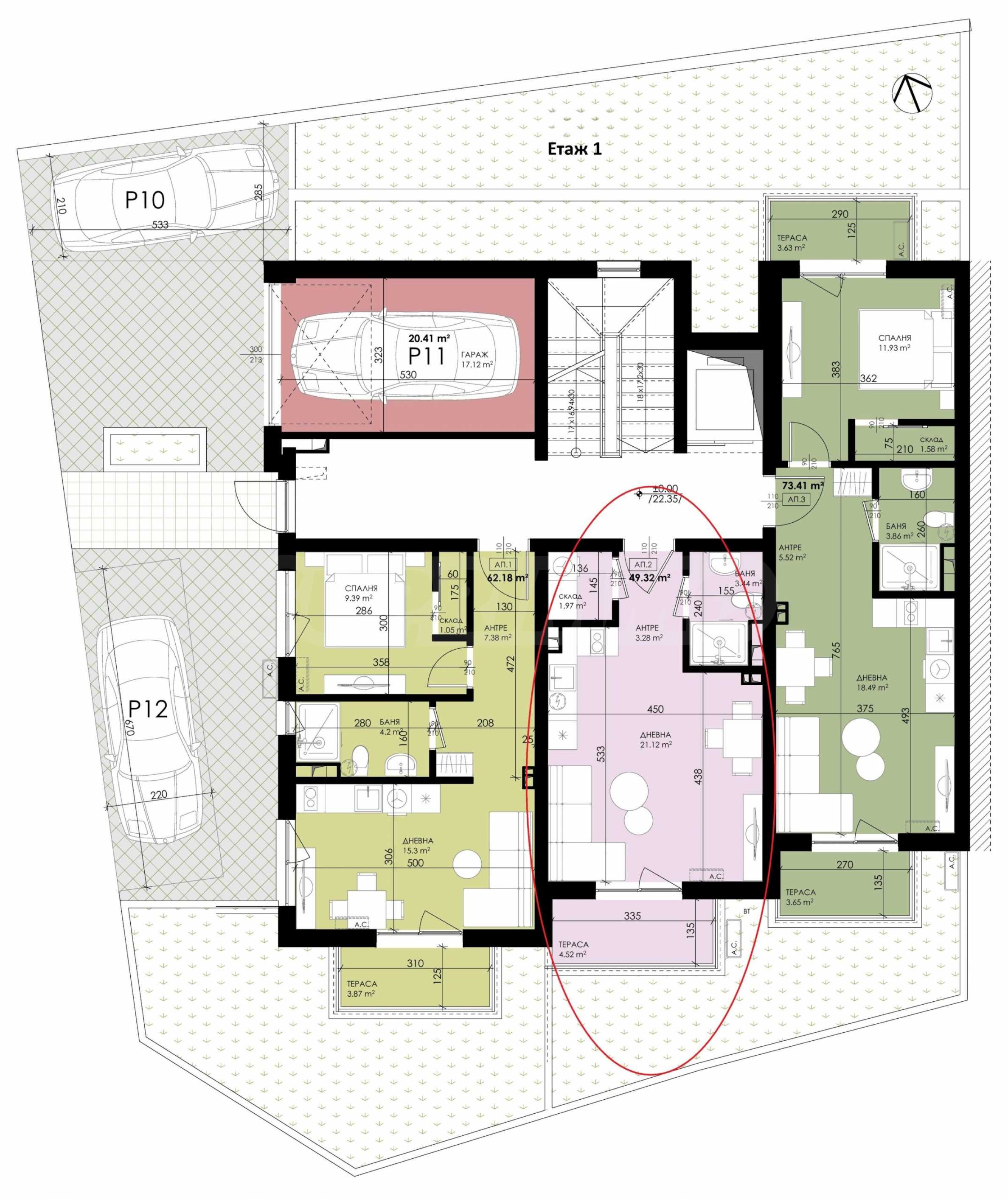 Имотът е с обща площ от 58,70 кв.м, разположен на първи етаж, със собствен двор с площ от 9,36 кв.м и изложение юг. Разпределението включва антре, склад, дневна с кухня, баня с тоалет и веранда.
