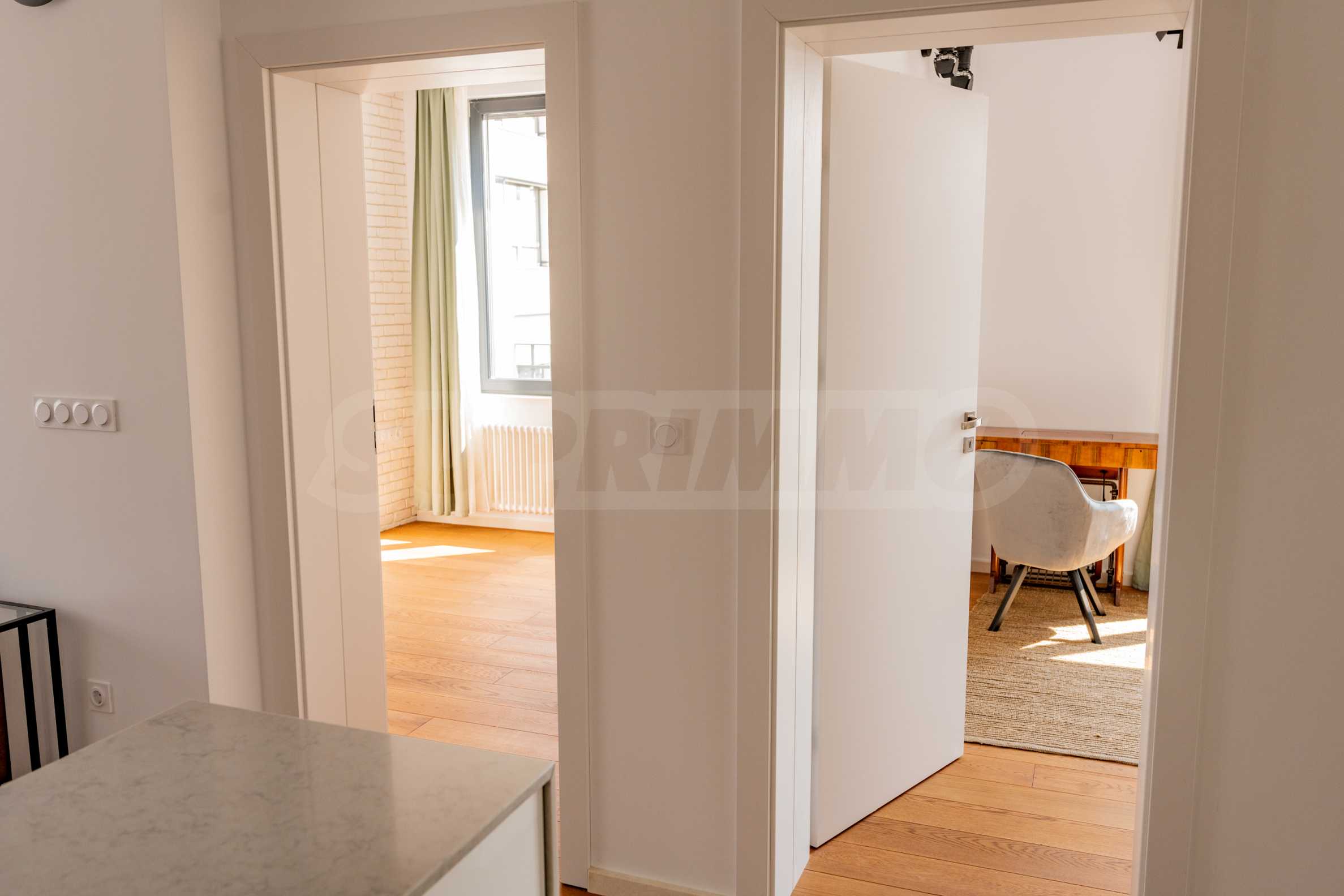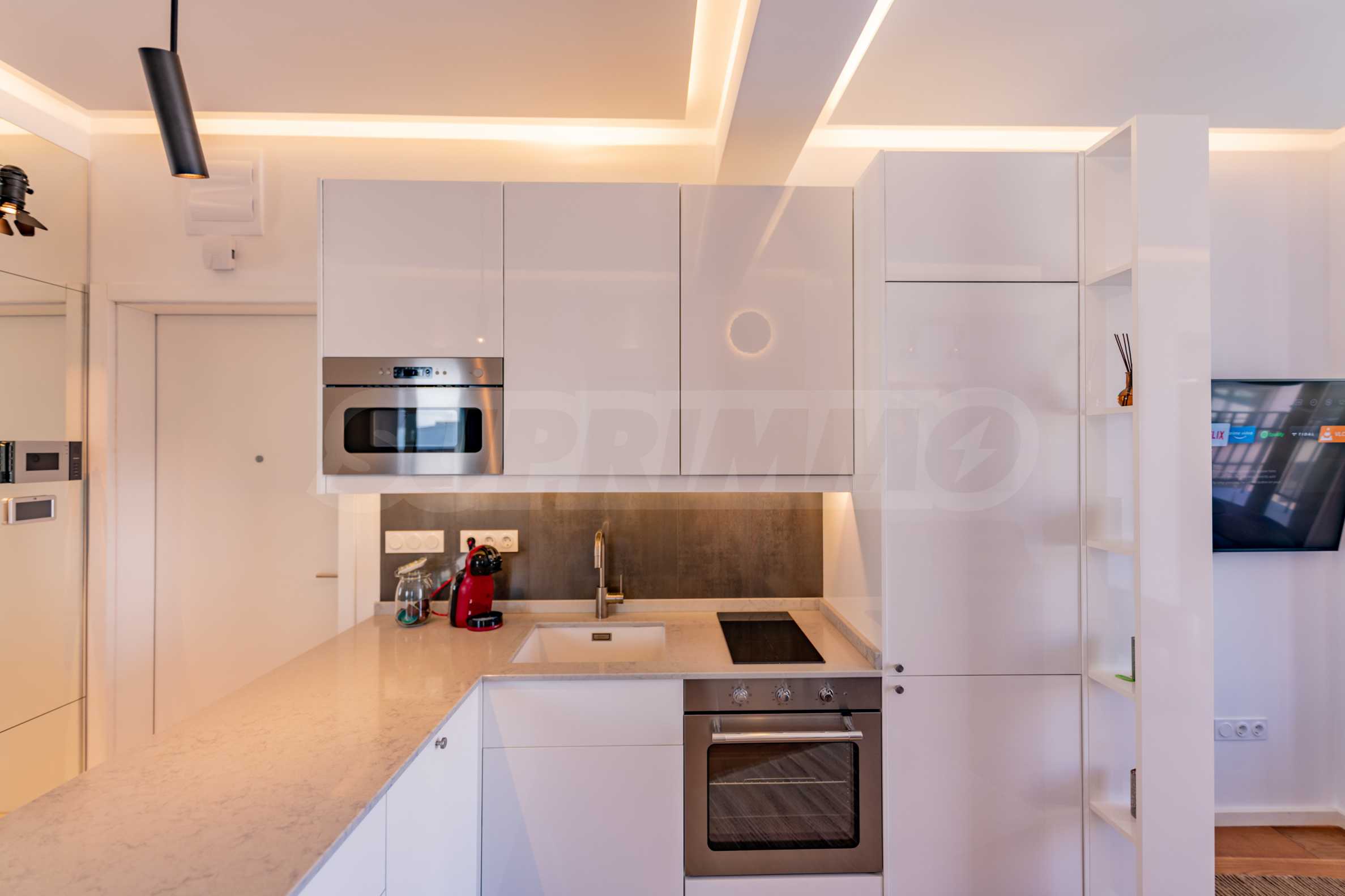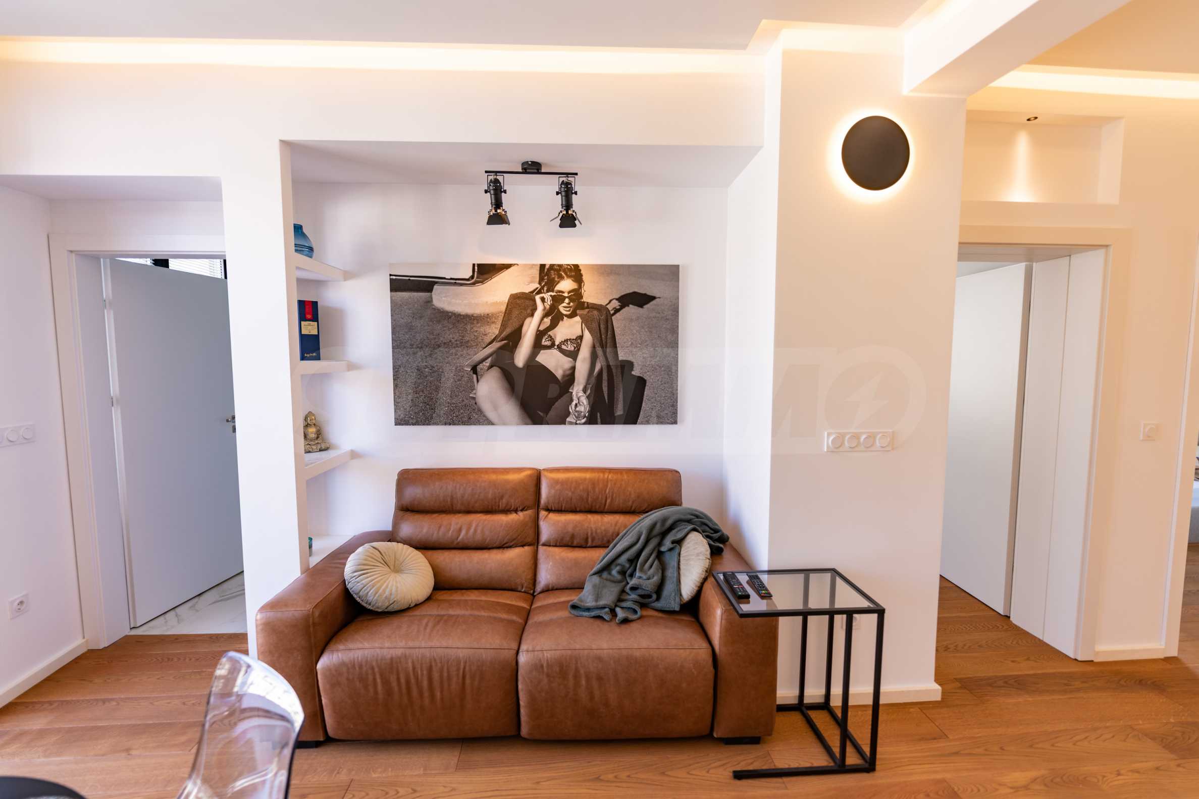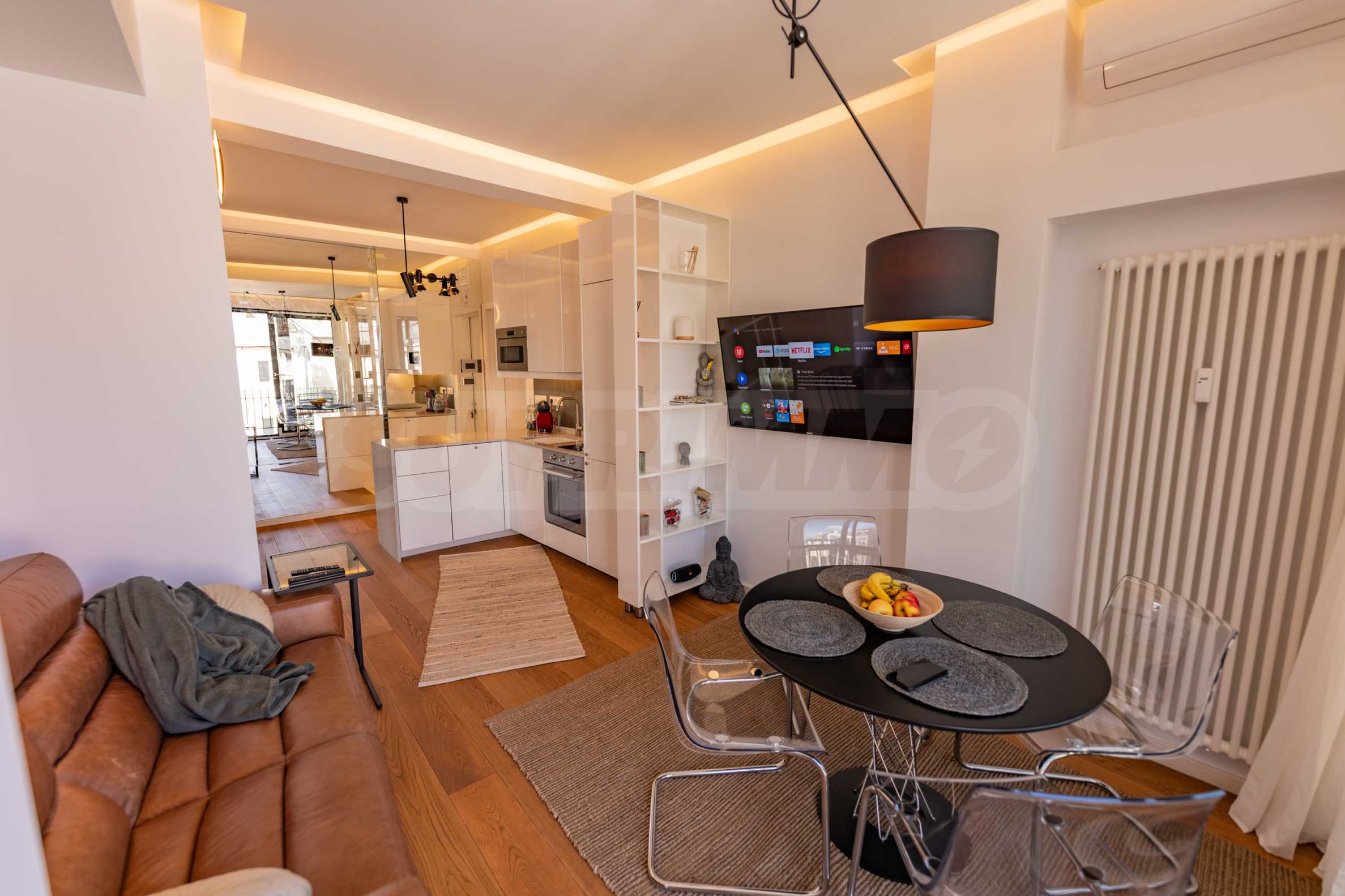 Имотът е изцяло реновиран и предлага интериор по дизайнерски проект, с елегантни мебели, внимание към детайлите и уютна атмосфера.