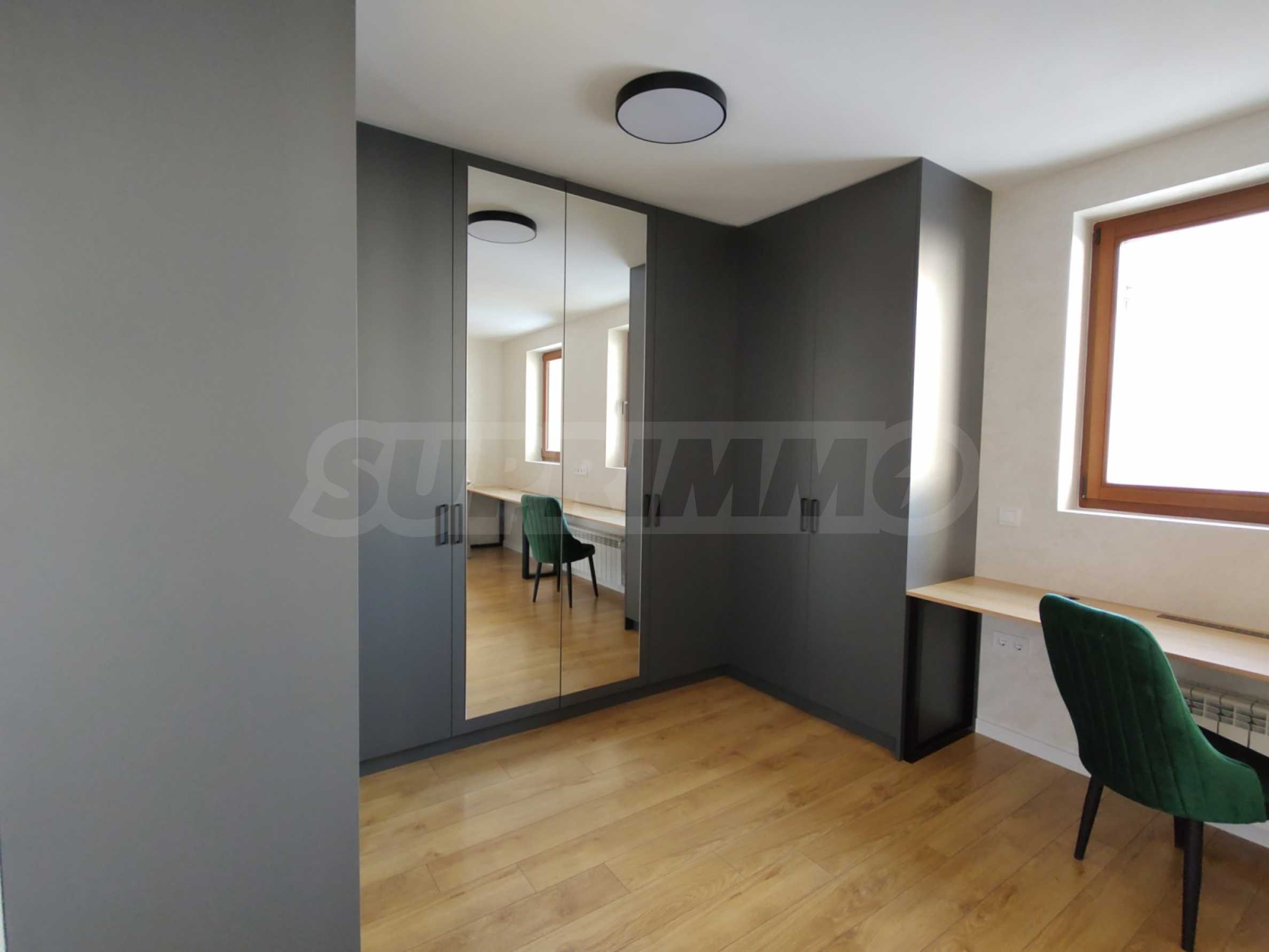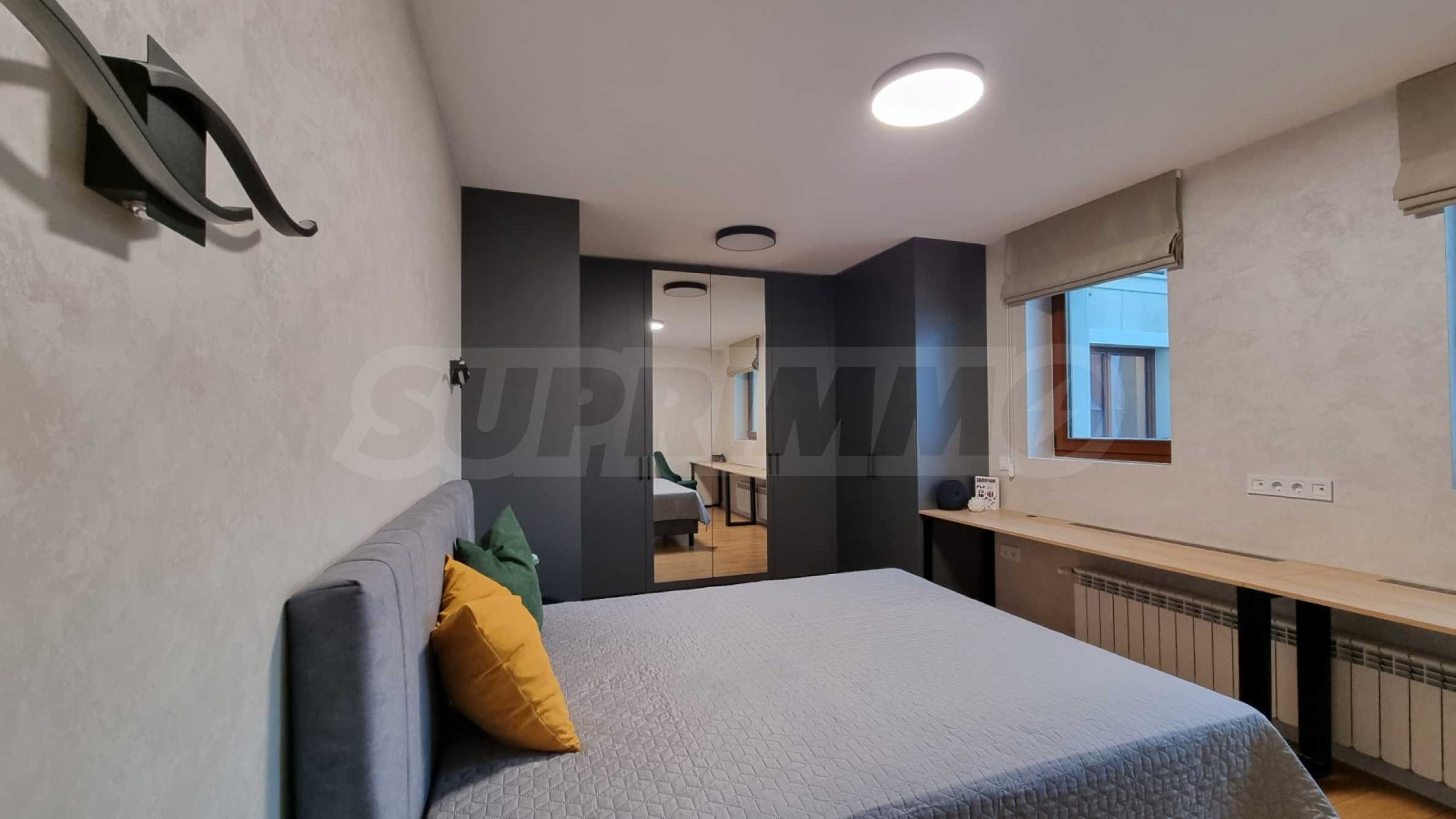 Спалнята е просторна, с голям гардероб и две работни места, които я правят идеално решение за работа от вкъщи или учене. Банята разполага с прозорец, осигуряващ естествена светлина и вентилация.