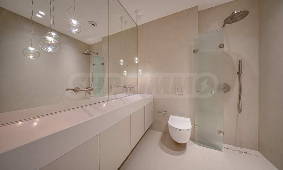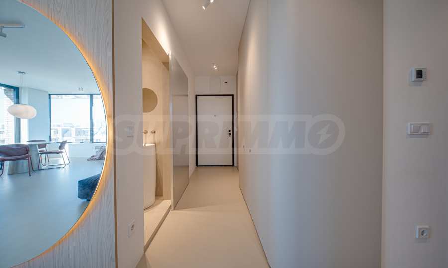 Жилището се предлага абсолютно завършено, с изградена инсталация за подово отопление и индивидуално газово котле. Кухнята е оборудвана с висок клас електроуреди NEFF, а подовите настилки в стаите, както и баните са изпълнени с елегантен микроцимент, подчертаващ модерната визия на интериора.
