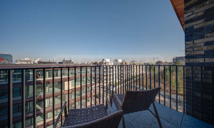 Едно от основните предимства на апартамента са големите френски прозорци, които изпълват помещенията с естествена светлина и създават усещане за простор и въздух. Те осигуряват плавна връзка между интериора и външното пространство, като разкриват красиви гледки към града и Витоша и допринасят за усещането за живот с повече свобода и комфорт.