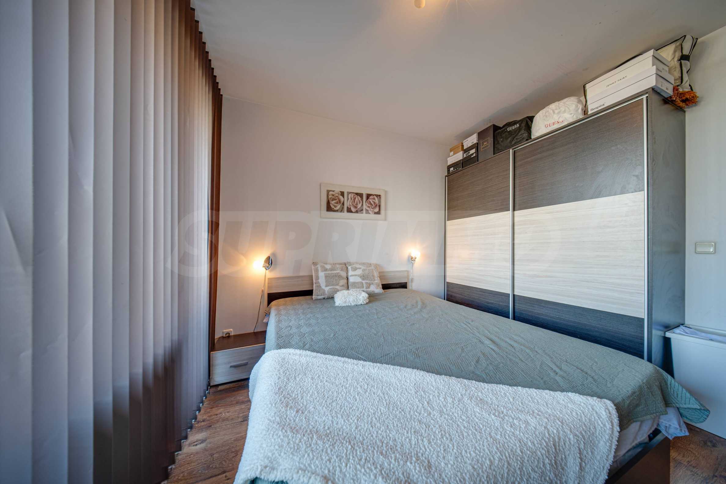 Жилището е напълно обзаведено и оборудвано, готово е за нанасяне. Отоплението е посредством монтирани климатици Daikin и газов котел.