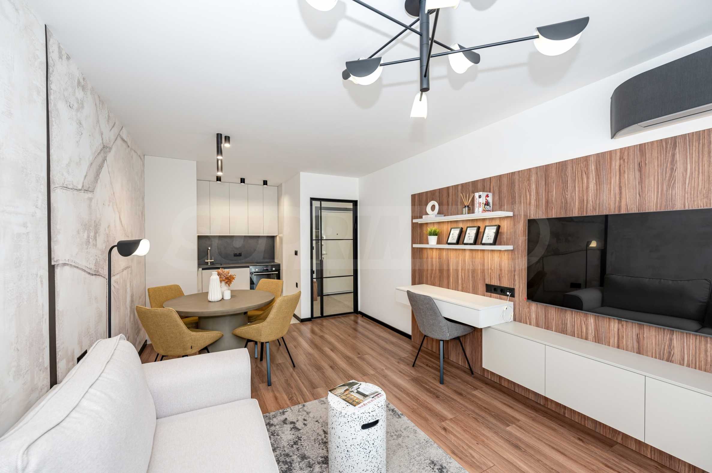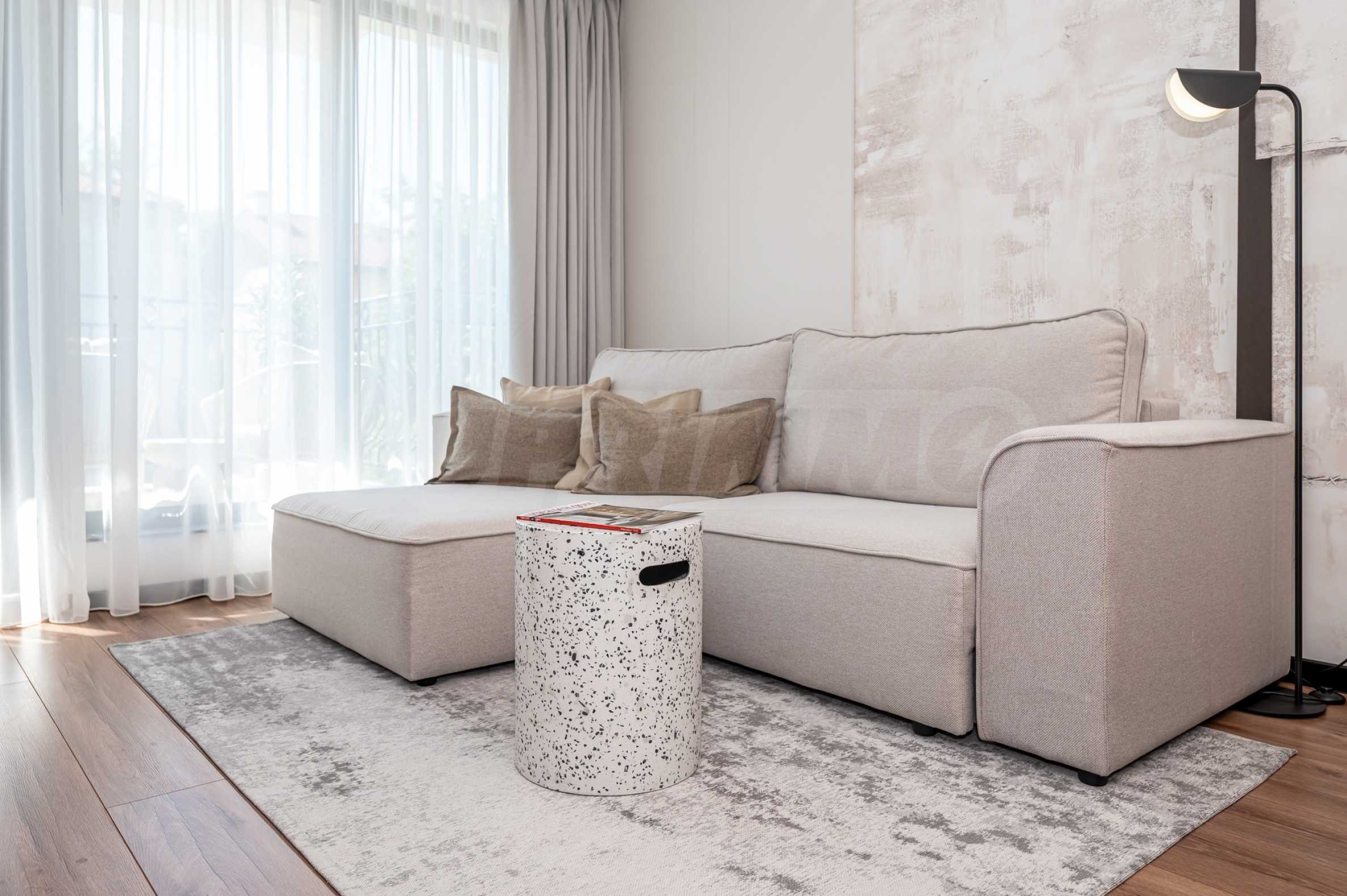 Жилището е напълно обзаведено и оборудвано с нови, висок клас мебели и електроуреди. Отоплението и охлаждането са посредством климатици.