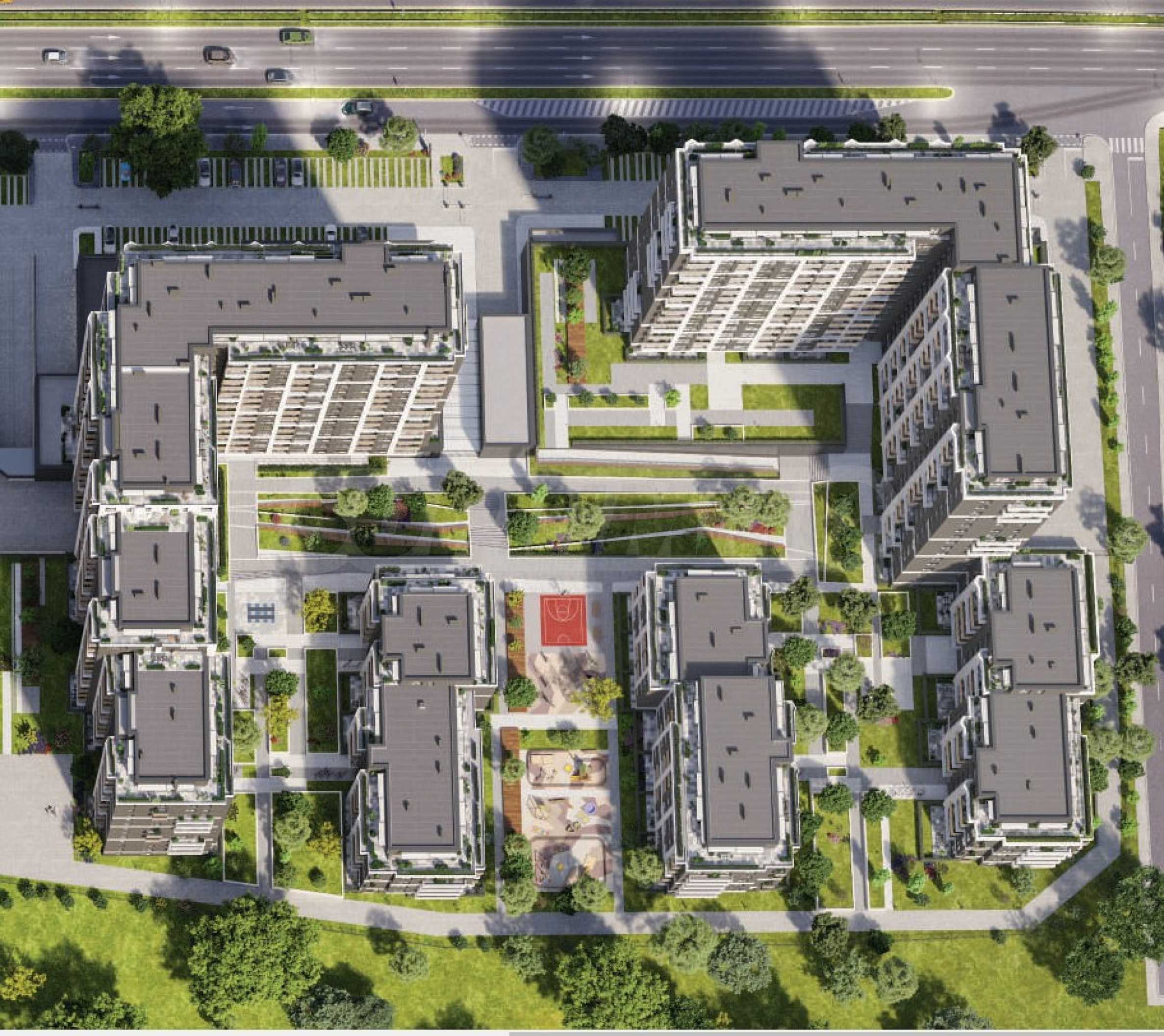 Имотът е част от съвременен затворен комплекс с контролиран достъп, денонощна охрана и професионално поддържани общи части. На разположение са озеленени паркови пространства, пешеходни алеи, зони за отдих, детски площадки, спортно игрище, детски център, както и търговски обекти, магазини, аптеки и заведения.
