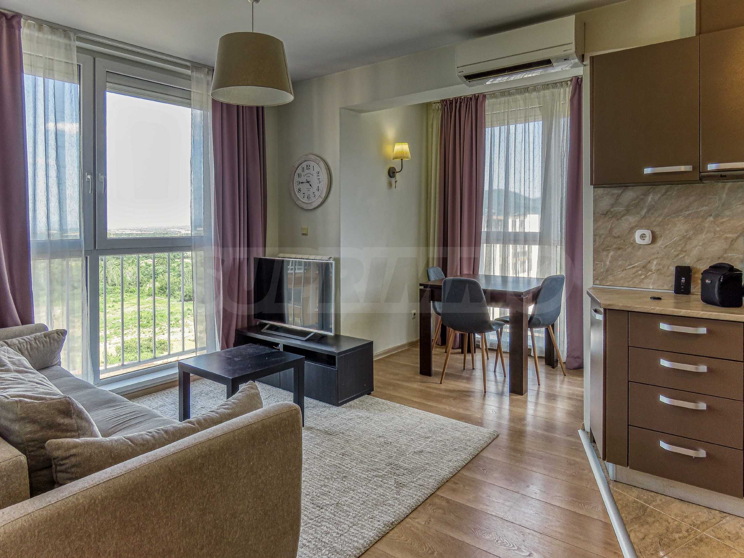 Апартаментът е с функционално и добре обмислено разпределение, което предлага комфорт и възможност за гъвкаво използване на пространствата: