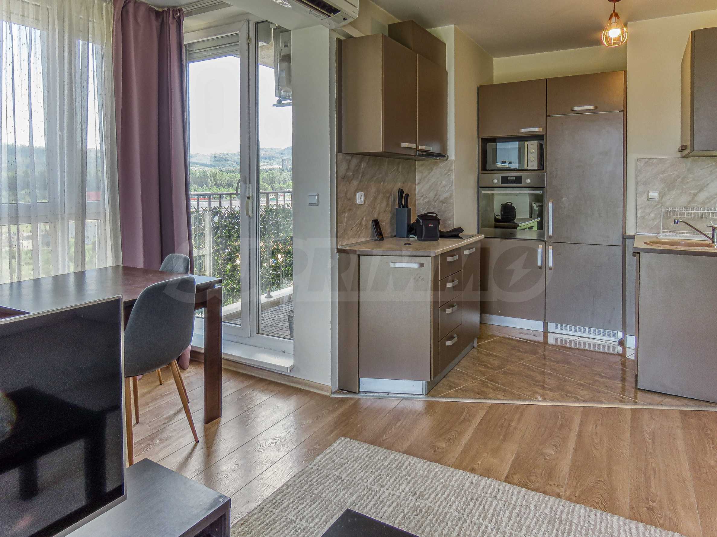 Метростанция „Бизнес парк“ е на около 10 минути пешеходно разстояние или само две спирки с автобус, което прави имота отличен избор както за лично ползване, така и за инвестиция с цел отдаване под наем. В близост са разположени денонощни магазини, аптеки, куриерски услуги, салони за красота, заведения и разнообразни търговски обекти, осигуряващи удобство в ежедневието.