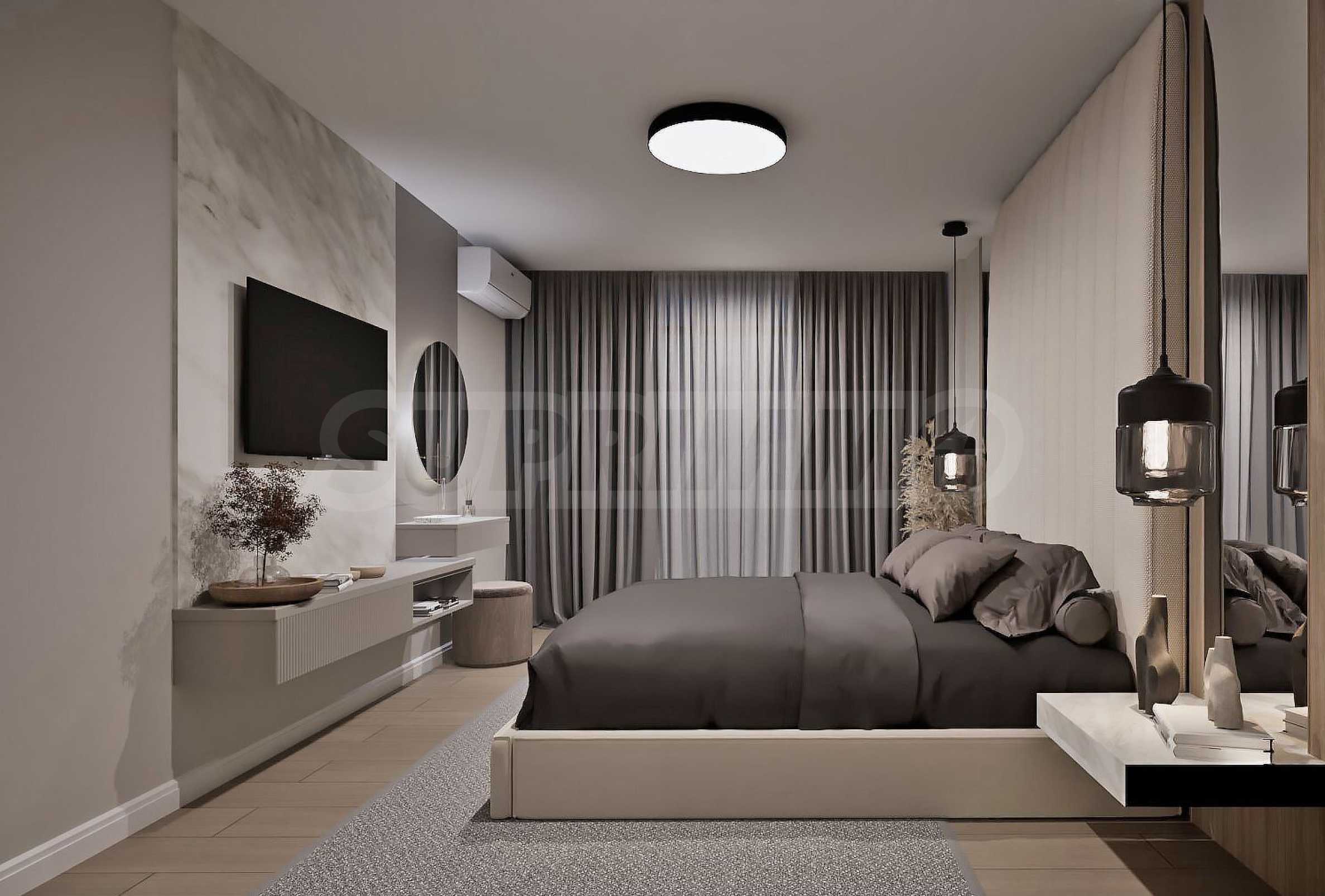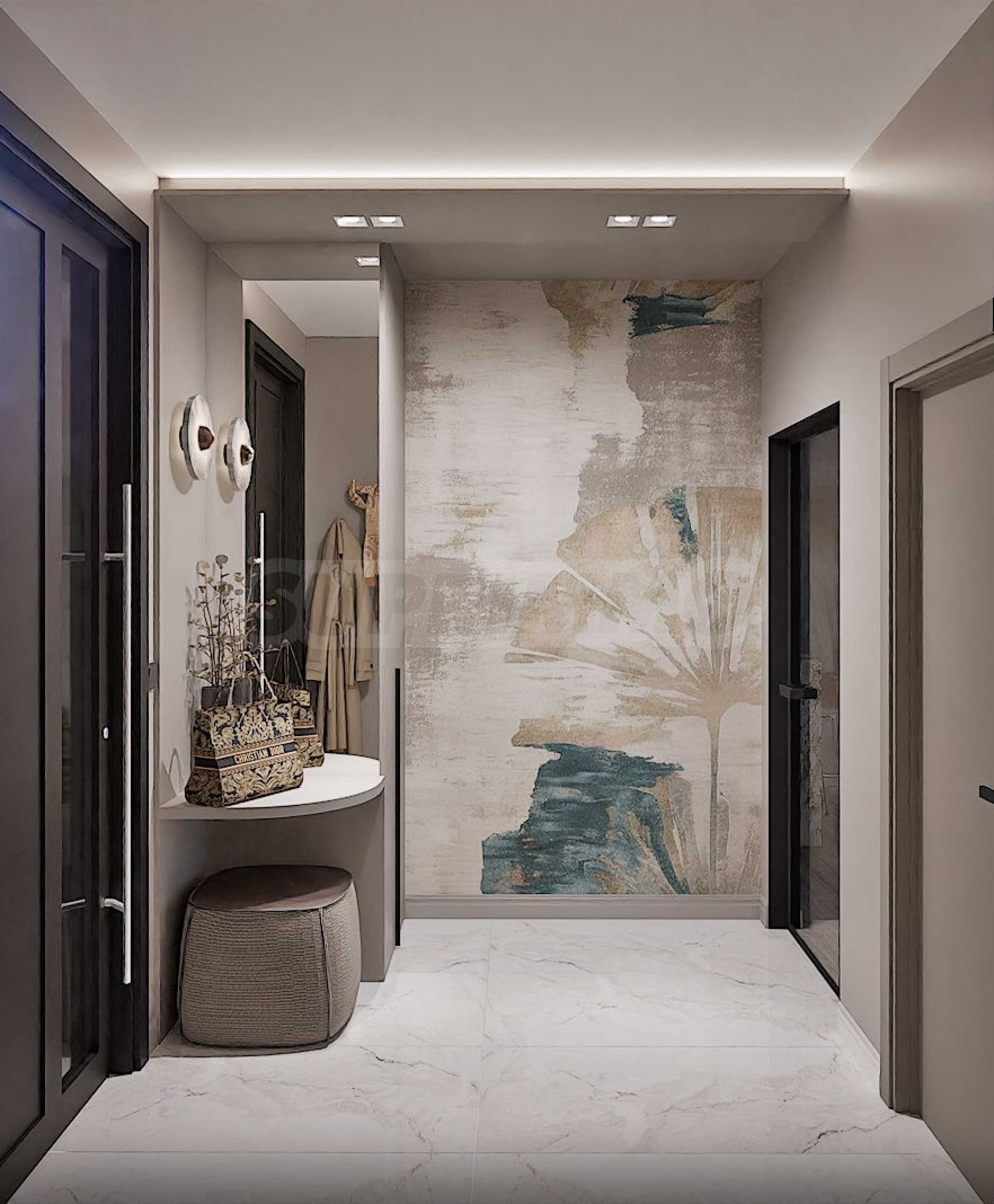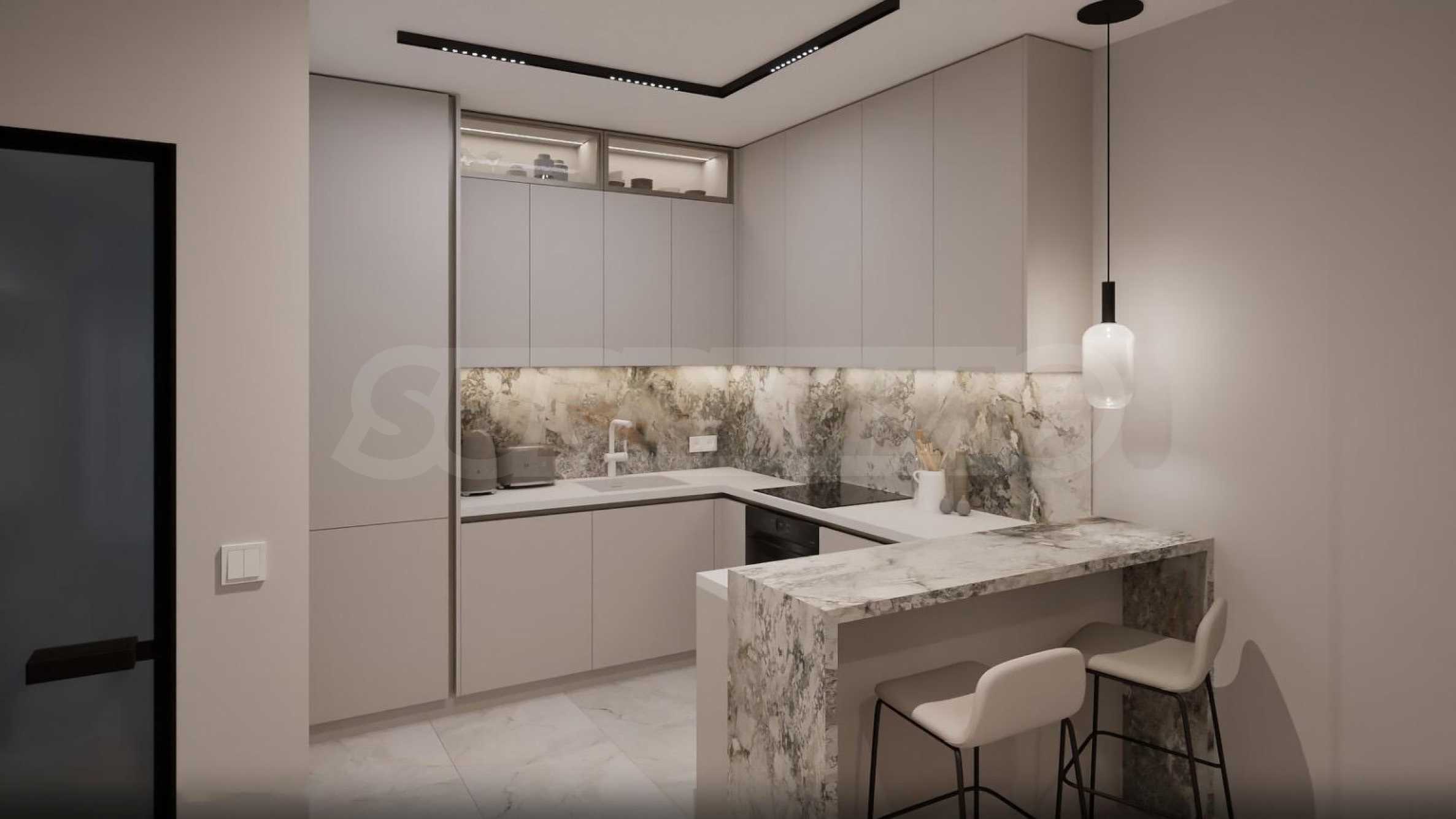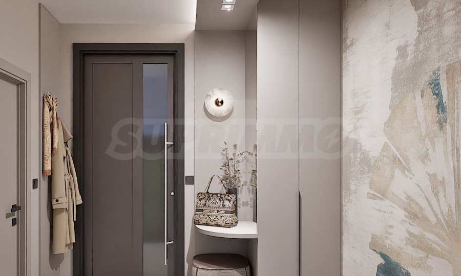 Жилището се издава в степен на завършеност "до ключ", напълно обзаведено и оборудванo в съвременен и елегантен стил, с висококачествени материали. Висок клас изолация, 5-камерна дограма Rehau с отлични топло- и шумоизолационни качества. Отоплението и охлаждането са решени посредством подово отопление и климатици.