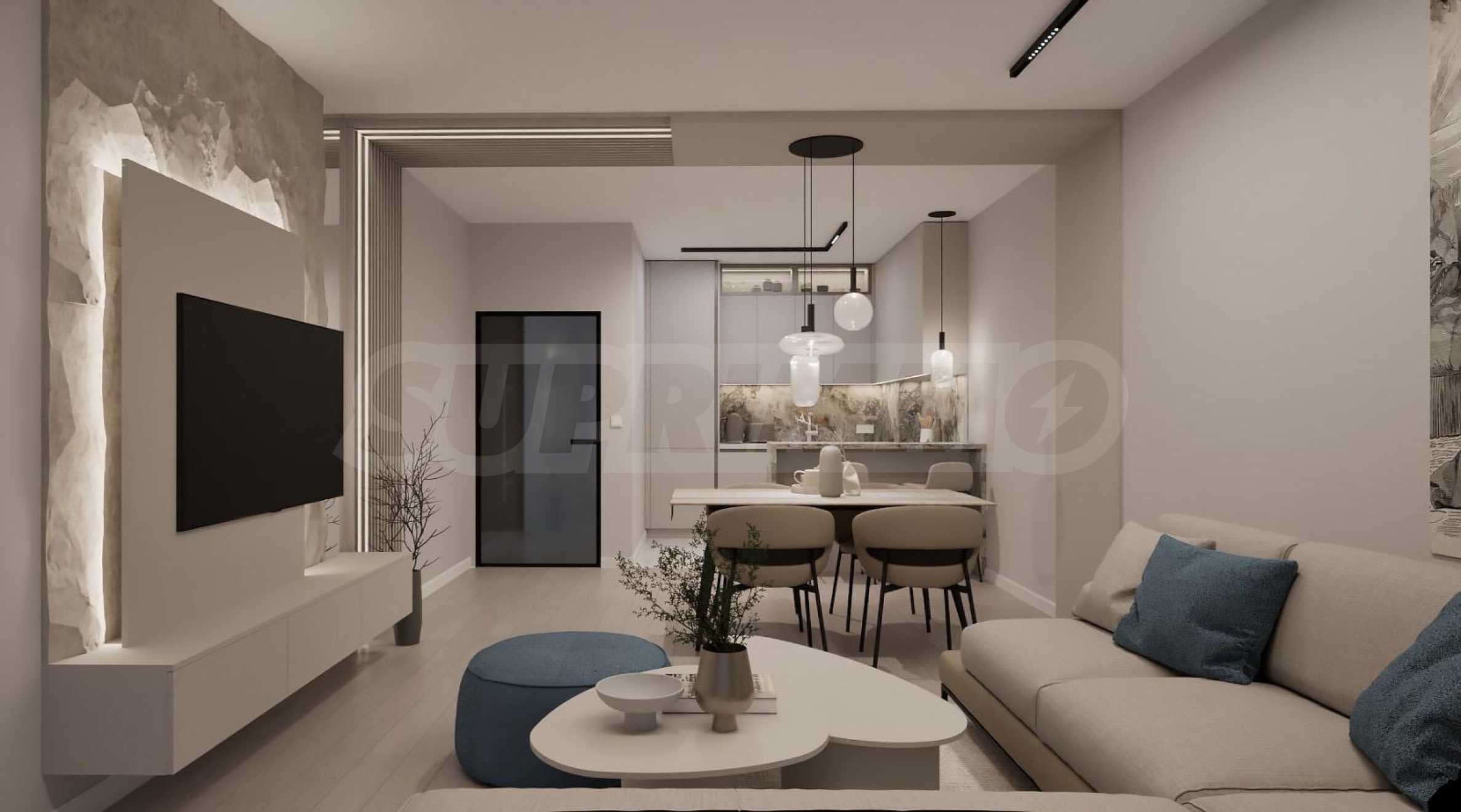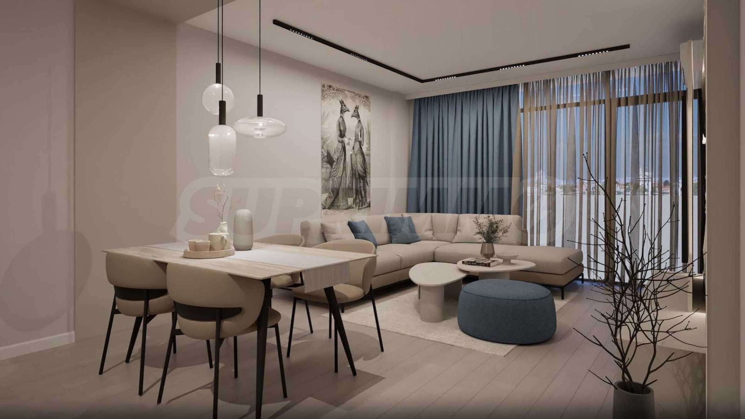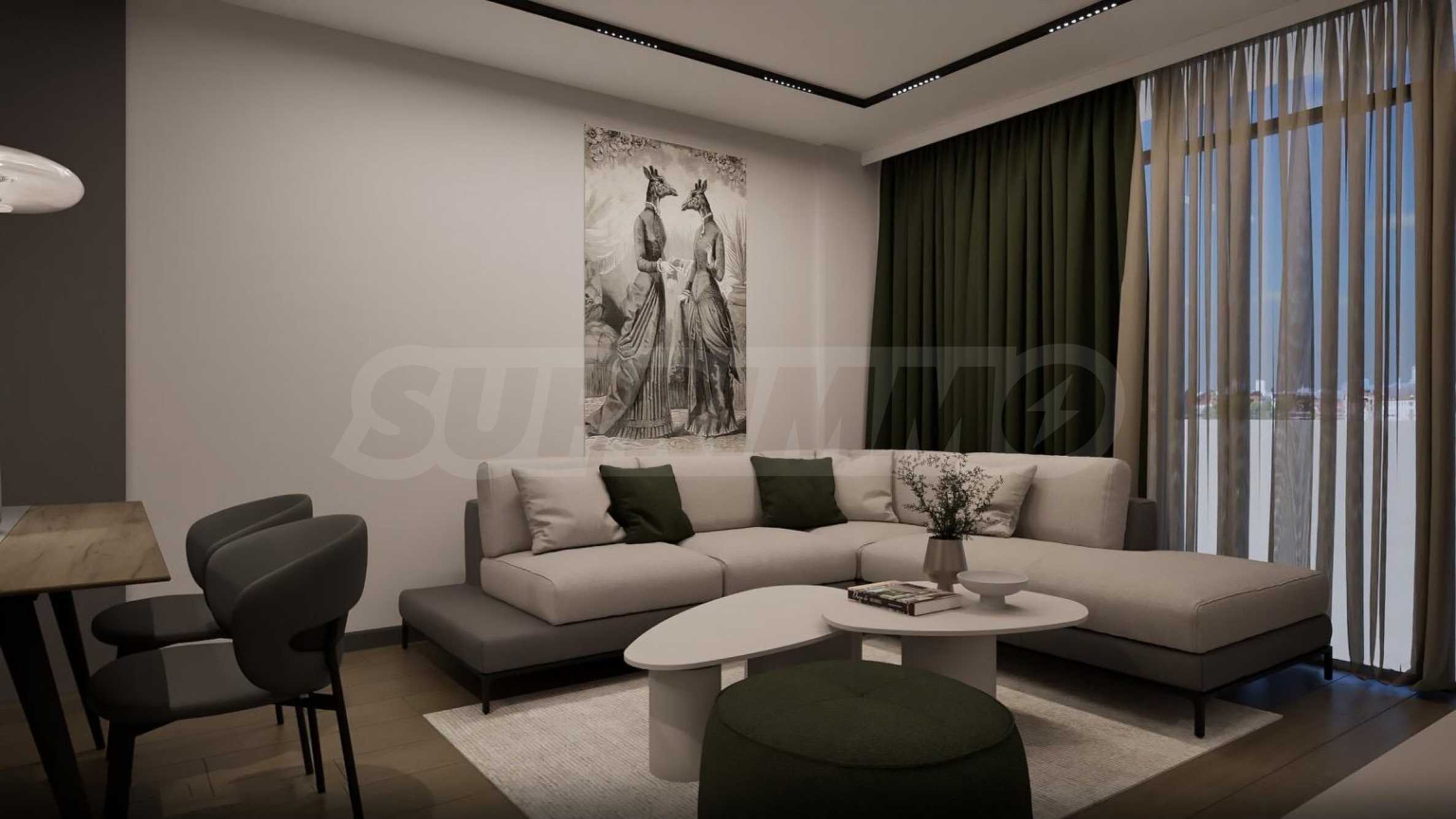 Жилището се издава в степен на завършеност "до ключ", напълно обзаведено и оборудванo в съвременен и елегантен стил, с висококачествени материали. Висок клас изолация, 5-камерна дограма Rehau с отлични топло- и шумоизолационни качества. Отоплението и охлаждането са решени посредством подово отопление и климатици.