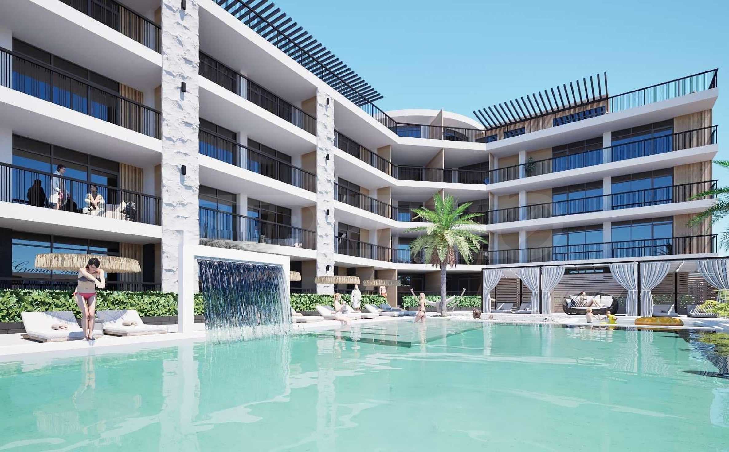 Представяме за продажба двустаен апартамент в елегантен комплекс с модерна визия, разположен на 500 метра от морето, в централната част на Слънчев бряг. В близост до магазини, ресторанти, детска градина, централната пешеходна алея, аптеки, банки и цялата инфраструктура на курорта.