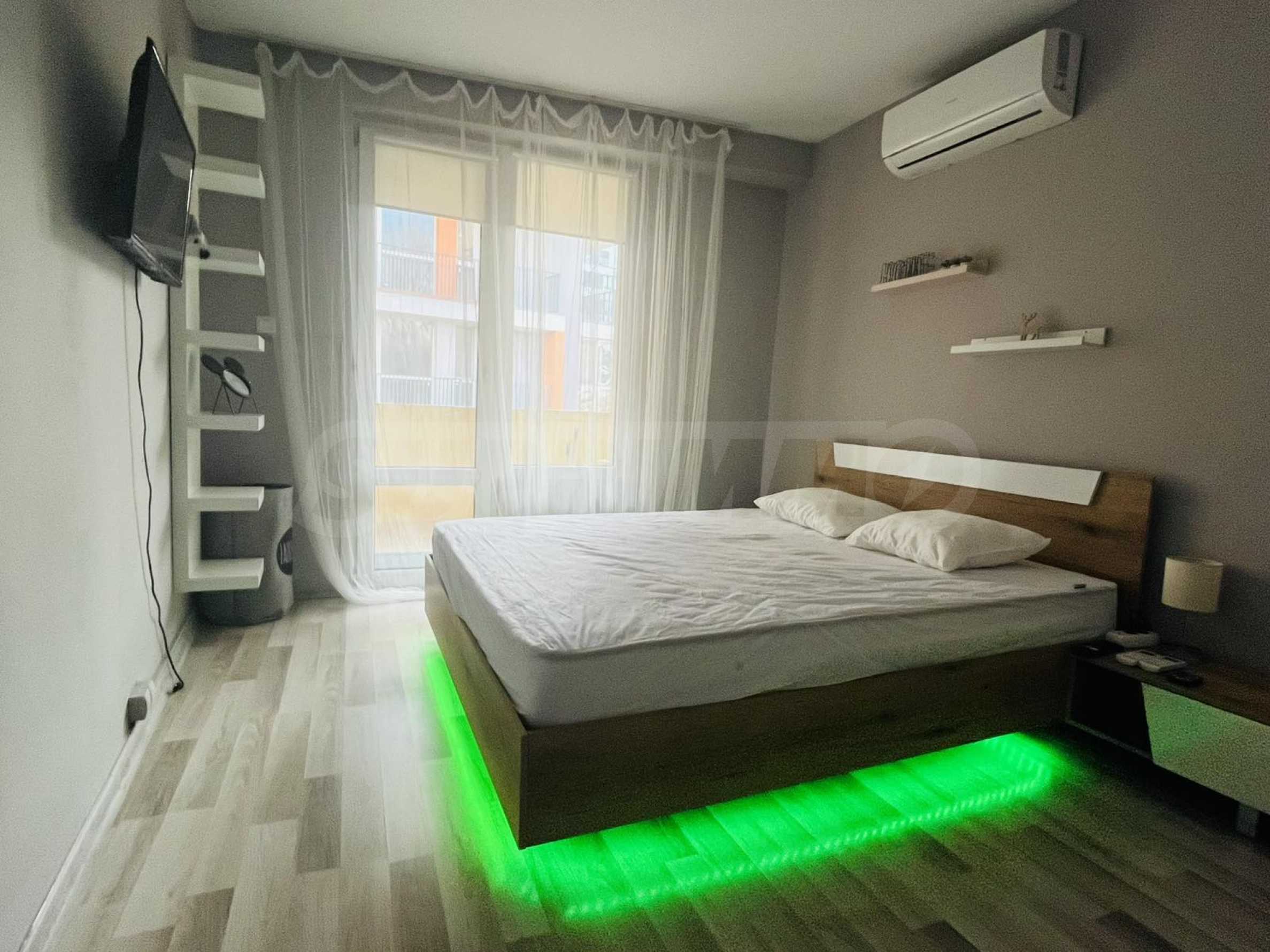 Жилището е комфортно обзаведено и разполага с модерно обзавеждане и оборудване. На разположение на бъдещите наематели са: