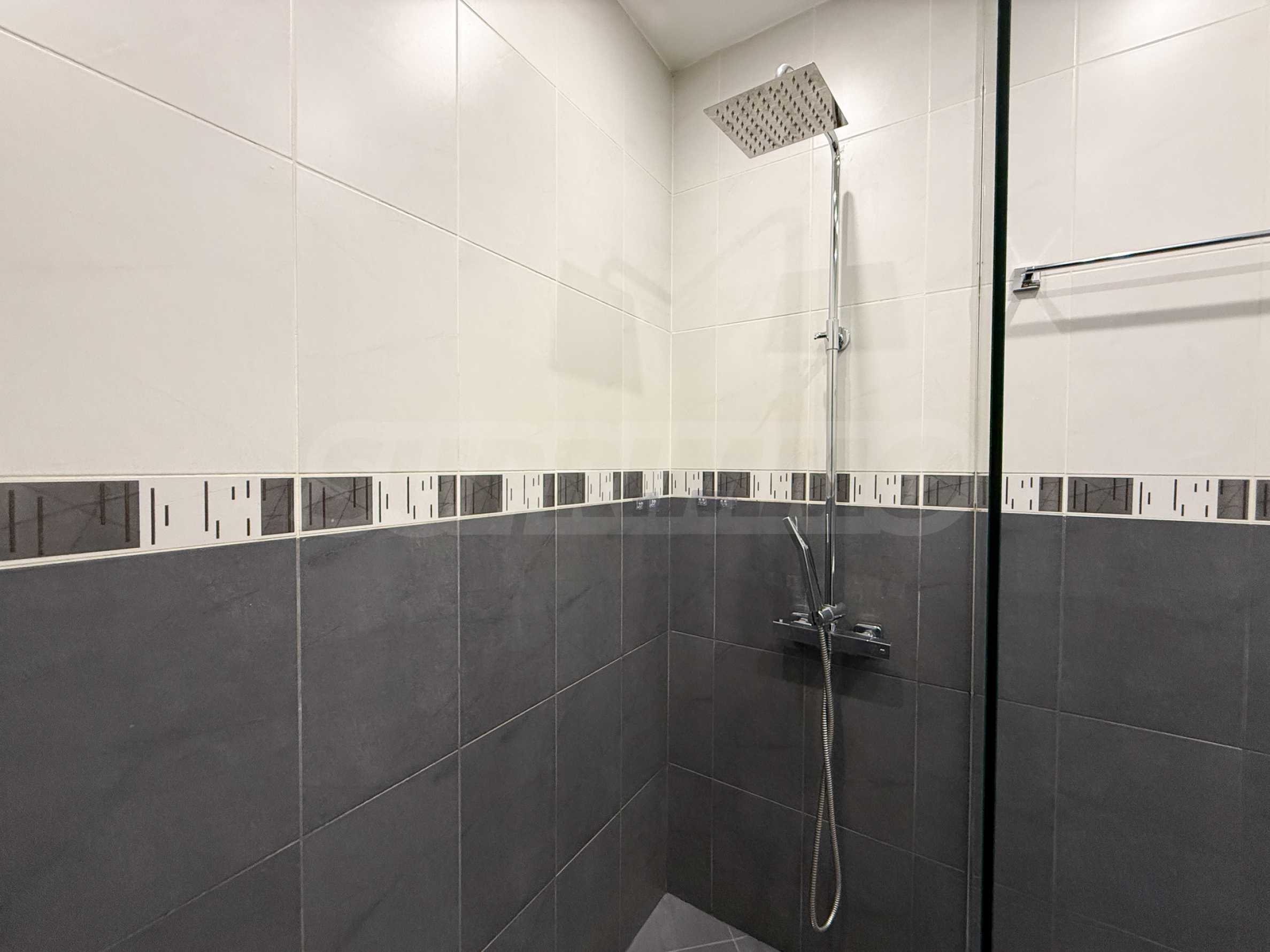 • Банята е оборудвана с висок клас стилна санитария включително тоалетна, мивка и душ кабина.